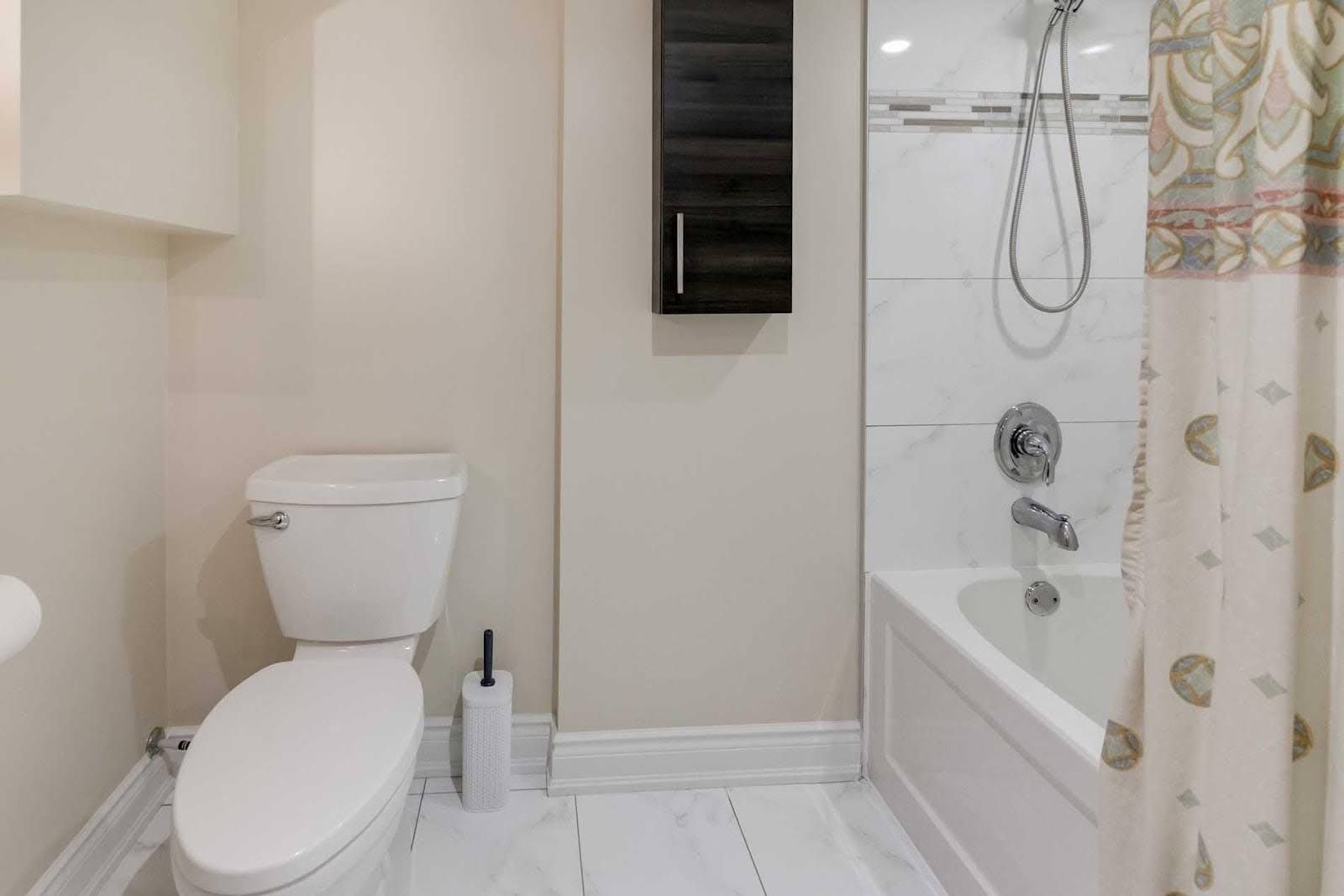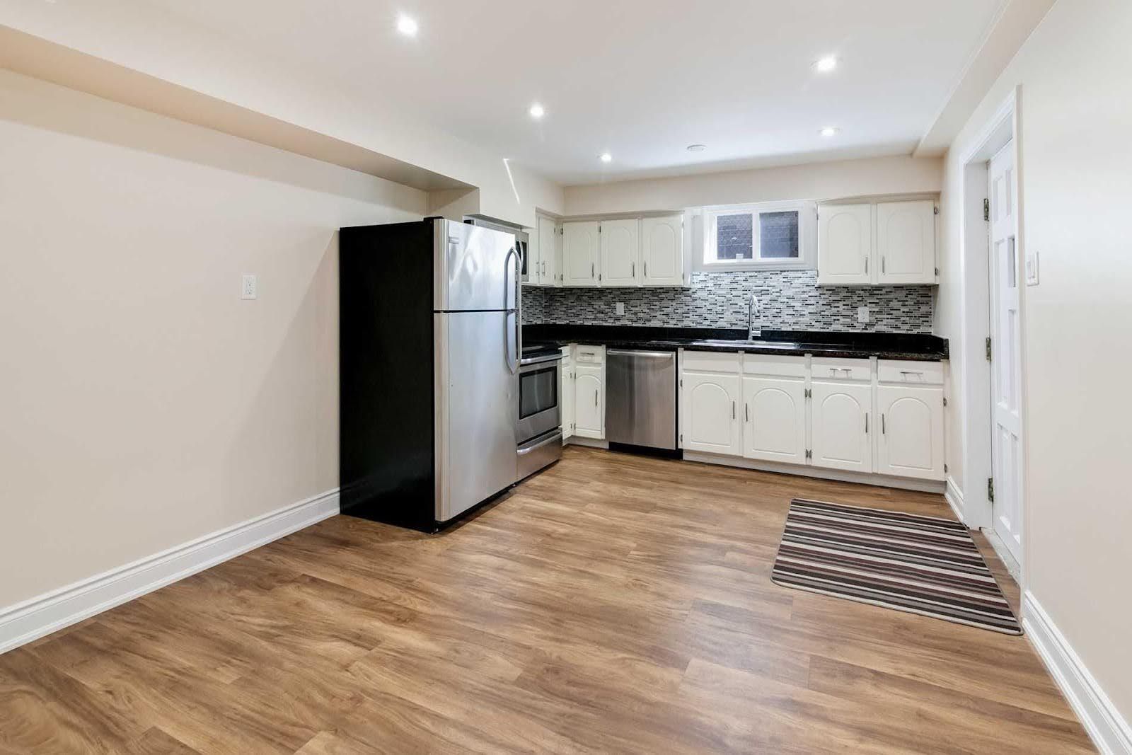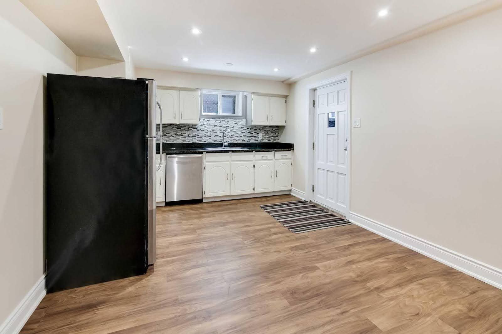 Stunningly renovated lower level apartment featuring a spacious one-bedroom plus a versatile den - perfect as an office or study area. Enjoy a private rear entrance, gleaming hardwood floors, and stylish pot lights throughout. The custom kitchen boasts brand new appliances, while the elegant 4-piece bathroom features a modern renovation. A perfect blend of style and comfort, ideally located just minutes from york university and public transit.
