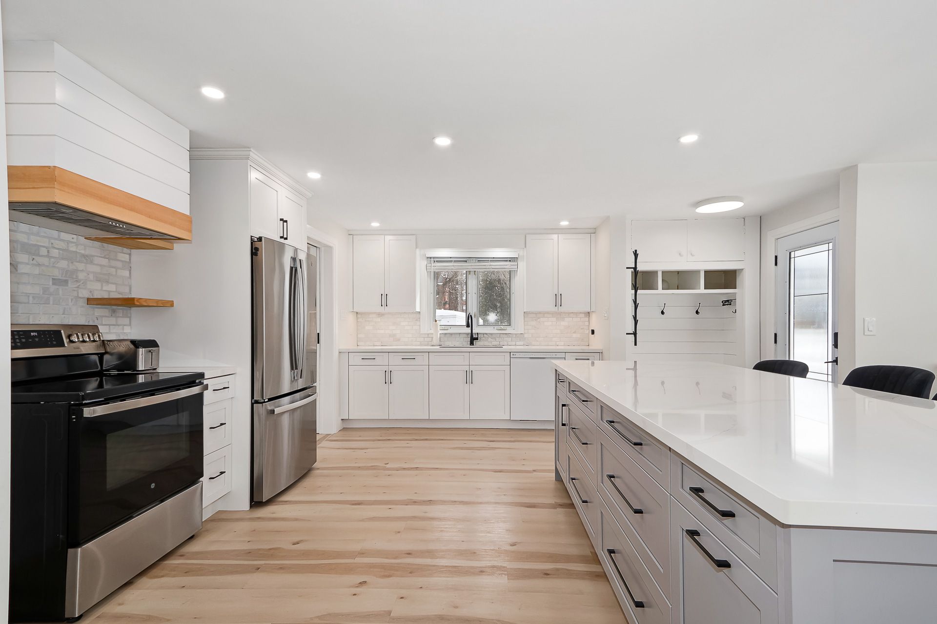 Fully renovated inside, this beautifully updated home showcases modern finishes and thoughtful upgrades throughout. The bright white kitchen is a standout feature, complete with quartz countertops, stainless steel appliances, a stylish tile backsplash, under mount sink, and pot lights. Luxury vinyl flooring flows seamlessly throughout the main level, creating a clean and contemporary feel. Additional upgrades include a functional mudroom area with built-in storage and shiplap detailing, updated bathrooms, laundry on both floors, and abundant storage throughout the home. Step outside to your fully fenced backyard offers exceptional privacy. The property also features a carport and two storage sheds for added convenience. The finished basement includes separate two bedroom in-law suite featuring its own private entrance. This self-contained space offers ideal accommodations for extended family, or as additional living space. Major system updates include, a newer furnace with new ductwork, steel roof, central air conditioning, an owned hot water tank, a brand-new 200-amp electrical panel, and an electric fireplace for added comfort and ambiance. With modern renovations, income potential, and a private backyard, this home offers the perfect blend of style, functionality, and long-term value. This property is located on a desirable street, close to downtown and sunset point! This move-in-ready property is designed to meet your needs today and for years to come.