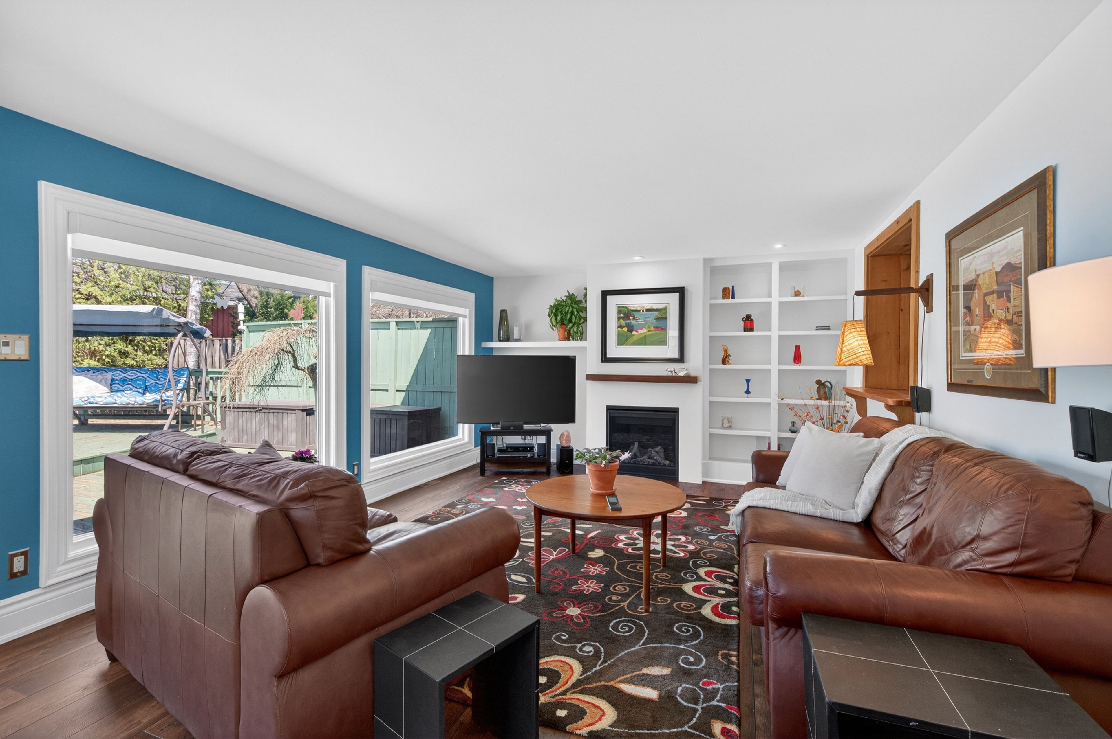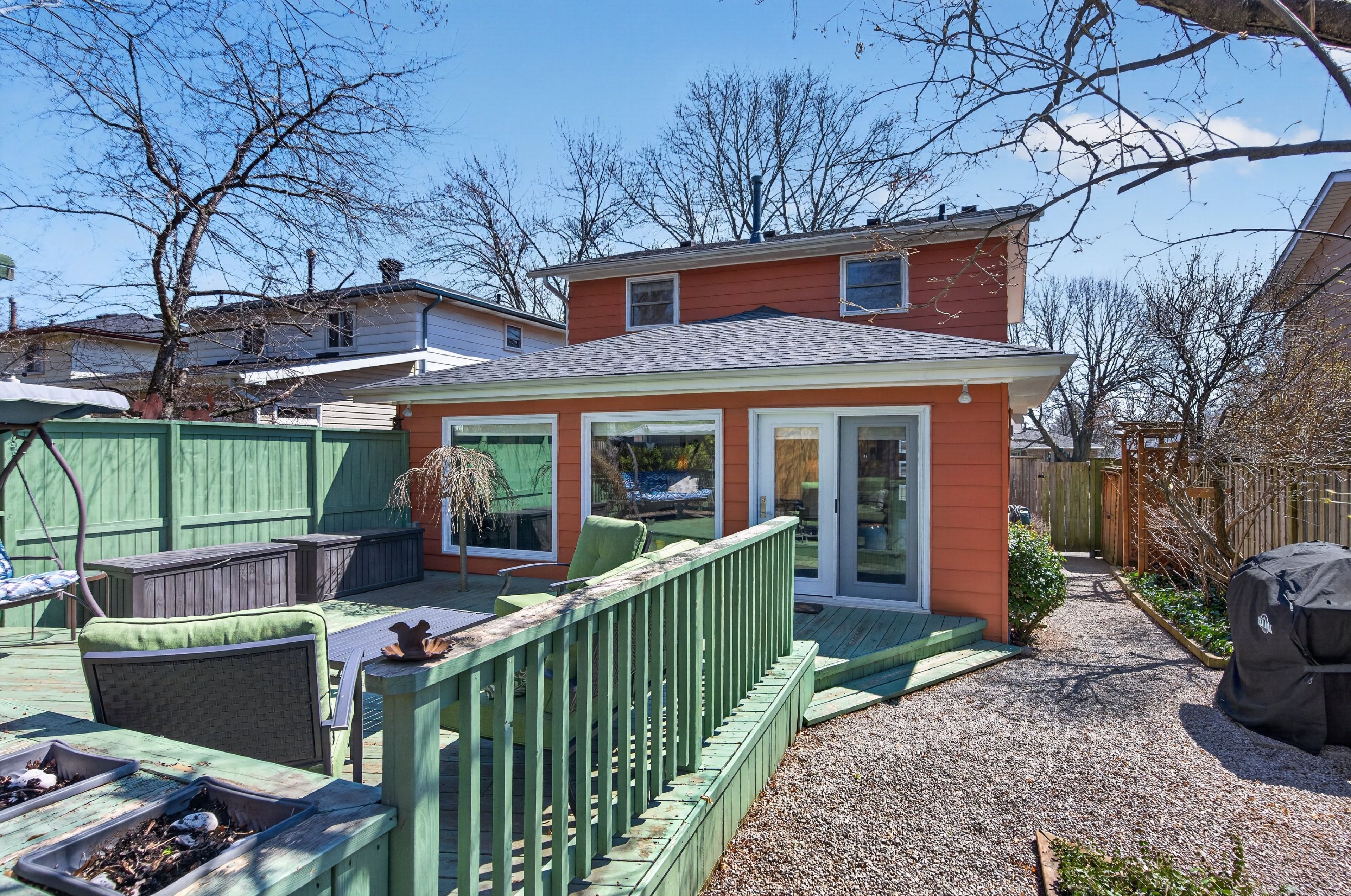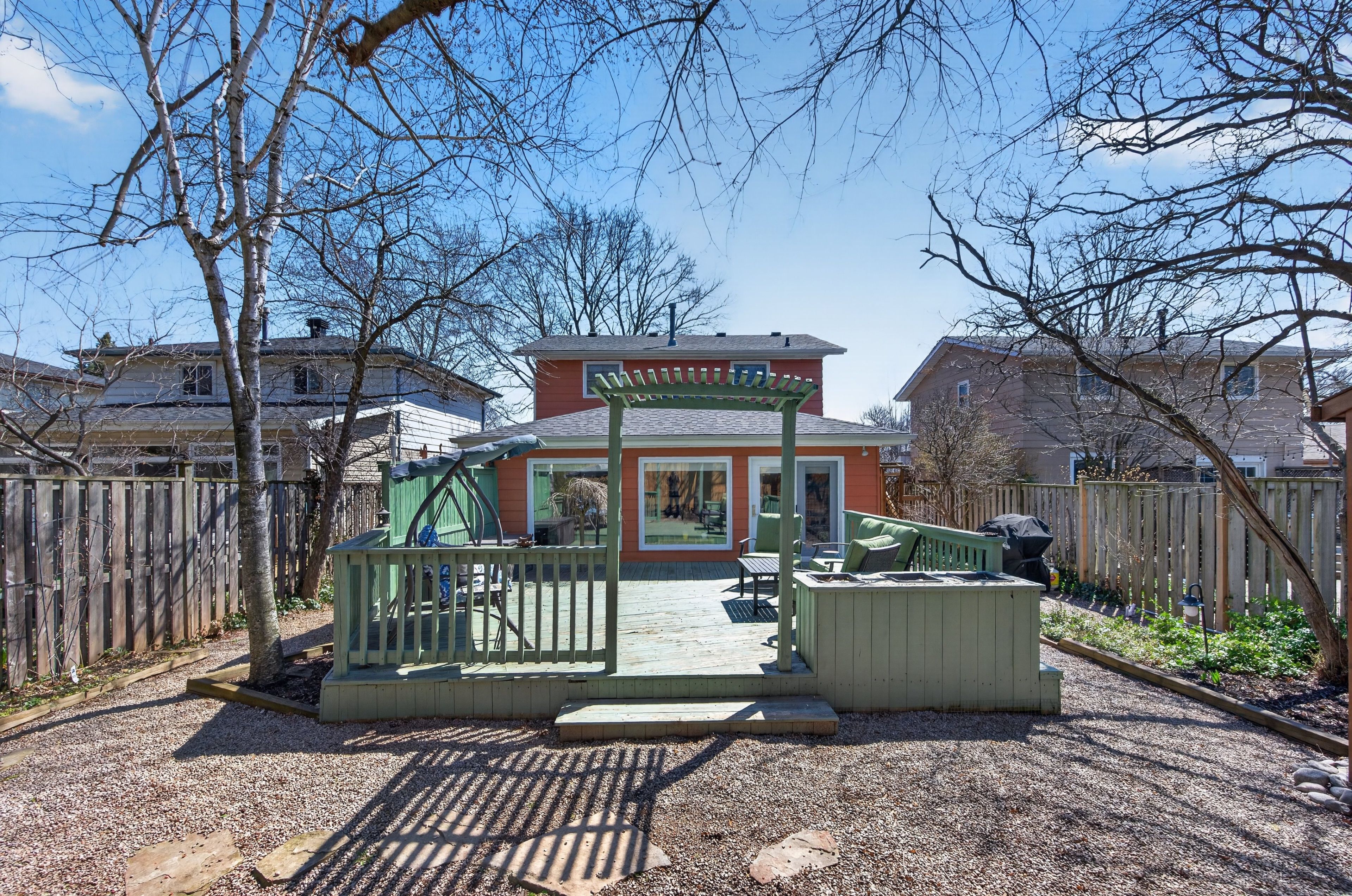 • Private backyard with a spacious deck and two garden sheds.