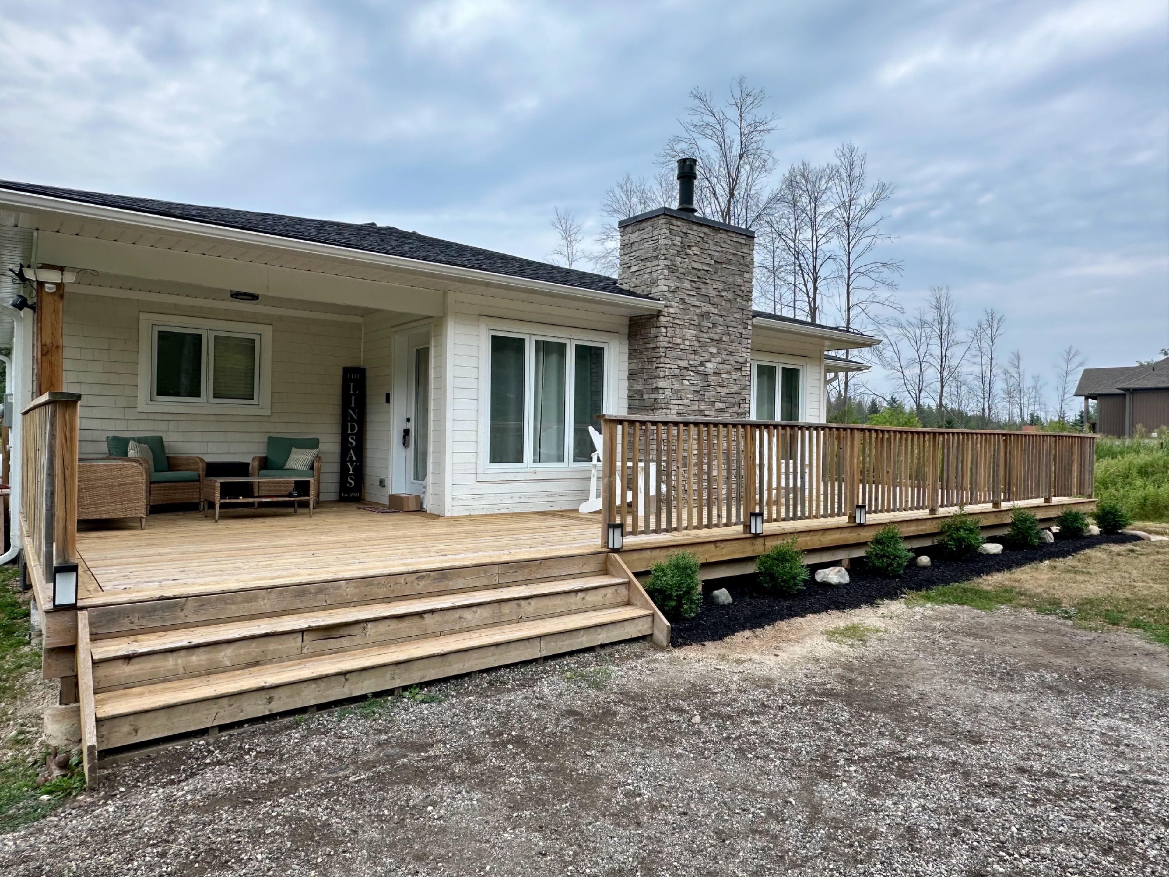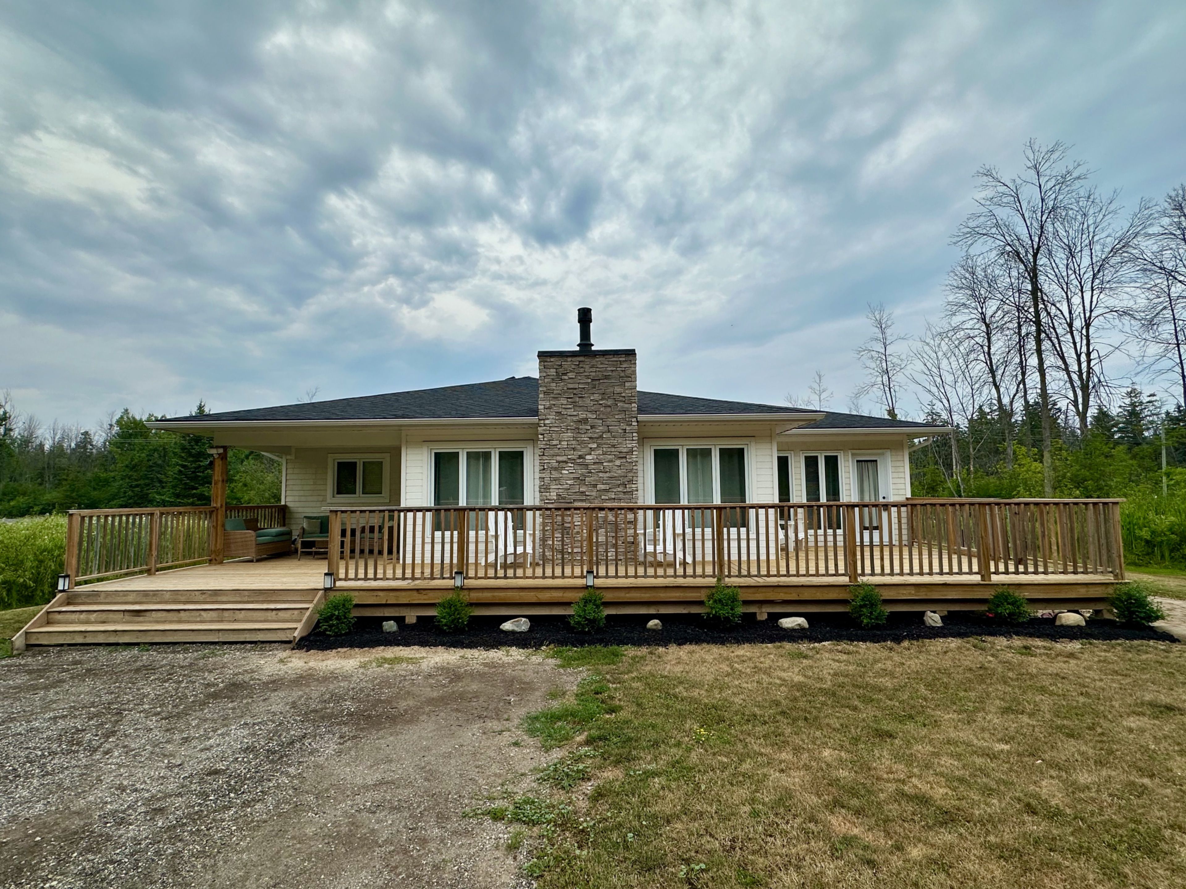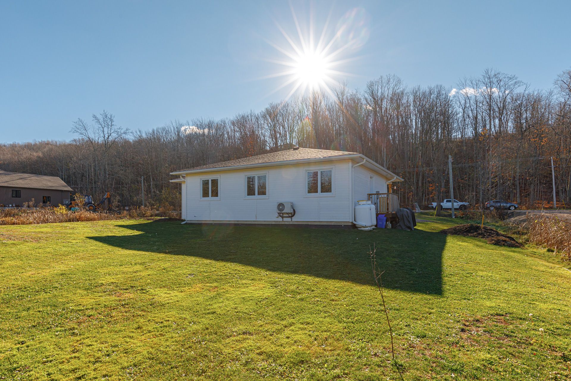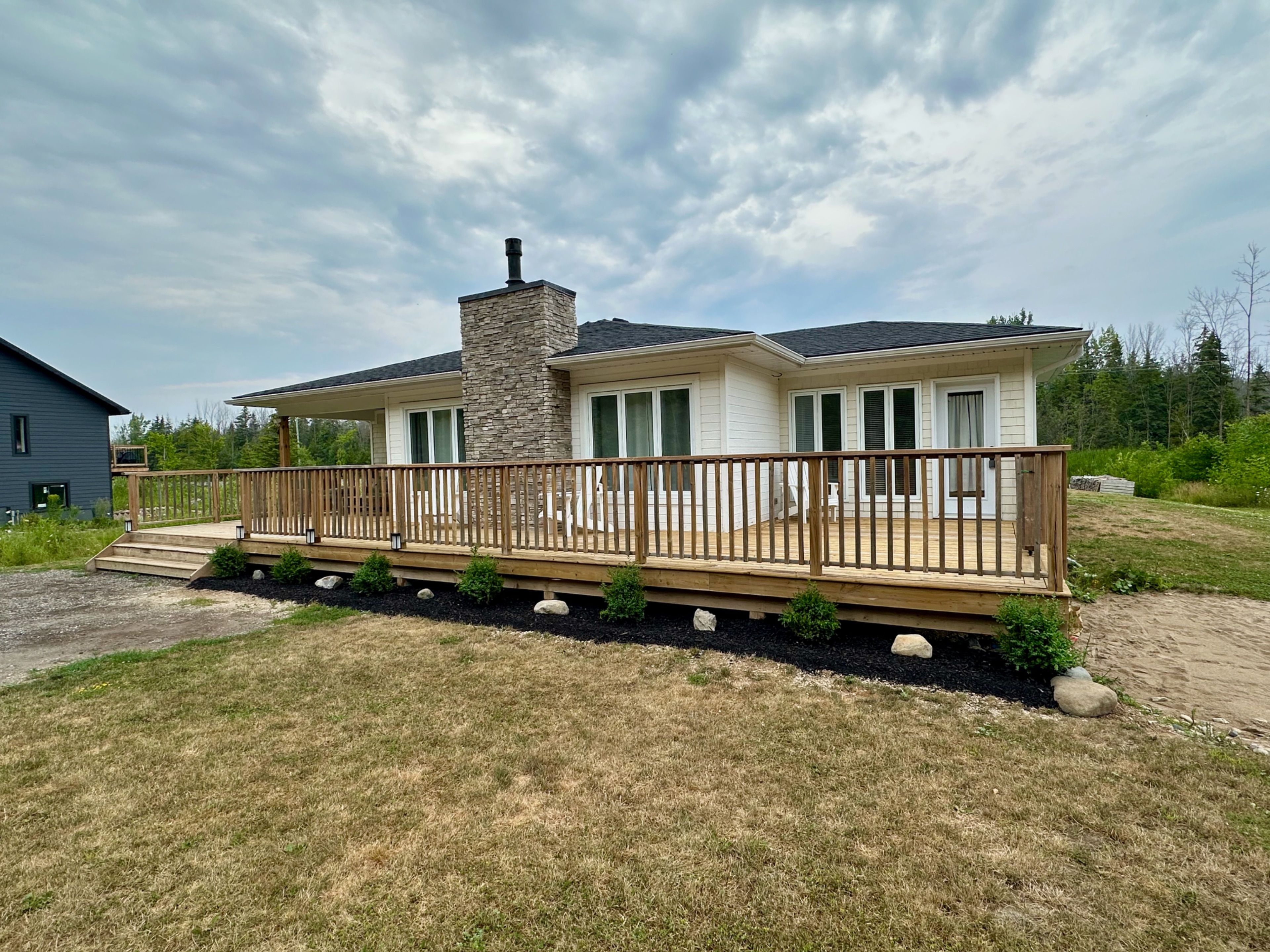 Beautifully crafted bungalow, located just a short drive from lora bay, thornbury, and meaford, offering the perfect blend of modern efficiency and comfortable main-floor living. Ideal for those who appreciate convenience and style, this home features an open-concept design with spacious living areas and plenty of room to personalize. The layout includes 3+1 generously sized bedrooms, some of the bedrooms can be easily be transformed into a home office, den or library. The primary bedroom is filled with natural light, offering direct access to the front deck, where you can relax and enjoy peaceful views of the hardwood forest across the street. This bedroom can also be converted into another livingroom. The kitchen stands out with a stylish backsplash, hardware, cabinetry and stainless steel appliances. The bathroom features high-end fixtures, including a tile shower/tub combination, offering both functionality and style. The open-concept living and dining area is perfect for entertaining, with a cozy propane fireplace that adds warmth and ambiance on cool evenings. A covered front porch with southern exposure provides a charming spot to enjoy the outdoors, no matter the season. Situated on nearly half an acre, this property is waiting for your personal landscaping design, the property provides ample space for outdoor living and there's plenty of parking with room to build a garage if desired. For those who enjoy outdoor recreation, this property is ideally located close to beach access, as well as world-class golf courses and skiing. Whether you're relaxing at home or exploring the surrounding area, this home is the perfect place to enjoy the best of both comfort and adventure. Book your showing today!