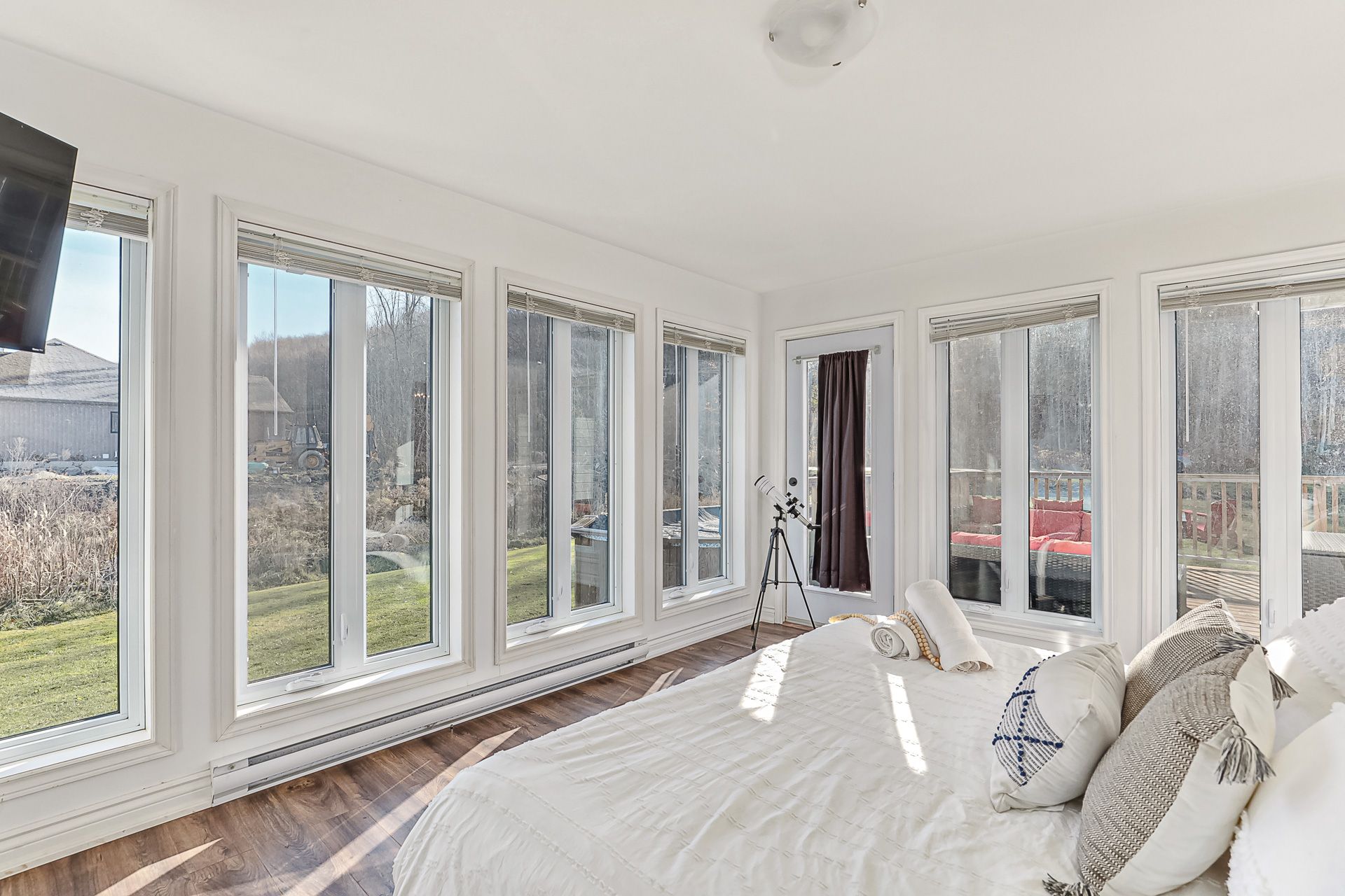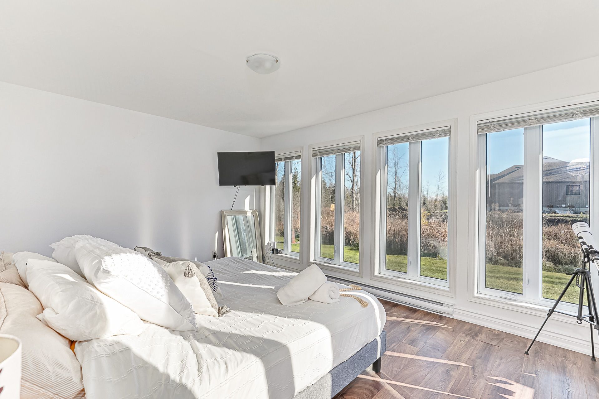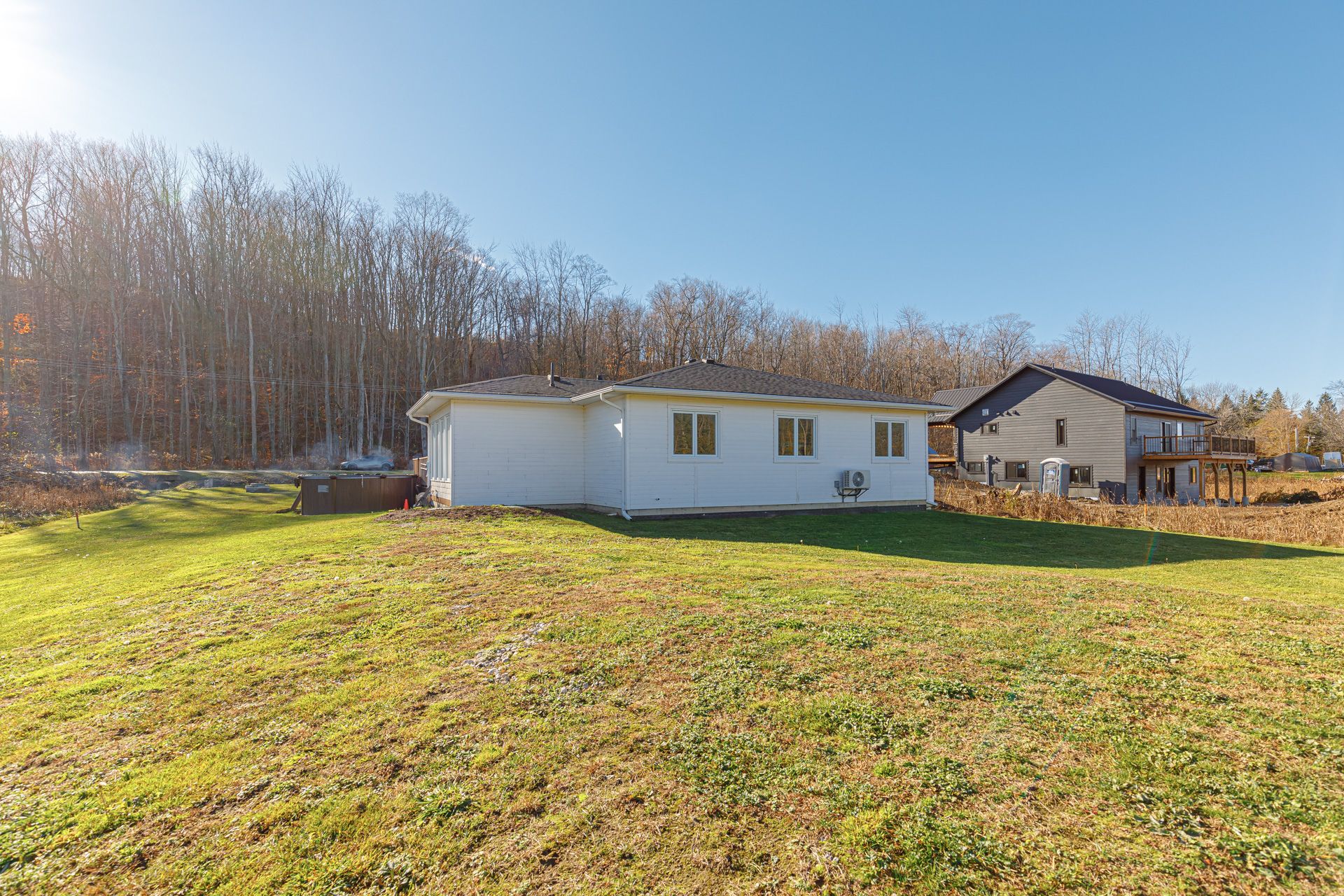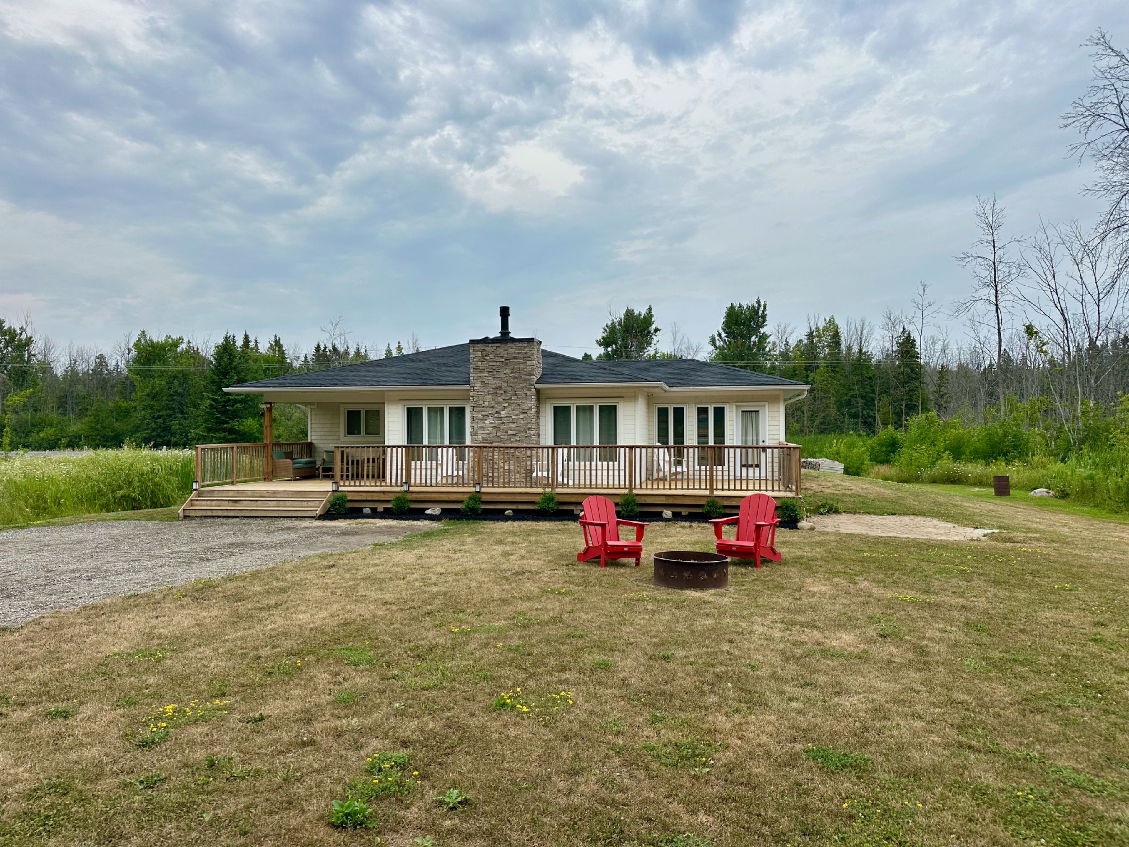 Beautifully crafted bungalow, located just a short drive from lora bay, thornbury, and meaford, offering the perfect blend of modern efficiency and comfortable main-floor living. Ideal for those who appreciate convenience and style, this home features an open-concept design with spacious living areas and plenty of room to personalize. The layout includes 3+1 generously sized bedrooms, some of the bedrooms can be easily be transformed into a home office, den or library. The primary bedroom is filled with natural light, offering direct access to the front deck, where you can relax and enjoy peaceful views of the hardwood forest across the street. This bedroom can also be converted into another livingroom. The kitchen stands out with a stylish backsplash, hardware, cabinetry and stainless steel appliances. The bathroom features high-end fixtures, including a tile shower/tub combination, offering both functionality and style. The open-concept living and dining area is perfect for entertaining, with a cozy propane fireplace that adds warmth and ambiance on cool evenings. A covered front porch with southern exposure provides a charming spot to enjoy the outdoors, no matter the season. Situated on nearly half an acre, this property is waiting for your personal landscaping design, the property provides ample space for outdoor living and there's plenty of parking with room to build a garage if desired. For those who enjoy outdoor recreation, this property is ideally located close to beach access, as well as world-class golf courses and skiing. Whether you're relaxing at home or exploring the surrounding area, this home is the perfect place to enjoy the best of both comfort and adventure. Book your showing today!