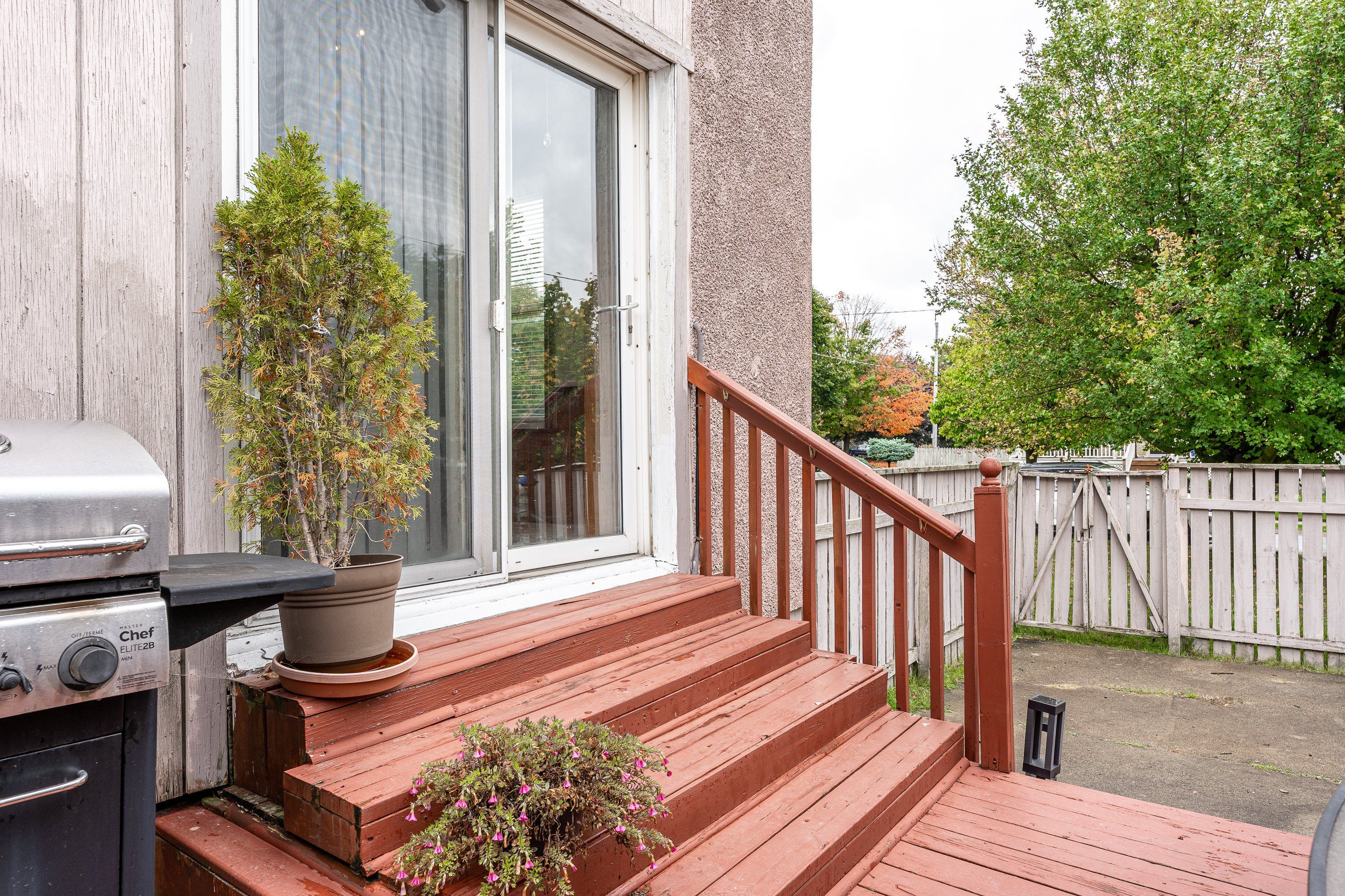 Grab your golf bag and stroll to the municipal golf course. Set up a road hockey game on the quiet street. This solid 3 bedroom home is a must see. Enjoy bbq on the deck off of the kitchen with ceramic tile leading to gracious living room dining room with cozy wood surface and high ceilings. Upstairs 3 bedrooms with 4 piece bath. Large paved driveway with room for 4 cars or 2 cars and rv with external power outlets. New roof in 2017 decorative shutters and flower box at front window, beside dining room table, newer windows and hardwood floors, private fenced in area behind and beside house with concrete patio furniture with a 12 x 15 pad. Entry to deck from sliding patio doors from kitchen. Safe and enclosed for small children or pets. Full security privacy screening, perfect for barbecue area and future hot tub. Front entry has a poured concrete sidewalk with floral urns for spring autumn flowers. Oak hanover custom kitchen with oak chair rail, updated and extended in 2015 with new countertop and island with seating, plus pantry with storage, features double patio door includes five stainless steel appliances fridge, stove, range hood, dishwasher and microwave lower level has fully finished family room, ruud high efficiency furnace, 100 amp service 2 baths. This house with bronze plaque, first occupied by joseph eastwood a ww1 vet, who worked at the grand trunk railway and managed the greenhouse there. Nice family home!