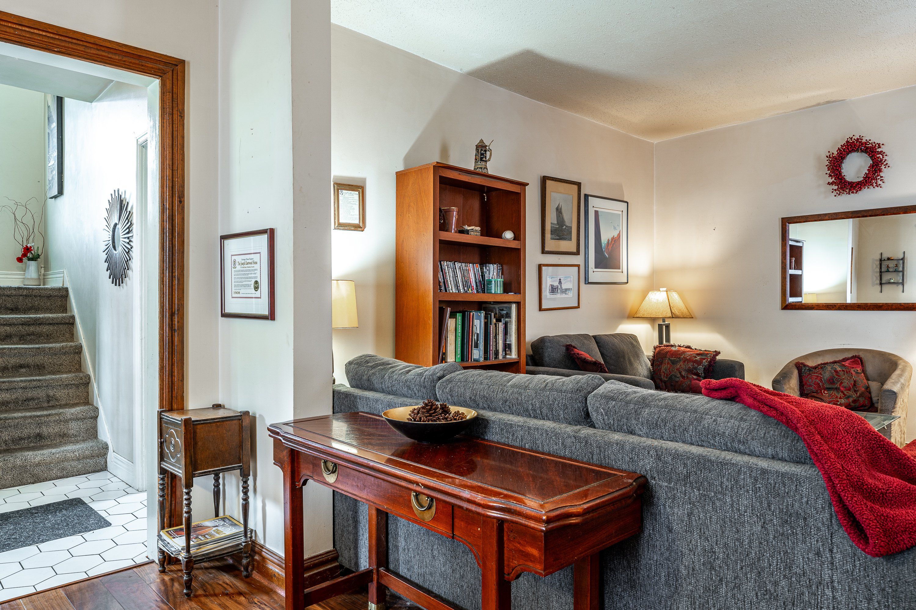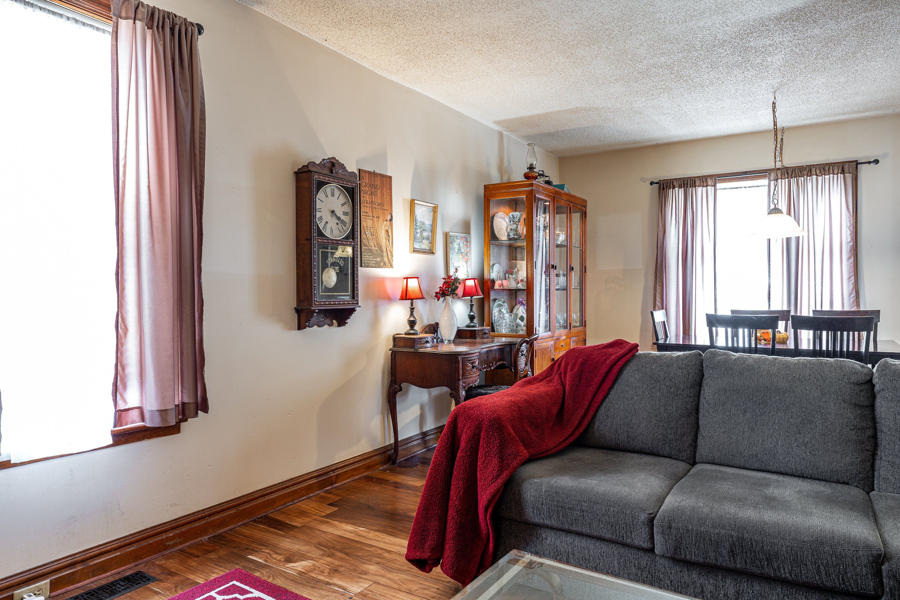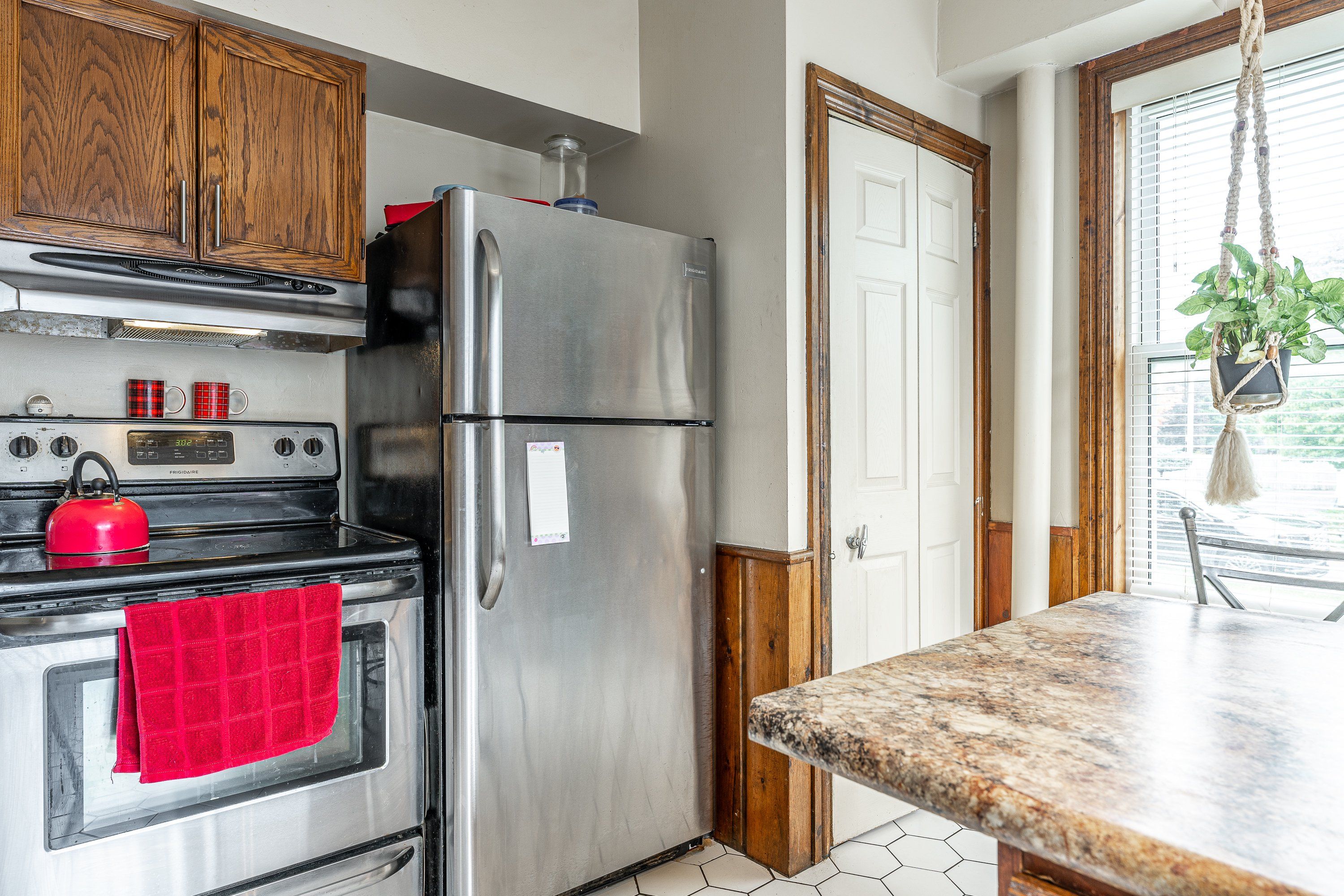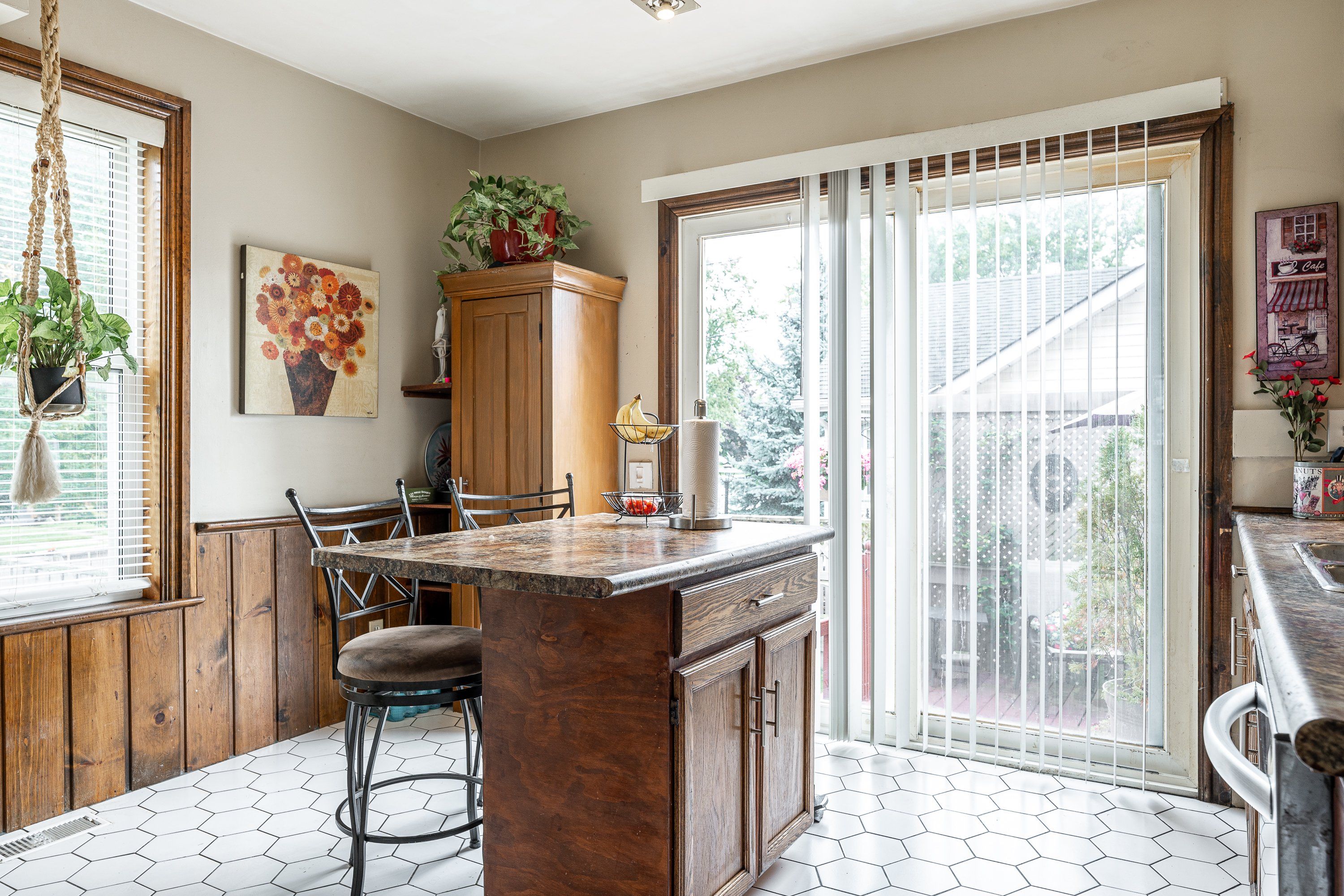 Grab your golf bag and stroll to the municipal golf course. Set up a road hockey game on the quiet street. This solid 3 bedroom home is a must see. Enjoy bbq on the deck off of the kitchen with ceramic tile leading to gracious living room dining room with cozy wood surface and high ceilings. Upstairs 3 bedrooms with 4 piece bath. Large paved driveway with room for 4 cars or 2 cars and rv with external power outlets. New roof in 2017 decorative shutters and flower box at front window, beside dining room table, newer windows and hardwood floors, private fenced in area behind and beside house with concrete patio furniture with a 12 x 15 pad. Entry to deck from sliding patio doors from kitchen. Safe and enclosed for small children or pets. Full security privacy screening, perfect for barbecue area and future hot tub. Front entry has a poured concrete sidewalk with floral urns for spring autumn flowers. Oak hanover custom kitchen with oak chair rail, updated and extended in 2015 with new countertop and island with seating, plus pantry with storage, features double patio door includes five stainless steel appliances fridge, stove, range hood, dishwasher and microwave lower level has fully finished family room, ruud high efficiency furnace, 100 amp service 2 baths. This house with bronze plaque, first occupied by joseph eastwood a ww1 vet, who worked at the grand trunk railway and managed the greenhouse there. Nice family home!