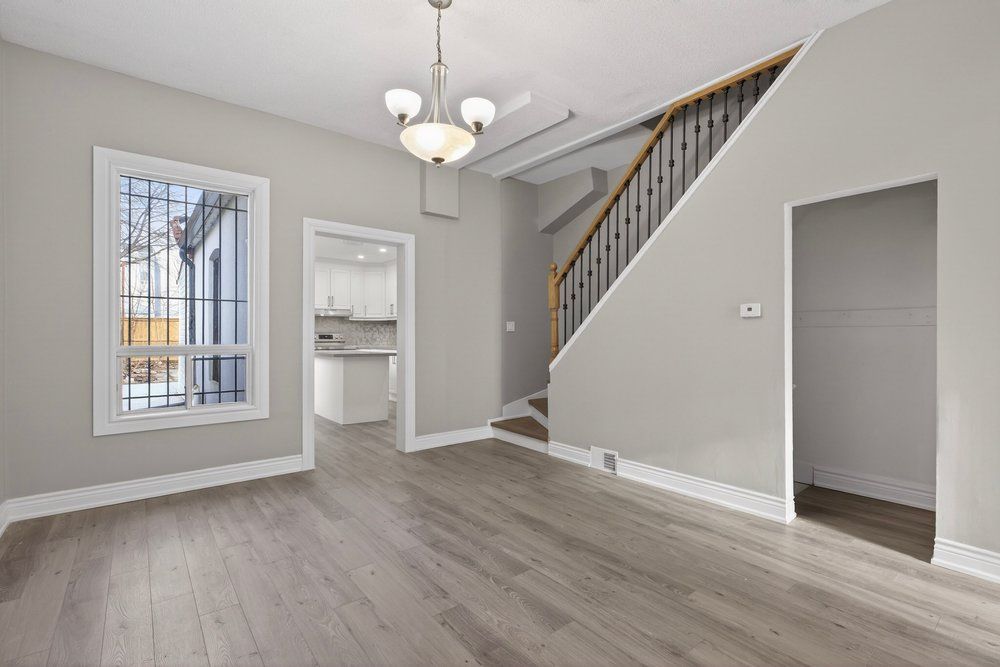 Fully renovated 1,297 sq ft semi-detached home in hamilton's desirable strathcona neighbourhood. This bright corner property features a modern kitchen with quartz countertops, stainless steel appliances, and a large centre island. The spacious main floor offers high ceilings and durable vinyl flooring throughout. Upstairs includes three well-sized bedrooms and an updated bathroom. The partially finished basement provides a washroom and flexible space for recreation, storage, or a home office. A tankless water heater ensures consistent hot water, and central air is planned for installation in spring 2026. Enjoy the private spacious backyard with green space and patio, perfect for relaxing or entertaining. Conveniently located near downtown, locke street, parks, schools, and transit. A great opportunity to live in one of hamilton's most sought-after communities.