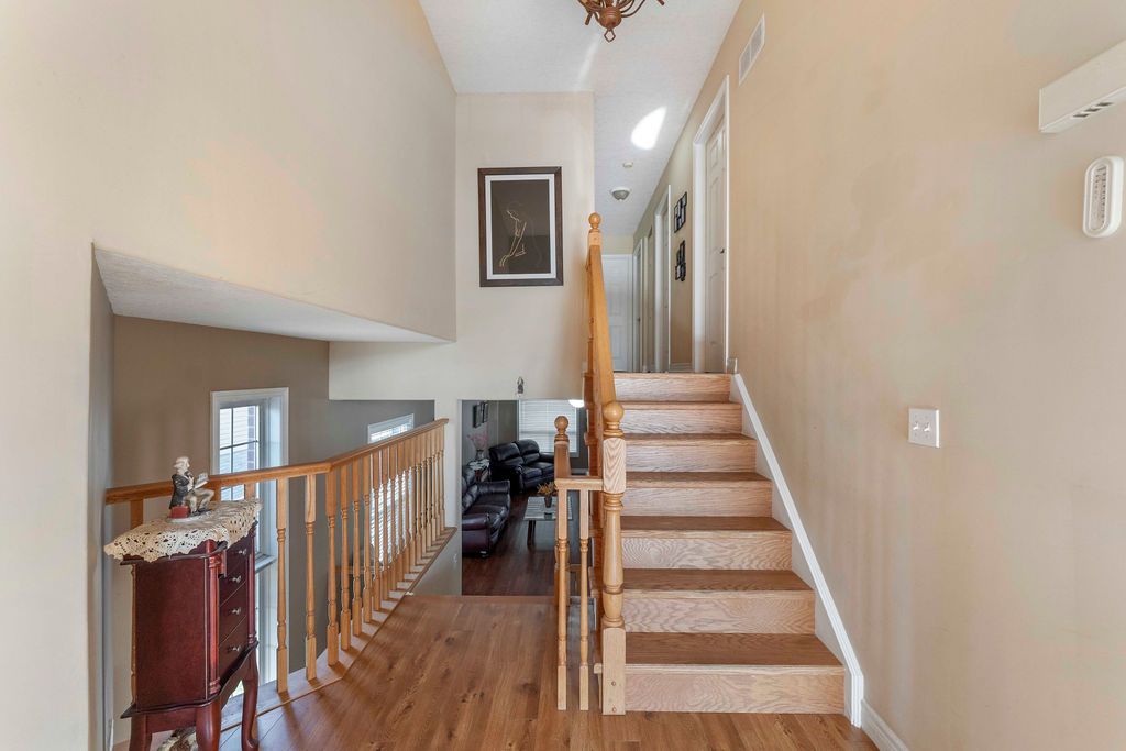 This stunning multi-level home is beautifully finished from top to bottom and offers a perfect blend of comfort and style. It features three spacious bedrooms, including a master suite with soaring cathedral ceilings and a luxurious three-piece ensuite. The large main bathroom is designed for relaxation, complete with a corner tub. The inviting family room centers around a cozy corner gas fireplace as is and includes a built-in cabinet for a tv, making it ideal for entertaining or unwinding. The home is fully landscaped, providing an attractive and low-maintenance exterior, and boasts a multi-level deck that offers ample space for outdoor dining, lounging, and enjoying the fresh air. With attention to detail throughout, this home combines functionality with elegance, creating a welcoming and versatile living space for families of all sizes.