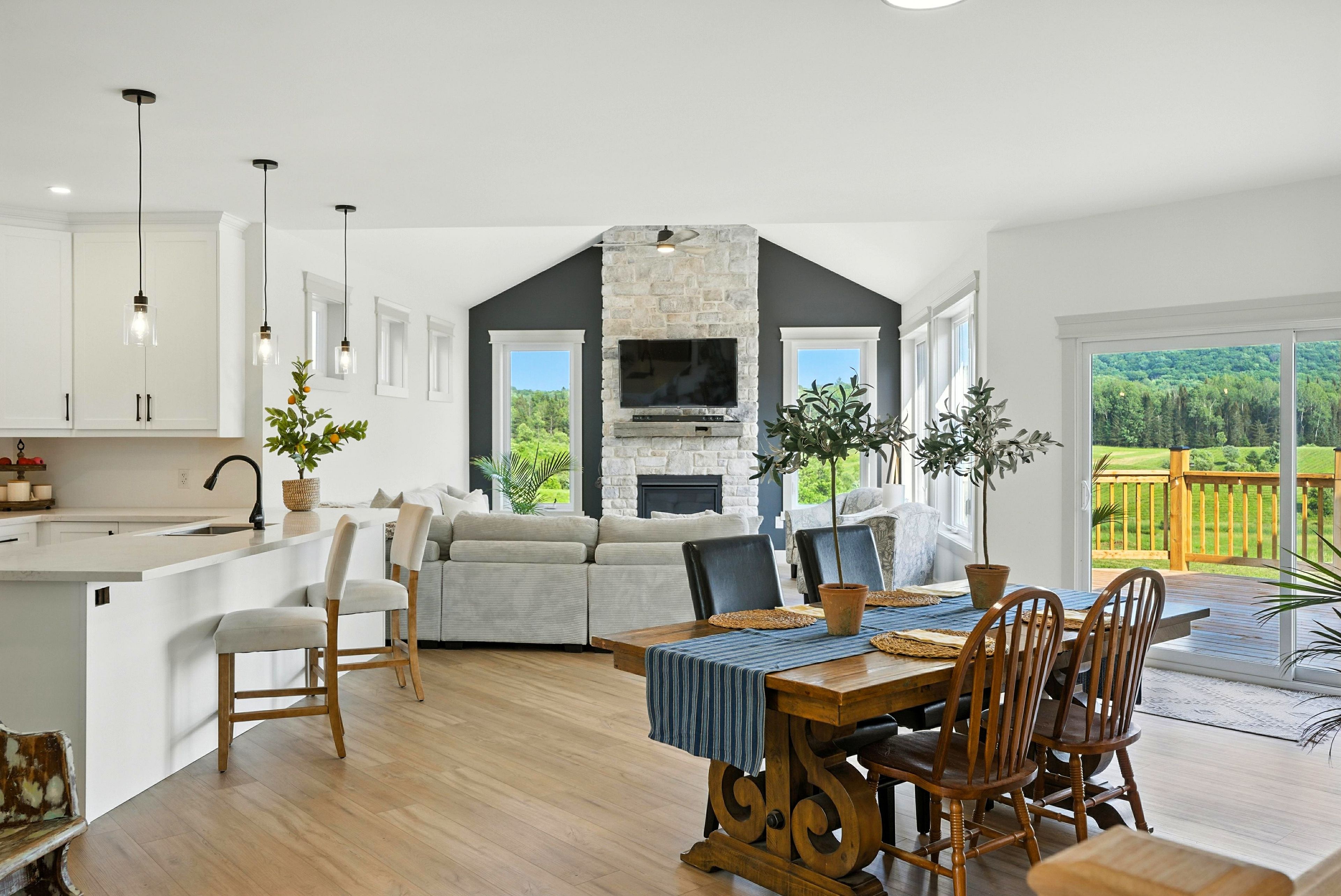 Discover the perfect blend of modern living and natural beauty in this brand new three-bedroom home, conveniently located just 10 minutes north of huntsville on the serene 3 mile lake road. This property offers easy access on and off the highway, making it an ideal retreat for those seeking tranquility without sacrificing convenience. As you step inside, you'll be greeted by a spacious open concept design that seamlessly connects the kitchen, living, and dining areas perfect for entertaining family and friends. Large windows invite abundant natural light and showcase breathtaking views of the rolling hills of the neighboring farm, beautifully manicured and a delight to behold. The expansive deck is perfect for outdoor gatherings or simply enjoying your morning coffee while soaking in the picturesque scenery. With an attached garage and an unfinished basement, this home provides ample opportunity for customization to expand your living space and double your square footage to suit your needs. Don't miss out on this exceptional opportunity to own a beautiful home in a prime location. Schedule your viewing today and experience the charm and comfort this property has to offer