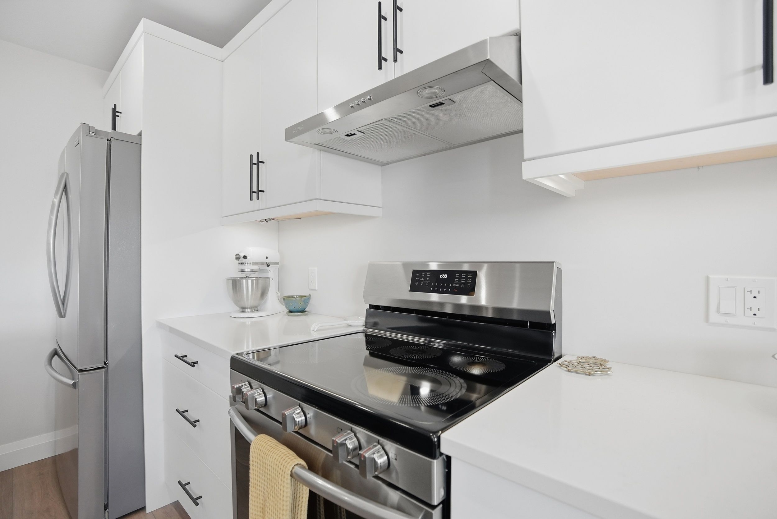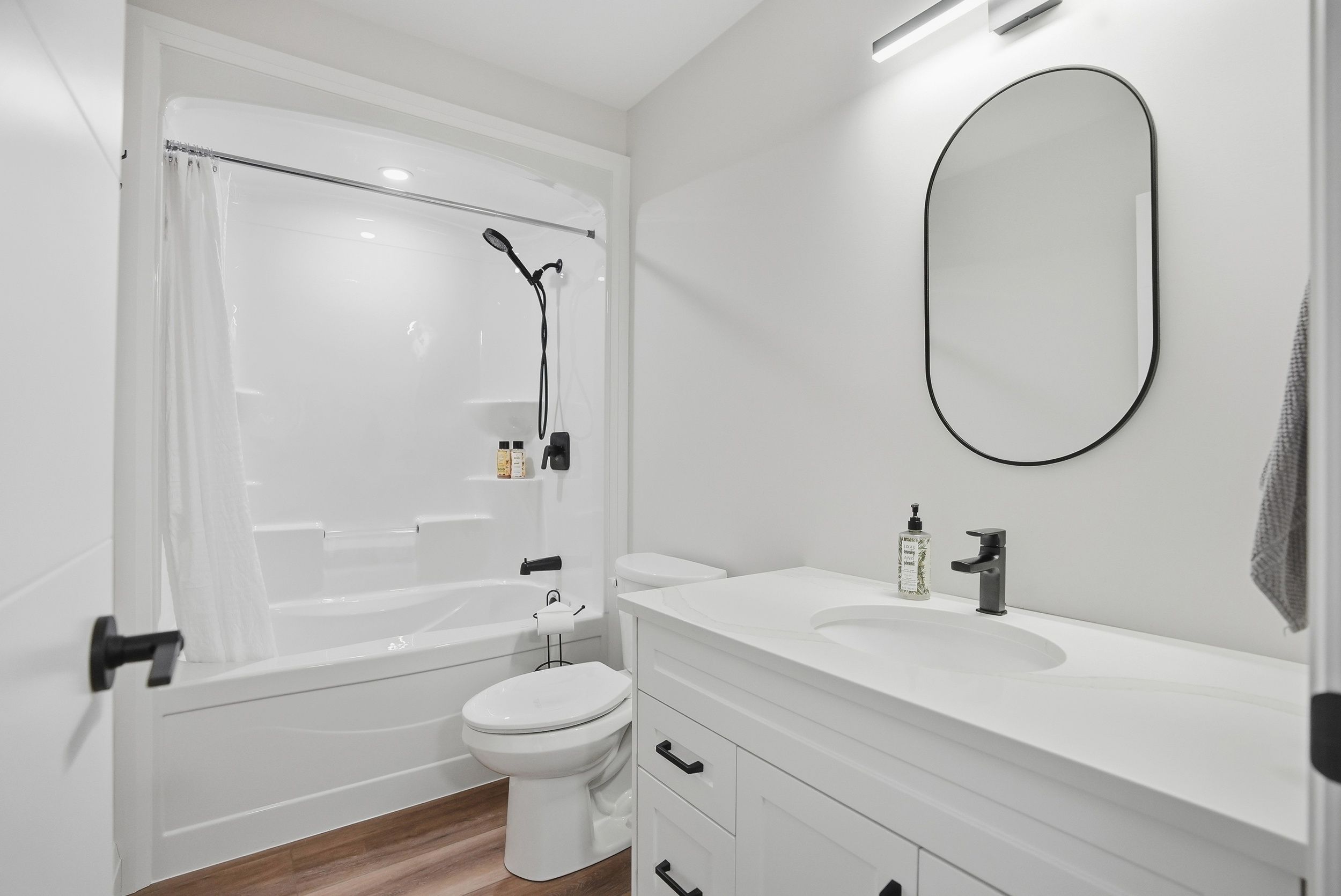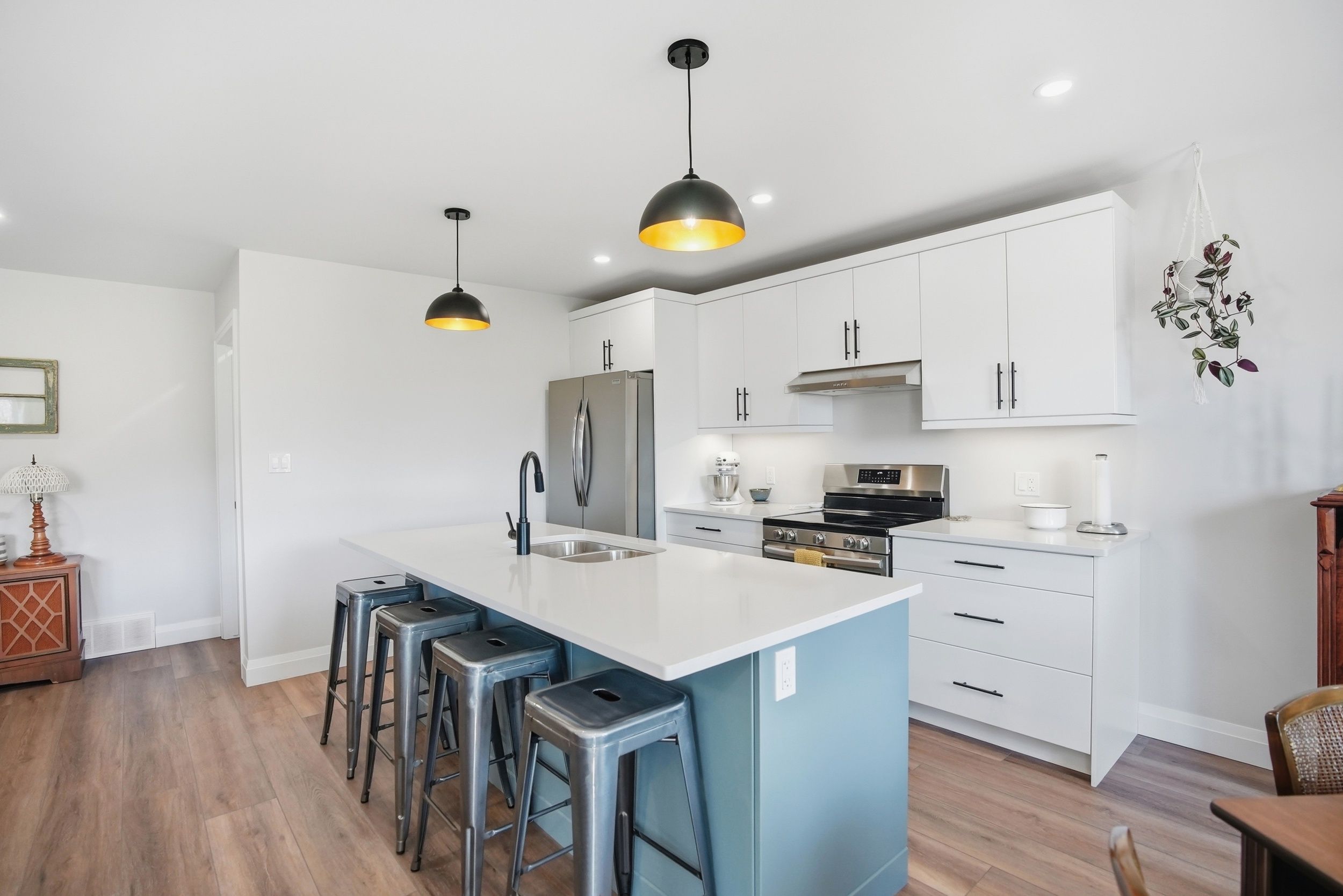 • Durable finishes include quartz countertops and quality flooring throughout.
