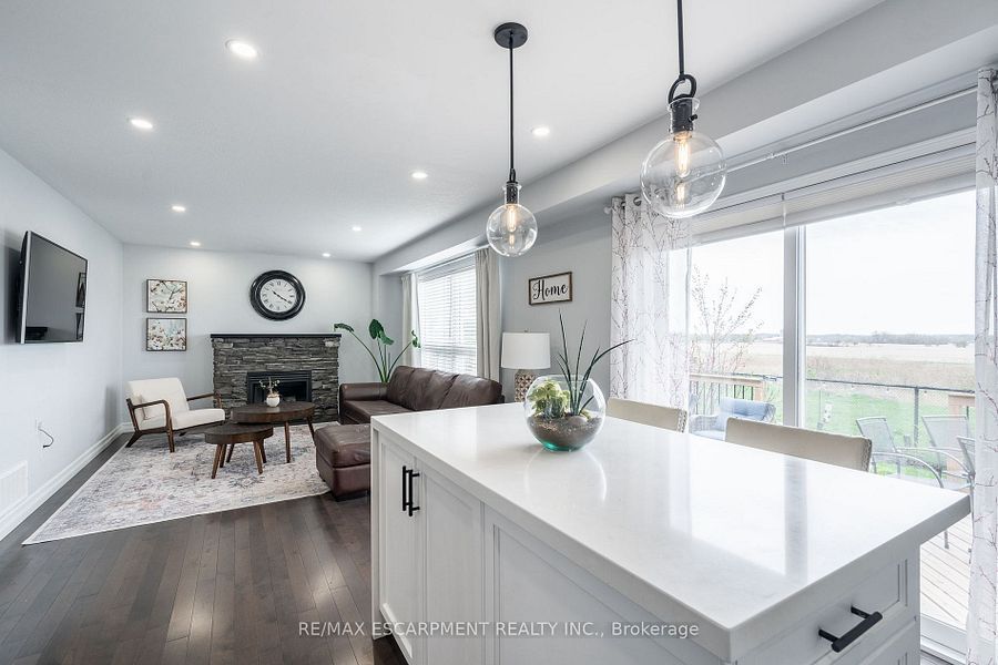 Welcome to this beautifully updated detached home offering 4 spacious bedrooms and 3 modern bathrooms. Step inside to find rich hardwood floors throughout and a freshly painted interior that exudes warmth and style. The heart of the home is the newly renovated kitchen, featuring a brand-new island, a generous pantry, and stylish updated light fixtures perfect for entertaining or family gatherings. Convenience is key with an upstairs laundry area, making everyday living even easier. Enjoy relaxing mornings on the inviting front porch and make the most of outdoor living with concrete pathways leading to the backyard, where serene views of open farmland create a peaceful retreat. Practical updates include newly edged driveway for clean curb appeal and a finished basement offering flexible space for a home office, gym, or recreation room. Move-in ready with thoughtful upgrades throughout. Furnace (2024) dishwasher (2025) driveway/concrete work (2023) stove (2025)