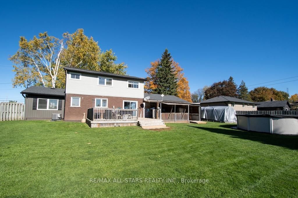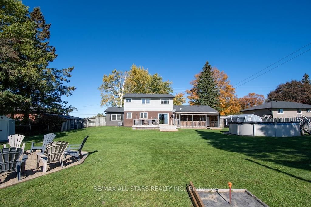 Step into this beautifully updated 3-bedroom, 2-storey home where comfort meets style. The open-concept main floor features a stunning kitchen with a large centre island, perfect for entertaining and family gatherings. Upstairs, you'll find three spacious bedrooms and a luxurious 5-piece bathroom complete with a relaxing soaker tub and separate shower. The backyard is truly magical featuring a covered porch/gazebo with a bar, a cozy fire pit area, and an above-ground pool for endless outdoor fun. The double garage, circular driveway, and full basement provide ample space for vehicles, hobbies, and storage & beyond. Plus, you'll love the privacy and views as this property backs onto open farmers fields. Upgrades in the last 5 years include: paved driveway, shingles, windows, siding, pot lights, garage doors, soffits, facia, eavestrough, pool liner, fire pit on the outside and on the inside: island, gas furnace, air conditioning unit, appliances, powder room refresh, counter tops and the basement; walls/ flooring etc. This is the one you've been waiting for with a modern living with a country feel!