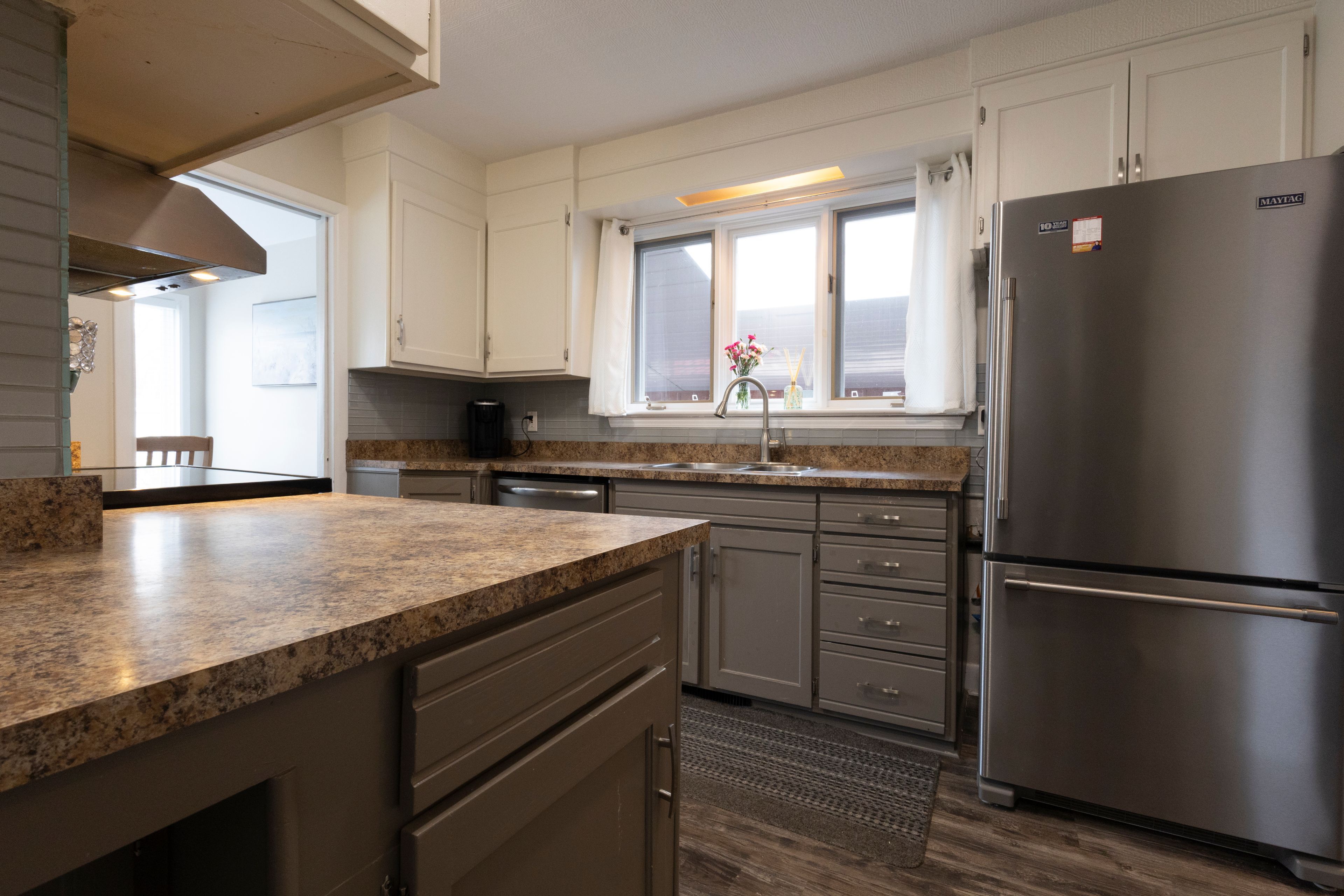 • Updated kitchen with stainless steel appliances and clean lines for efficiency.