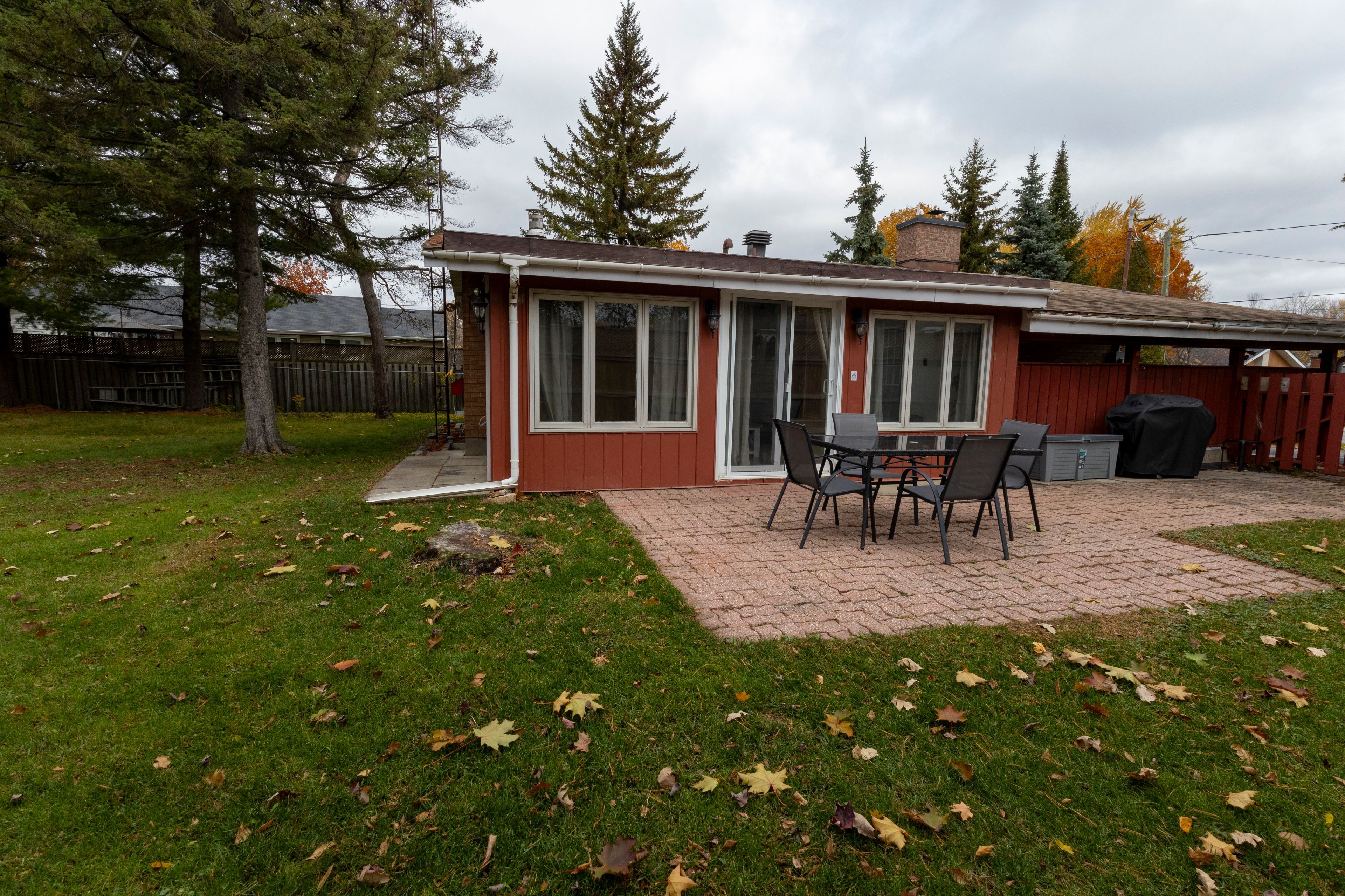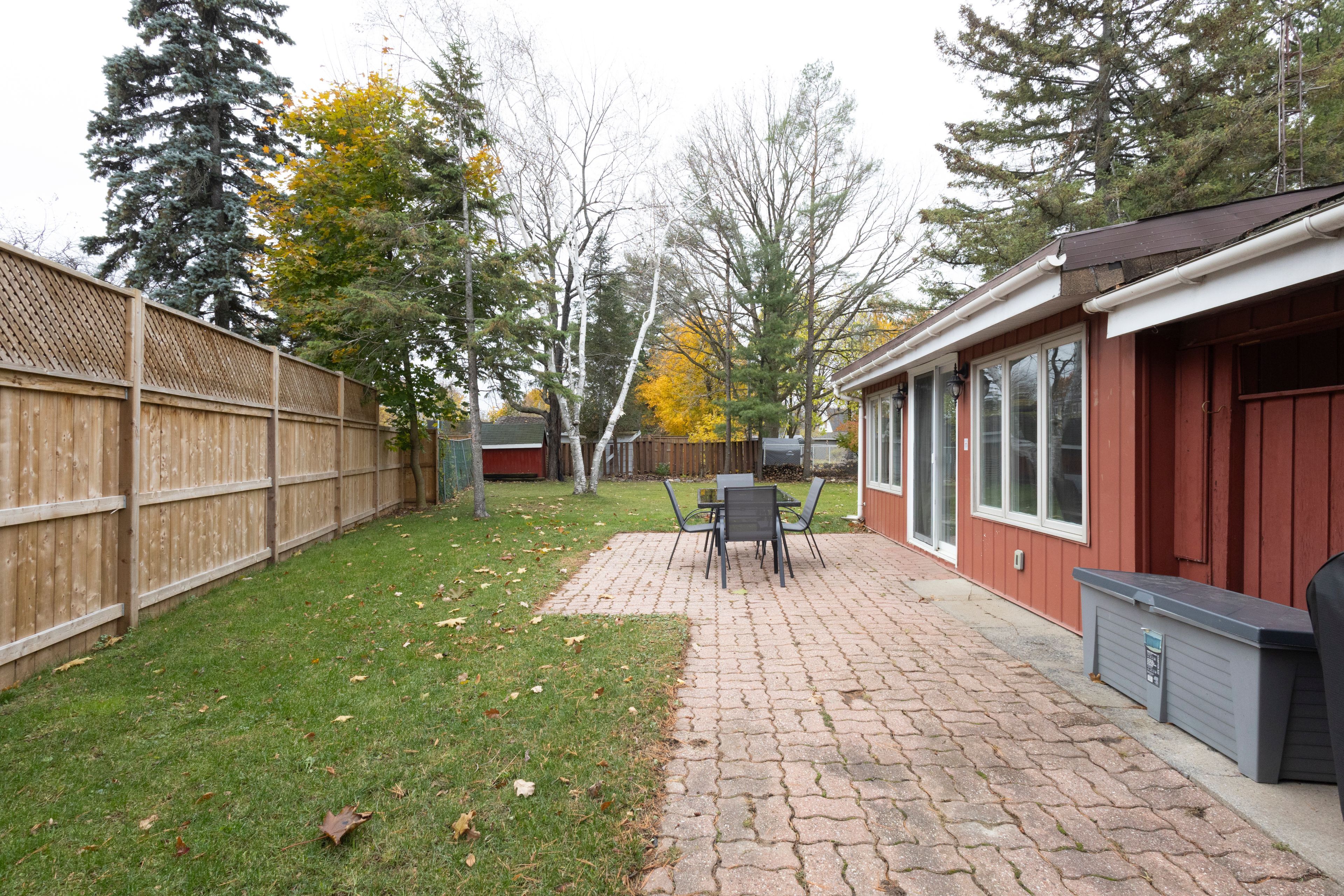 • Private backyard with mature trees, perfect for outdoor activities and gatherings.