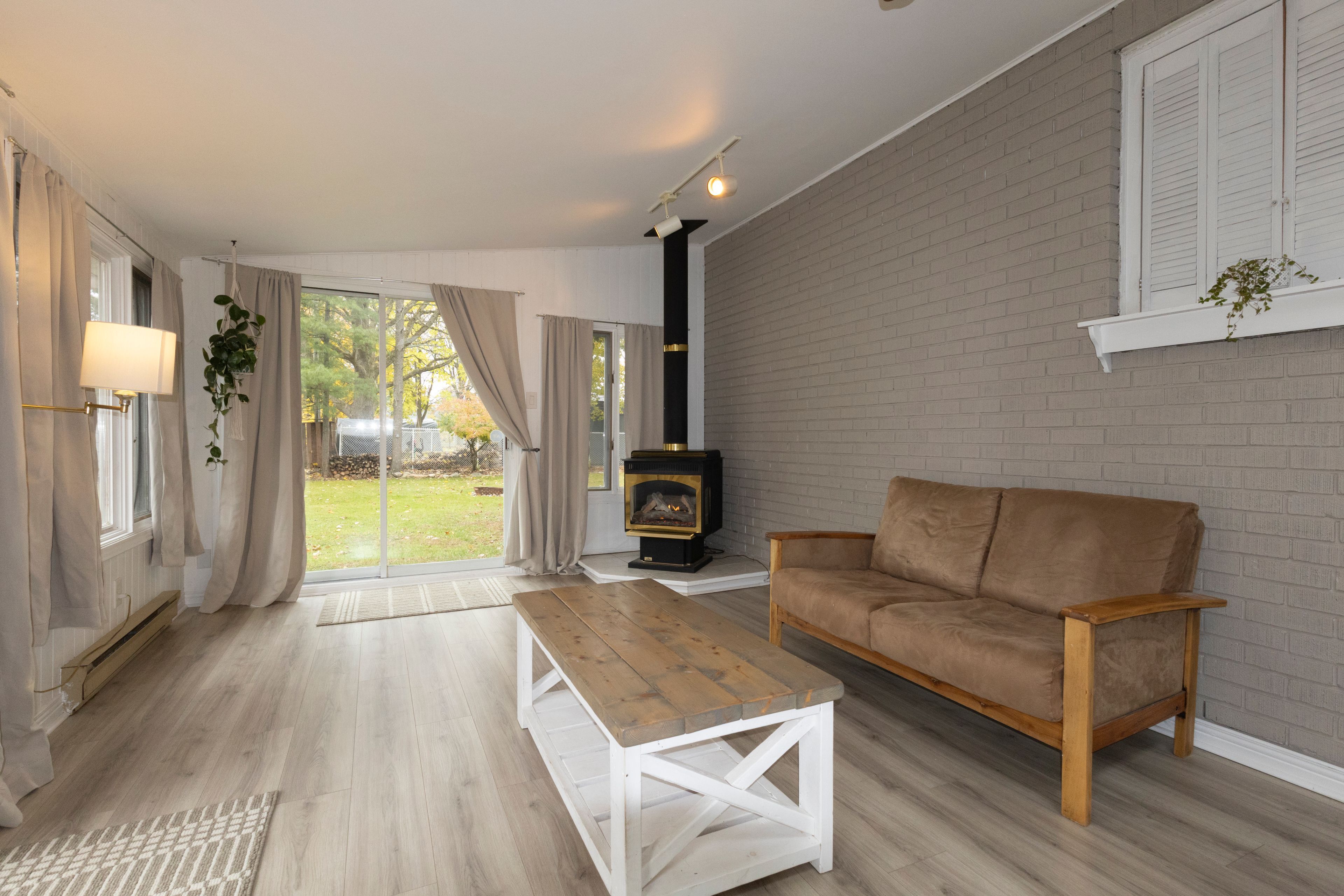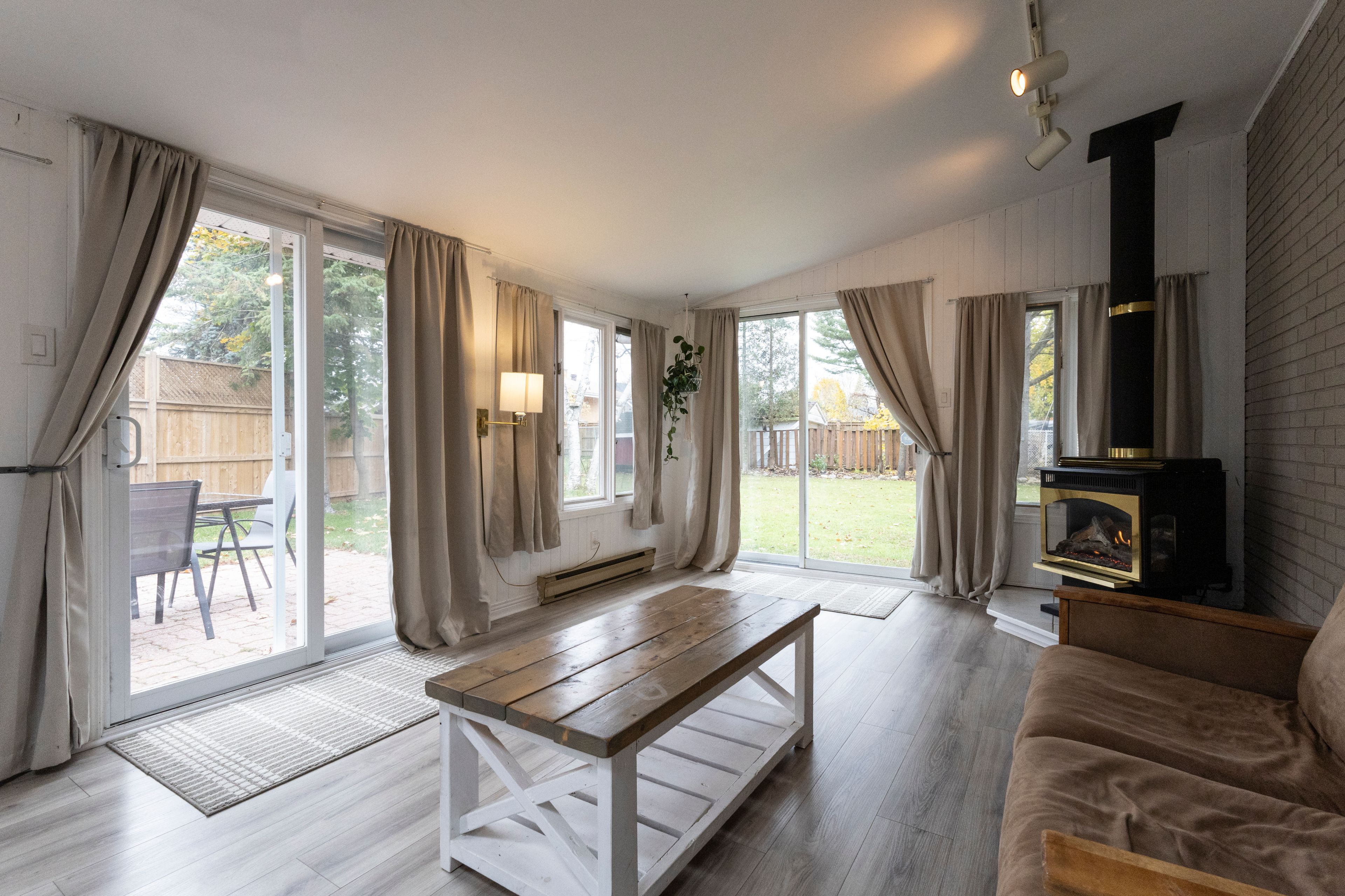 This modern/retro brick bungalow in the desirable, established riverdale neighbourhood in cornwall is fresh and contemporary and will appeal to buyers looking for comfort and style that is completely move in ready. The home features a large, bright, l-shaped main living and dining rooms and boasts a wall of front yard facing windows, cathedral ceilings and featuring a wett-certified three-sided brick fireplace and new pot lights-perfect for cozy comfy entertaining and easy family life. Funky, modern and seamless newer flooring flow throughout the main level; all three upstairs bedrooms were refreshed with new flooring and paint in 2022. The galley-style kitchen comes complete with three stainless steel applicances and features clean lines and provides an efficient and stylish culinary space. Also you will be pleased to know that the main floor bathroom was fully updated in august 2025 with sleek, modern and spotless fixtures. The large, mostly finished basement boasts a freshly drywalled and painted family room with plenty of room for family watch parties and playtime and also features a large utility/work room. The bright and spacious basement bathroom was completely updated. Note that there is a newer furnace for peace of mind. The main entrance from the covered carport leads to an exceptional sunroom with a skylight. It was updated in 2022 with new flooring and paint and features a gas fireplace and lovely views of the large, nearly fully fenced private backyard complete with mature trees, and a shed... Great for kids, outdoor entertaining and possibly an odr. This home is close to schools and is perfect for modern families seeking style, comfort and a prime riverdale location, close to shopping, restaurants, bike and hiking trials, the st. Lawrence river and the popular benson centre recreation facility-all contributing to an exceptional urban/suburban lifestyle. Move in ready with quick possession available.