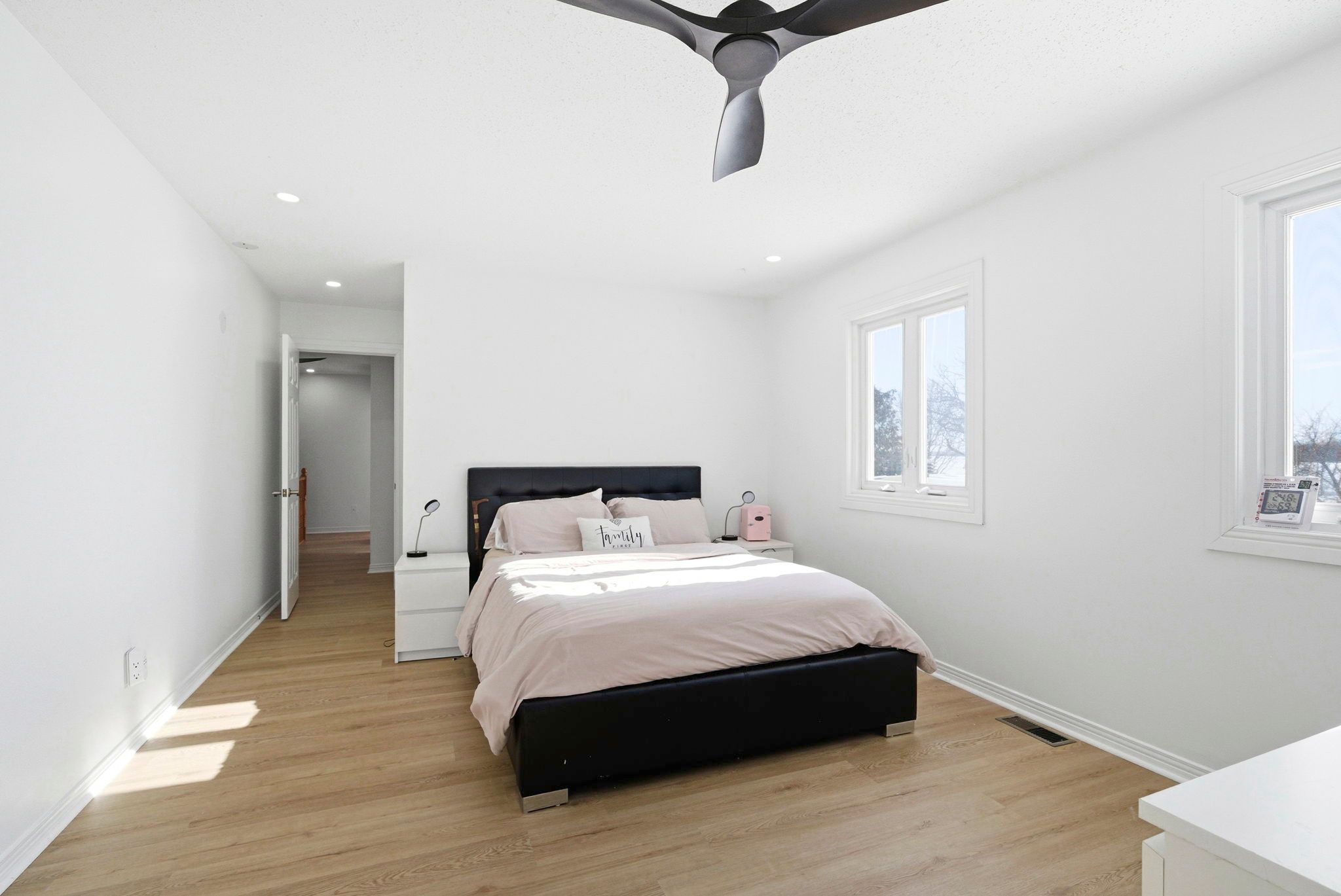 This beautifully updated 4. 72-acre country property is set against a backdrop of open farmland and wide skies, providing plenty of privacy, mature trees, a secondary dwelling unit, a chicken coop, and multiple outbuildings, including a historic 1860s barn. The principal residence has been extensively remodeled, with over $130k in renovations and upgrades completed. A welcoming enclosed entry leads into a bright, open-concept living space created by opening up the original layout to enhance flow and functionality. Expansive front-facing windows, pot lights throughout, fresh paint, and updated flooring carried uniformly across the main level create a cohesive and modern aesthetic. The brand-new kitchen anchors the home, showcasing a large quartz island, white cabinetry with brass hardware, s/s appliances, a modern hood fan, and skylights. An extended wall of built-in cabinetry adds both storage and style. The kitchen connects seamlessly to the formal dining area, while a separate area with dark walls is ideal for a media room. The main floor offers a full bathroom that was renovated in 2022 with a glass walk-in shower and contemporary finishes. Upstairs, updated flooring continues throughout. The primary suite is bright and inviting, featuring multiple windows and a walk-in closet. 3 additional bedrooms are well-proportioned and ideal for a growing family, while the fully renovated main bathroom features a freestanding soaker tub, a separate glass shower, and a double vanity. The attached farmhouse offers comfortable, self-contained living with its own kitchen, a living room with a charming wood stove, a dining room, 2 second-level bedrooms, and a 4-piece bathroom. The attached garage features an updated concrete slab, while the private deck includes a gazebo and a hot tub patio overlooking the expansive yard and surrounding farmland. Life here unfolds at a slower, more intentional pace - fresh air, stunning sunrises and sunsets, and star-filled skies await!