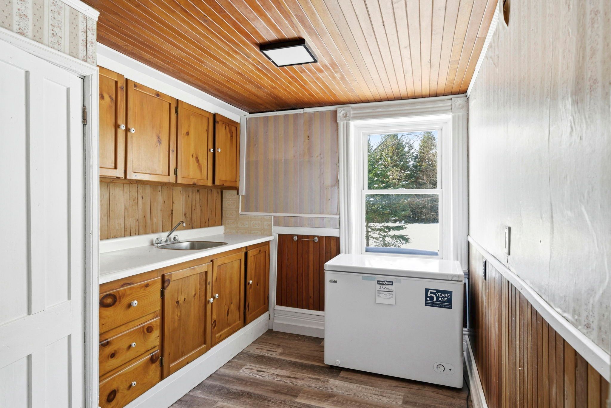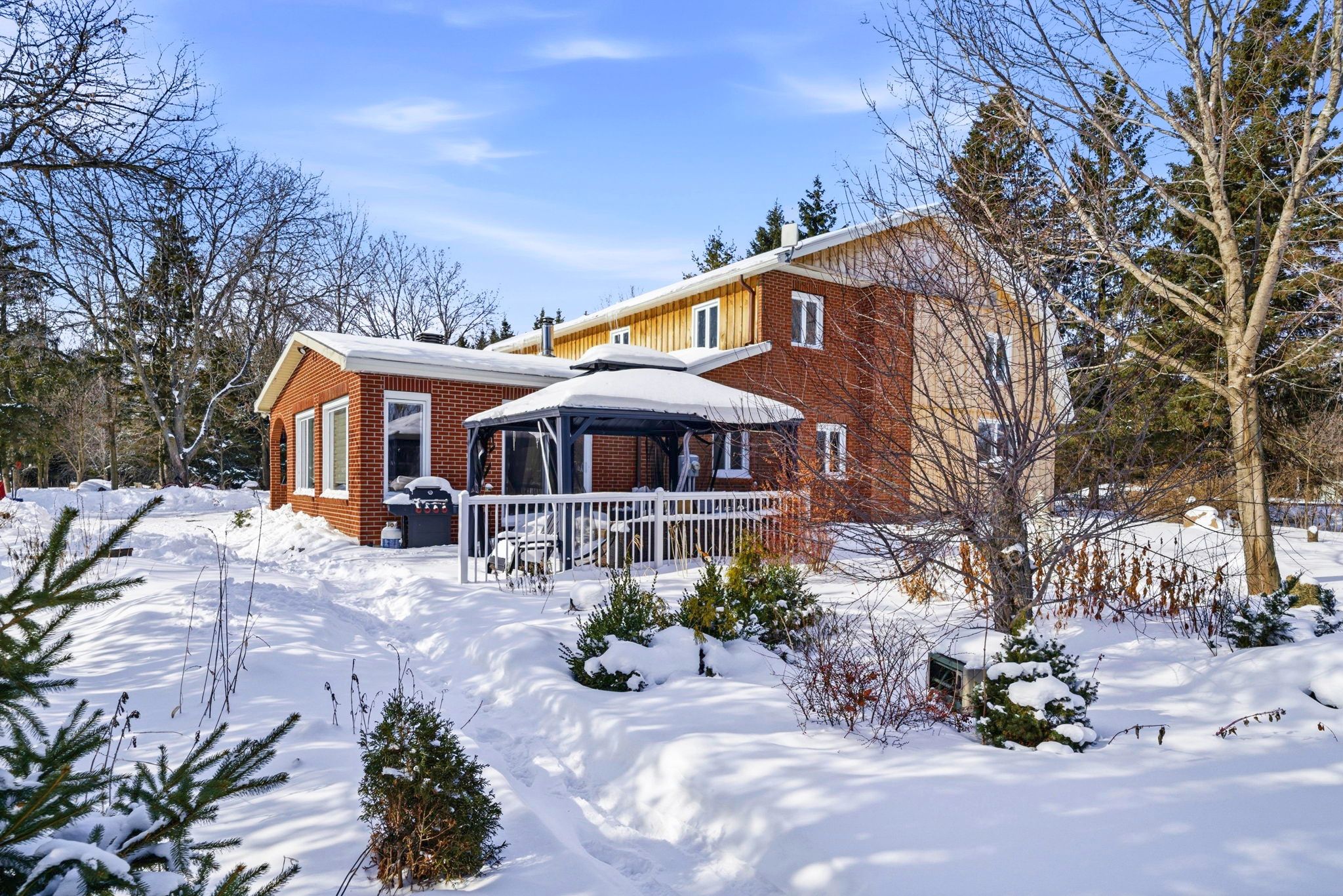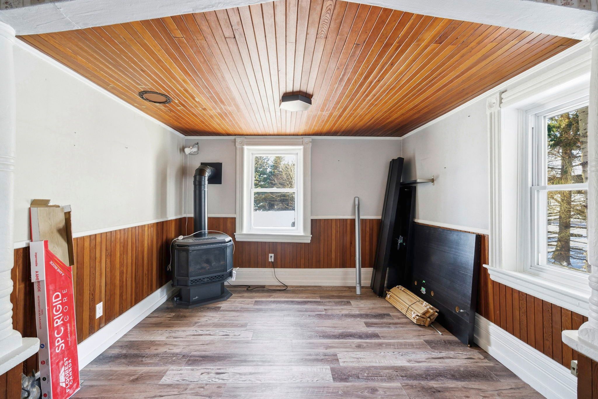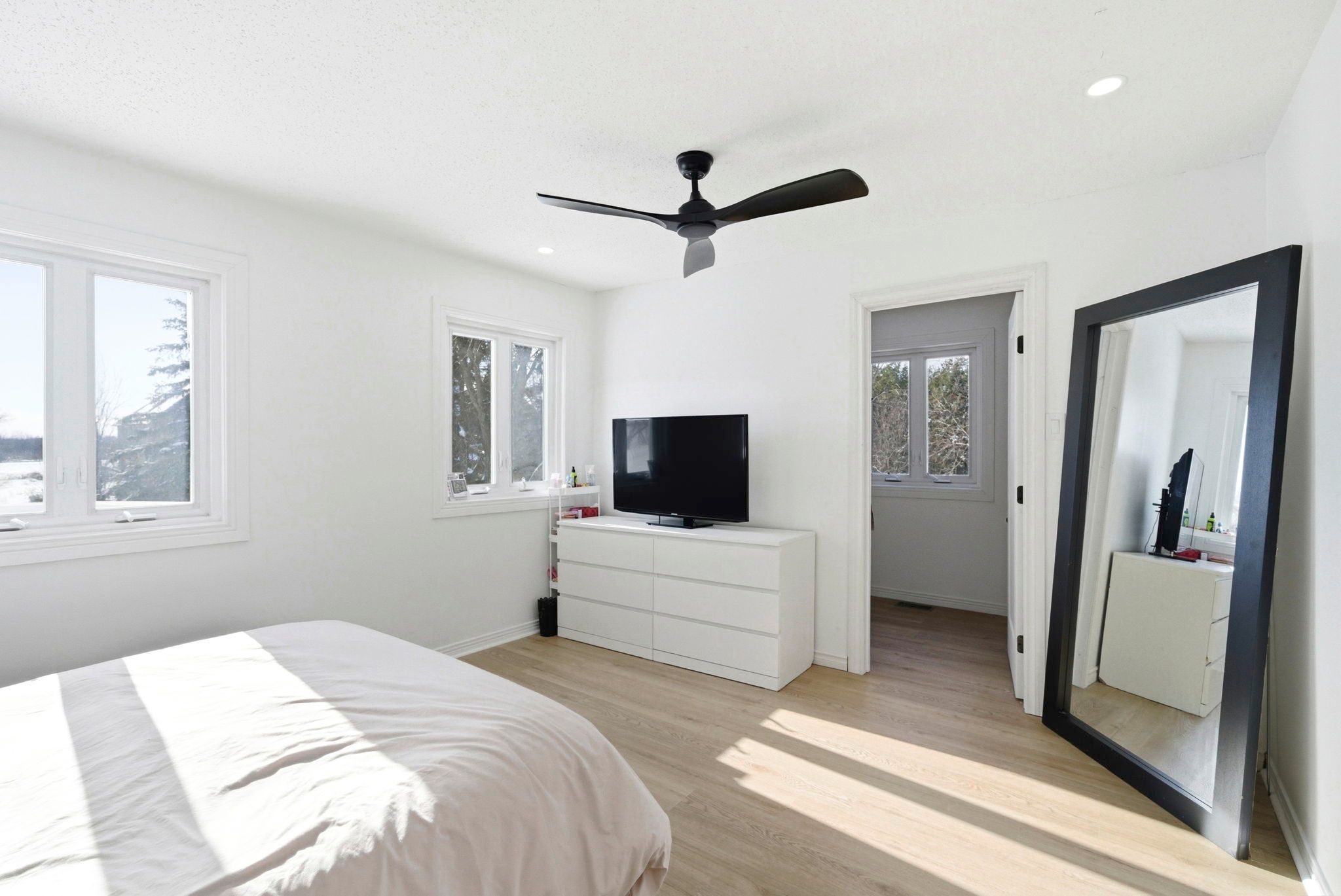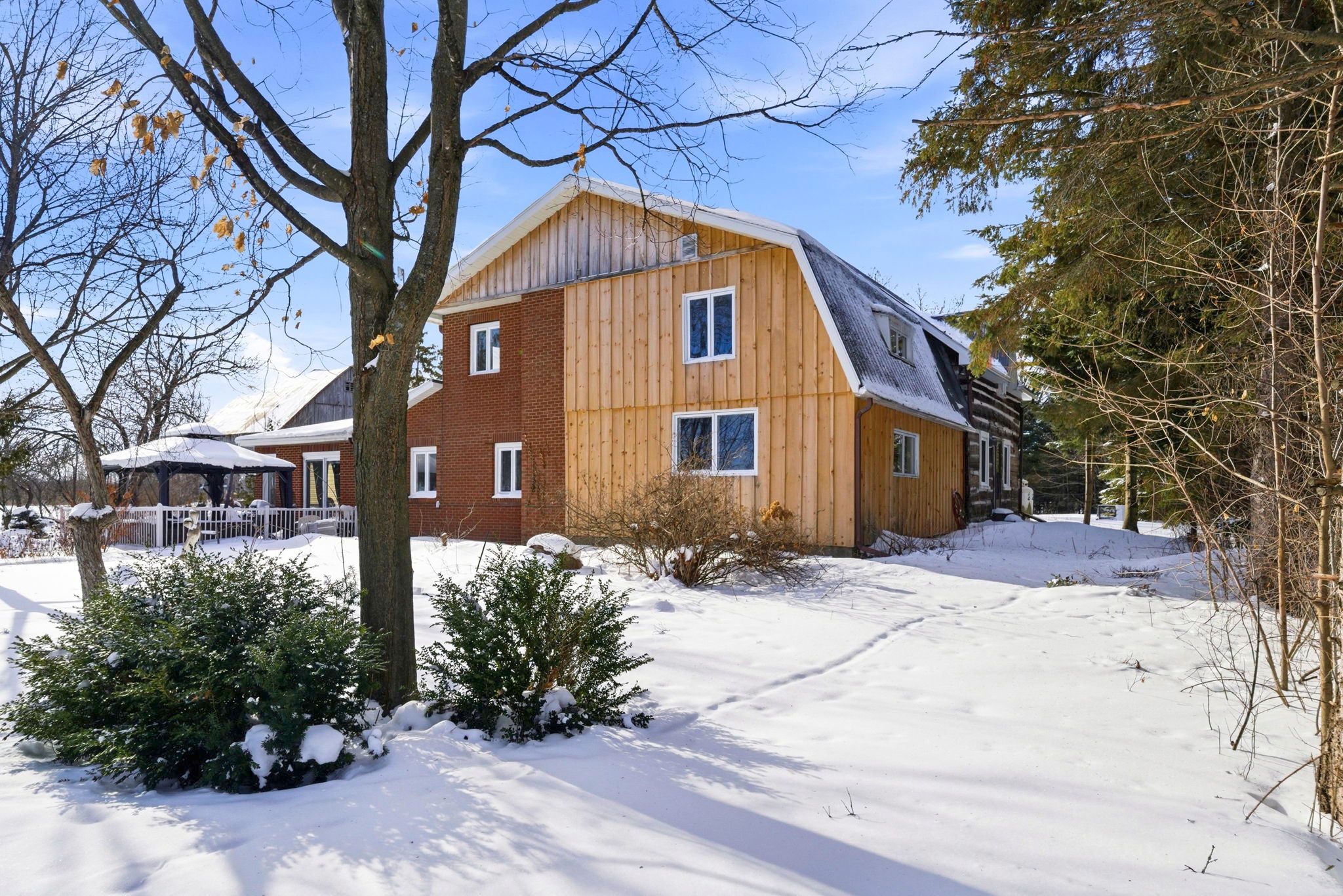This beautifully updated 4. 72-acre country property is set against a backdrop of open farmland and wide skies, providing plenty of privacy, mature trees, a secondary dwelling unit, a chicken coop, and multiple outbuildings, including a historic 1860s barn. The principal residence has been extensively remodeled, with over $130k in renovations and upgrades completed. A welcoming enclosed entry leads into a bright, open-concept living space created by opening up the original layout to enhance flow and functionality. Expansive front-facing windows, pot lights throughout, fresh paint, and updated flooring carried uniformly across the main level create a cohesive and modern aesthetic. The brand-new kitchen anchors the home, showcasing a large quartz island, white cabinetry with brass hardware, s/s appliances, a modern hood fan, and skylights. An extended wall of built-in cabinetry adds both storage and style. The kitchen connects seamlessly to the formal dining area, while a separate area with dark walls is ideal for a media room. The main floor offers a full bathroom that was renovated in 2022 with a glass walk-in shower and contemporary finishes. Upstairs, updated flooring continues throughout. The primary suite is bright and inviting, featuring multiple windows and a walk-in closet. 3 additional bedrooms are well-proportioned and ideal for a growing family, while the fully renovated main bathroom features a freestanding soaker tub, a separate glass shower, and a double vanity. The attached farmhouse offers comfortable, self-contained living with its own kitchen, a living room with a charming wood stove, a dining room, 2 second-level bedrooms, and a 4-piece bathroom. The attached garage features an updated concrete slab, while the private deck includes a gazebo and a hot tub patio overlooking the expansive yard and surrounding farmland. Life here unfolds at a slower, more intentional pace - fresh air, stunning sunrises and sunsets, and star-filled skies await!