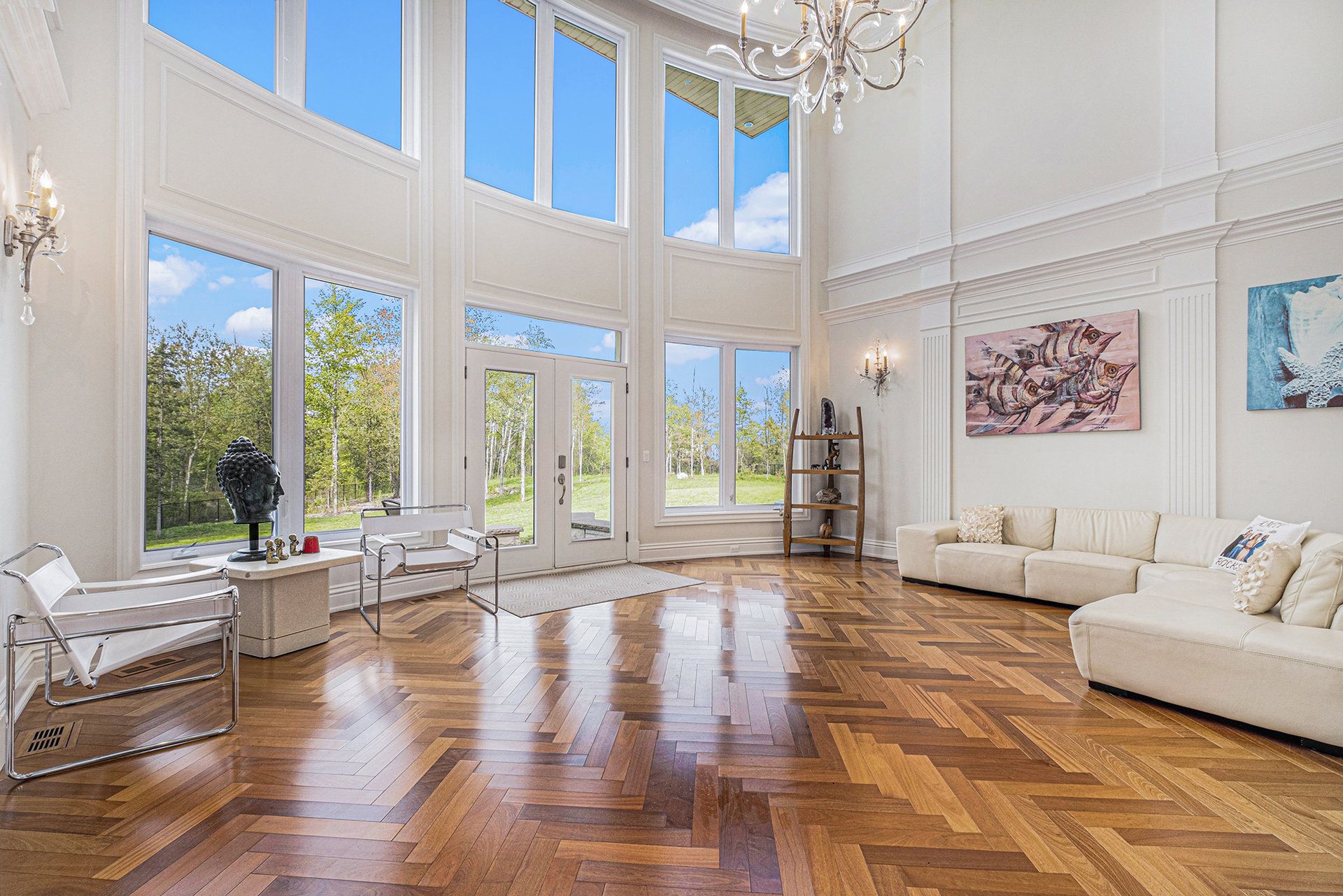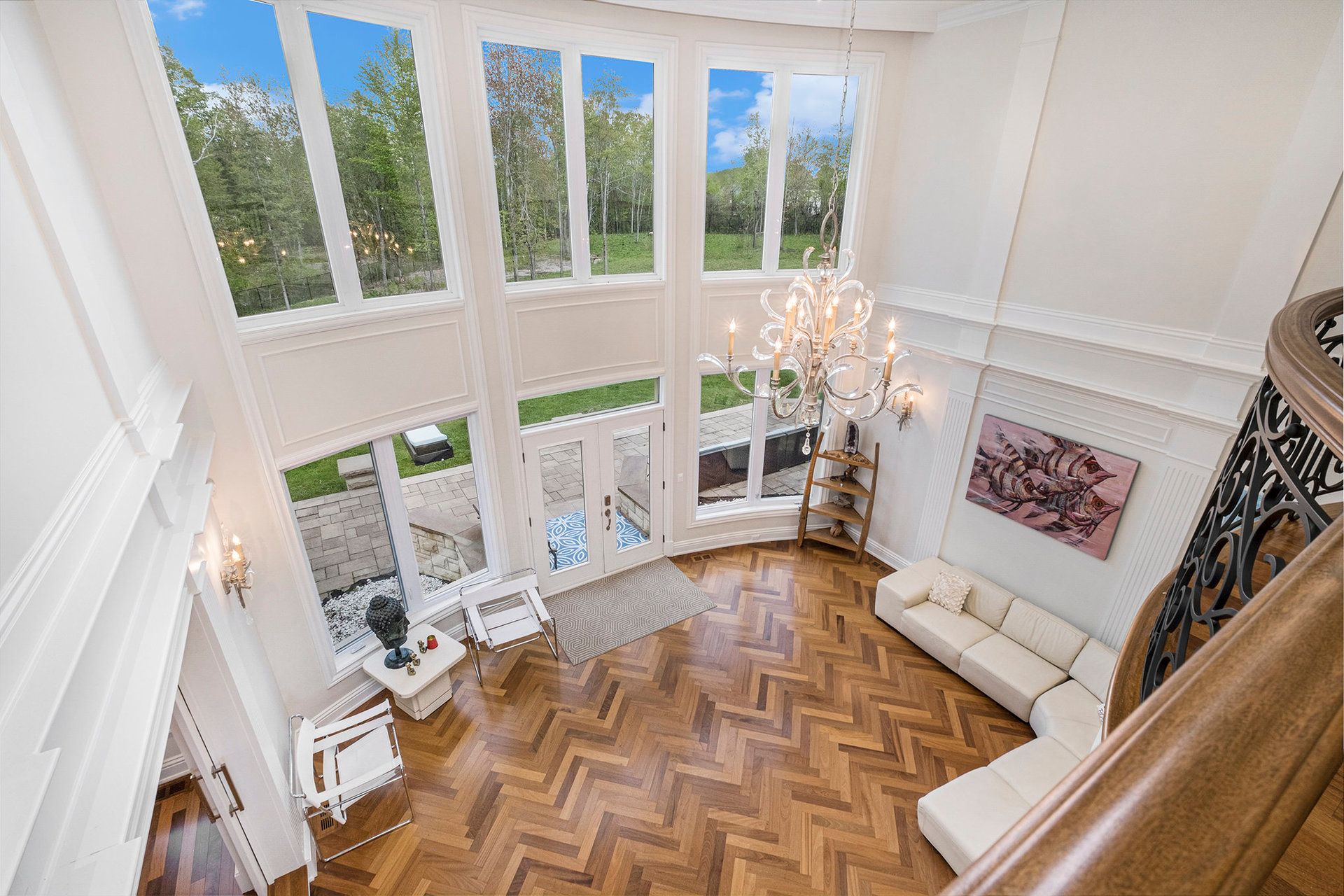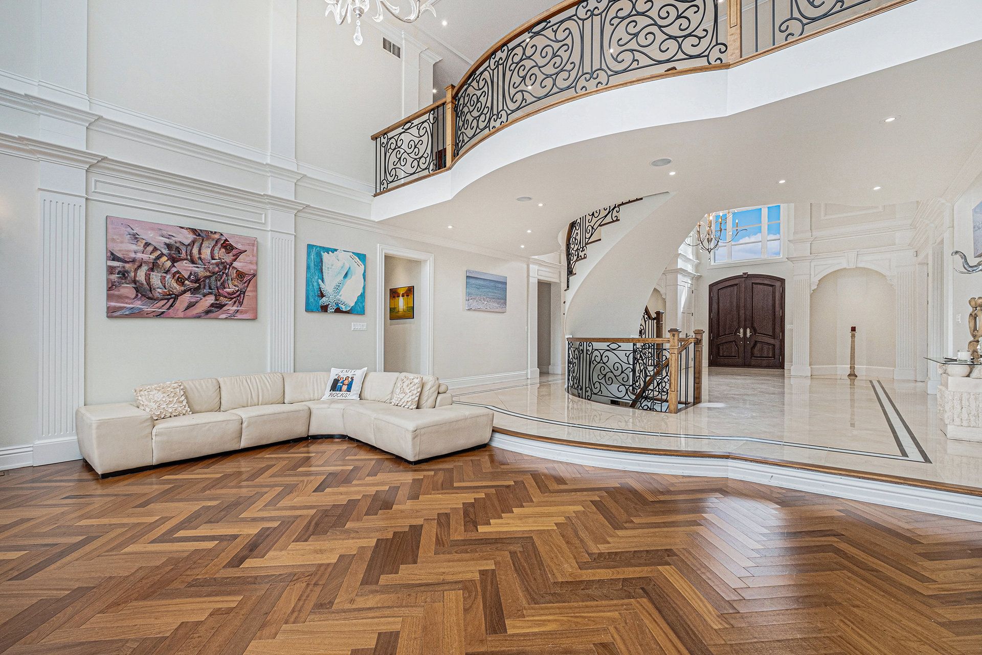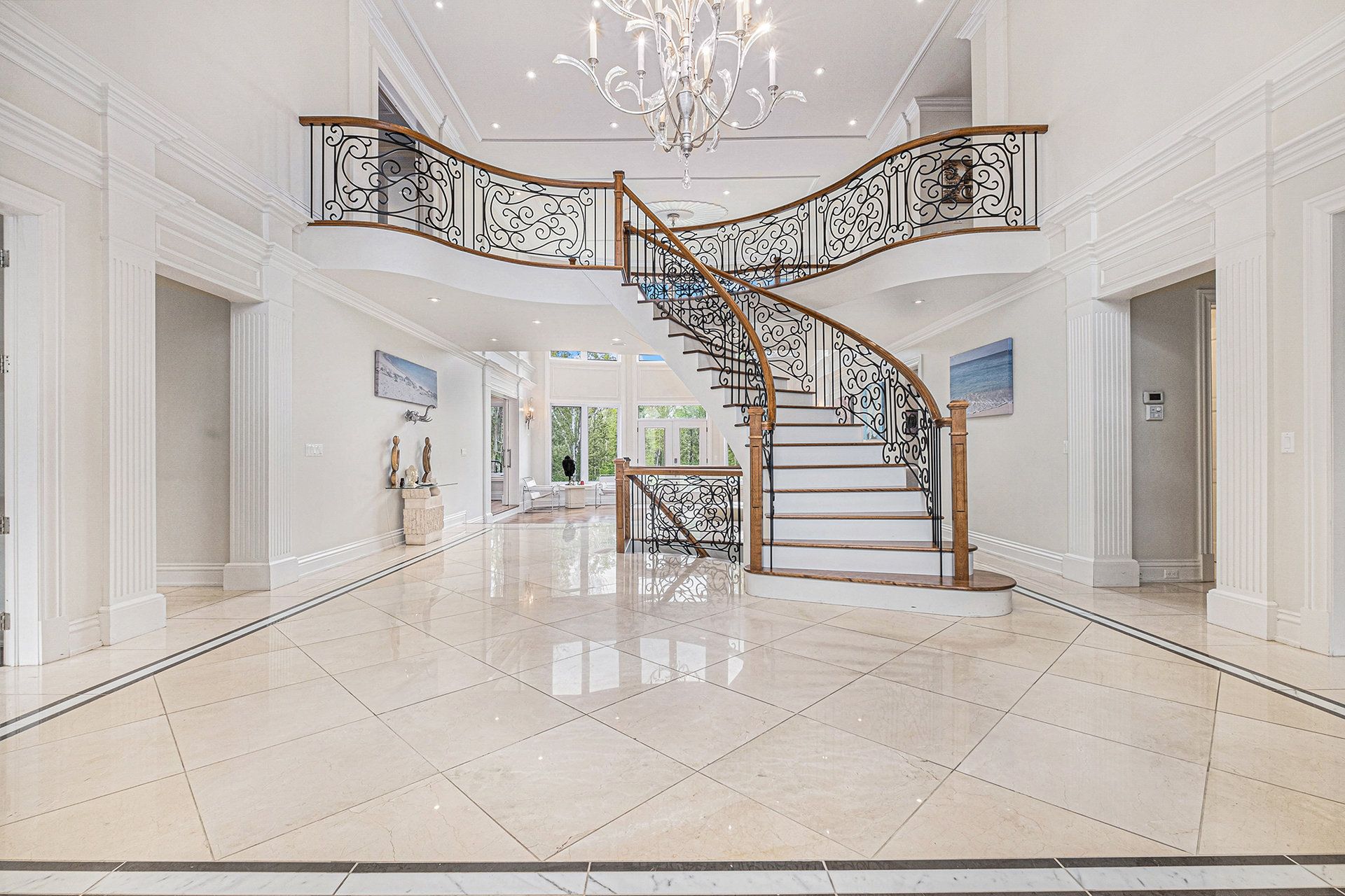 Magnificent palace in rideau forest! This stunning fully furnished estate (approximately 10,000 sq. Ft.) is situated on a 2. 45-acre lot in the prestigious rideau forest neighborhood. Featuring a majestic stone exterior, this home is the epitome of luxury living. A serene fountain at the entrance sets the tone for the opulence within. Upon stepping into the grand foyer, you're greeted by gleaming marble floors and a curved staircase adorned with a wrought-iron railing, creating a breathtaking first impression. The herringbone hardwood floors, 20-ft ceilings, two-tier windows, crown molding & exquisite chandeliers showcase intricate craftsmanship throughout this architectural masterpiece. Boasting 6 bedrooms & 9 bathrooms, this renowned property featured in movies with mega celebrities offers unparalleled sophistication. Highlights include a dream kitchen with taj mahal granite countertops, integrated appliances, a butlers pantry & an elegant dining room. An inviting family room with a fireplace & a main-level bedroom with an ensuite. A private wing for the primary suite, complete with a sitting area, fireplace, a dream closet & a breathtaking 5 piece ensuite w/heated floors. Each bedroom features a walk in closet and ensuite bathroom, with one offering access to a private balcony. This fully furnished estate is an entertainers paradise with a home theater, gym, and steam room. The walk-out basement has a separate entrance, leading to an additional bedroom with an ensuite. Heated floors in select areas, dual furnaces, dual air conditioners, dual hot water tanks (owned), and a generac home generator for peace of mind. Other notable features include: high-end appliances, separate sound systems for individual rooms, electronically lowered chandelier for easy cleaning and the garage having a separate entrance to the basement. This famous celebrity property, surrounded by tranquility & grandeur, offers an unparalleled blend of elegance, privacy, and functionality.