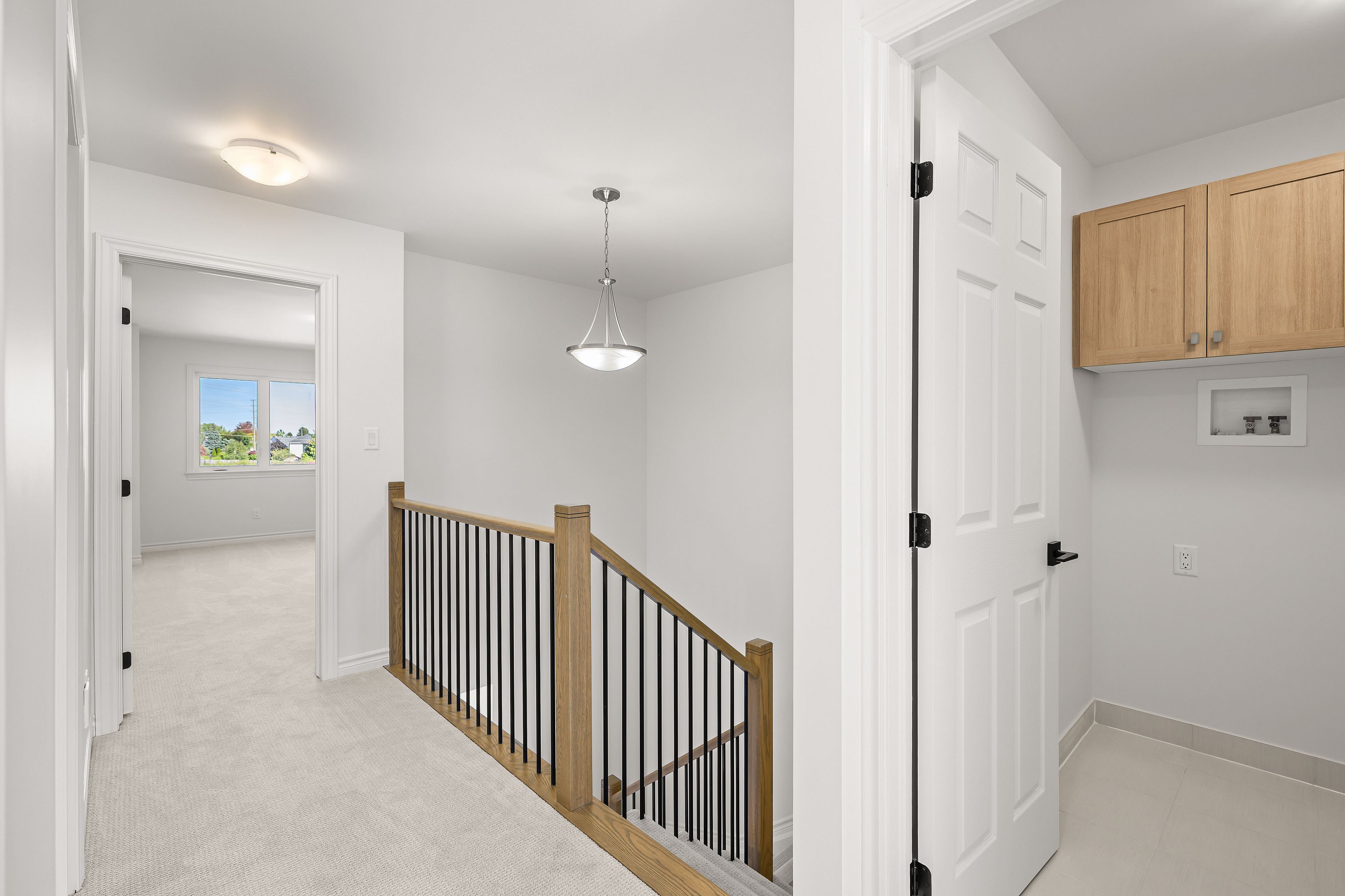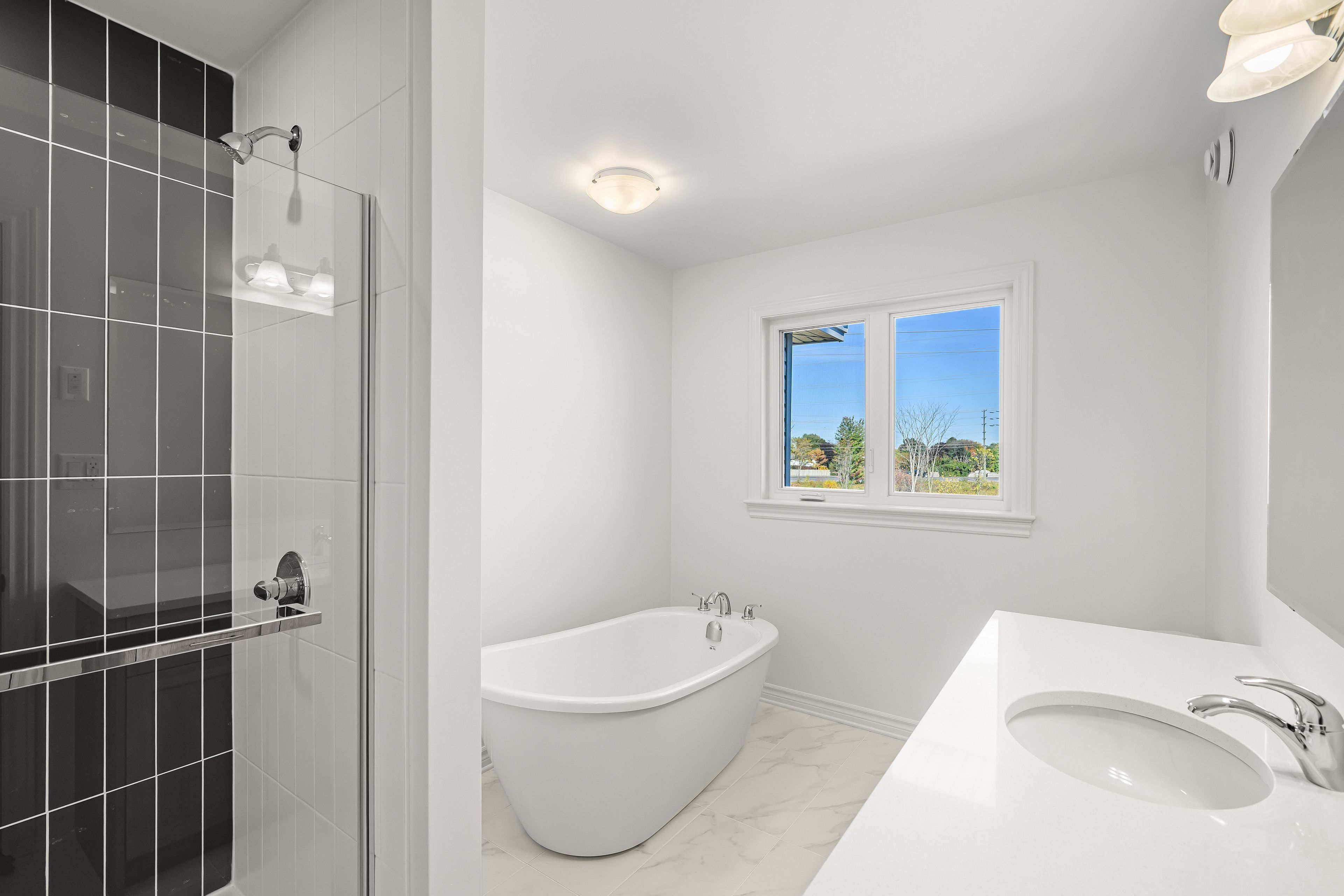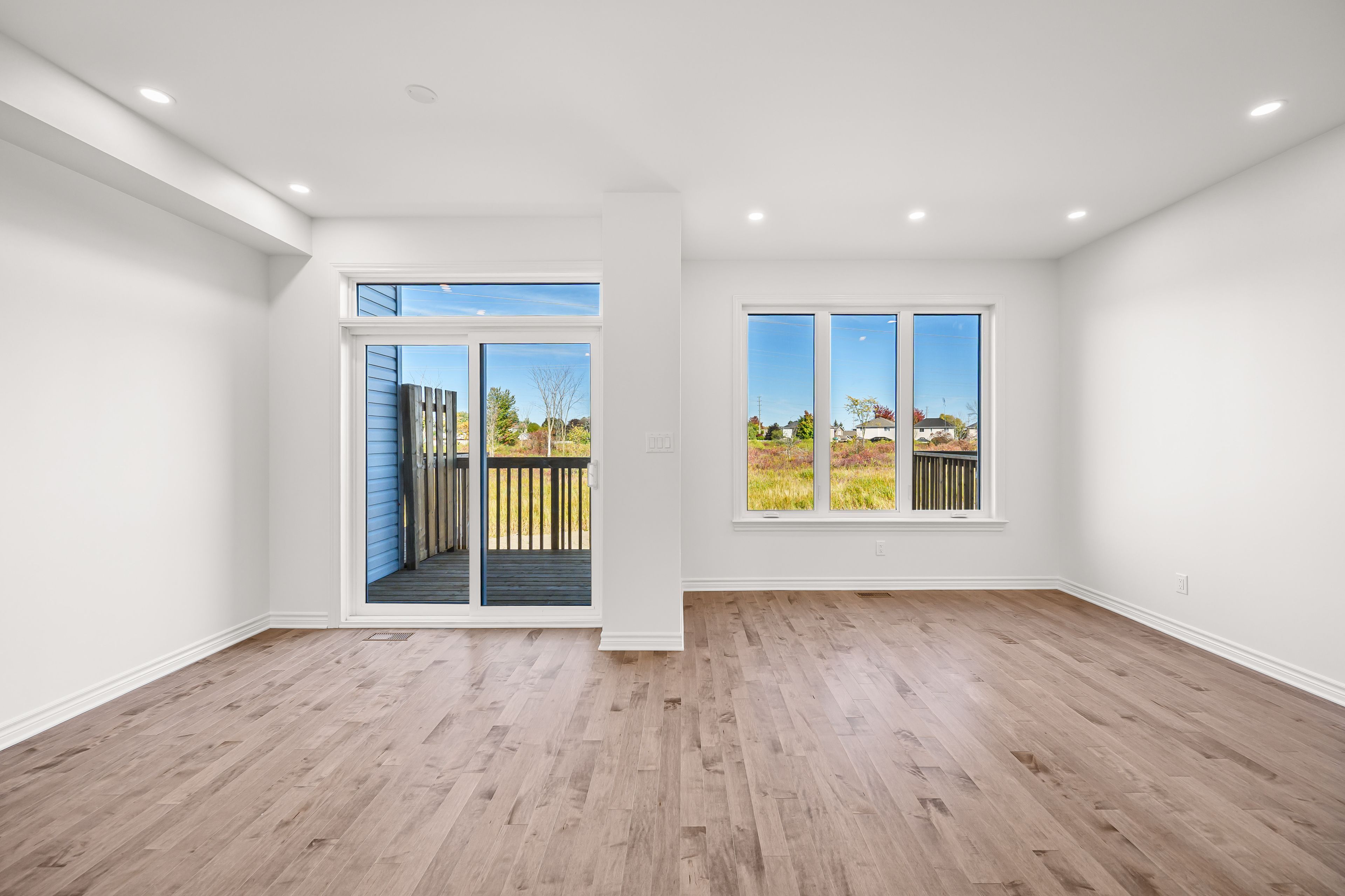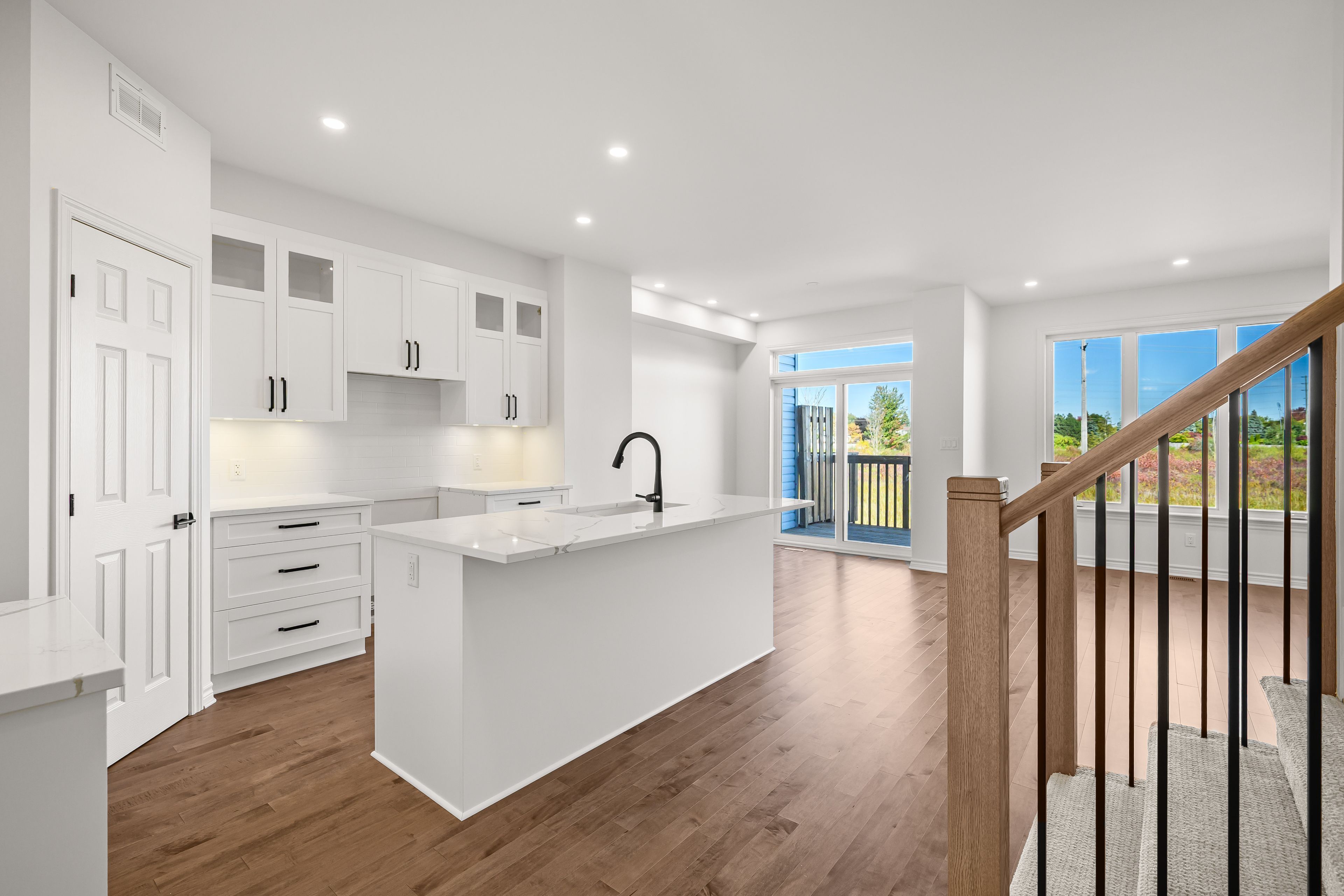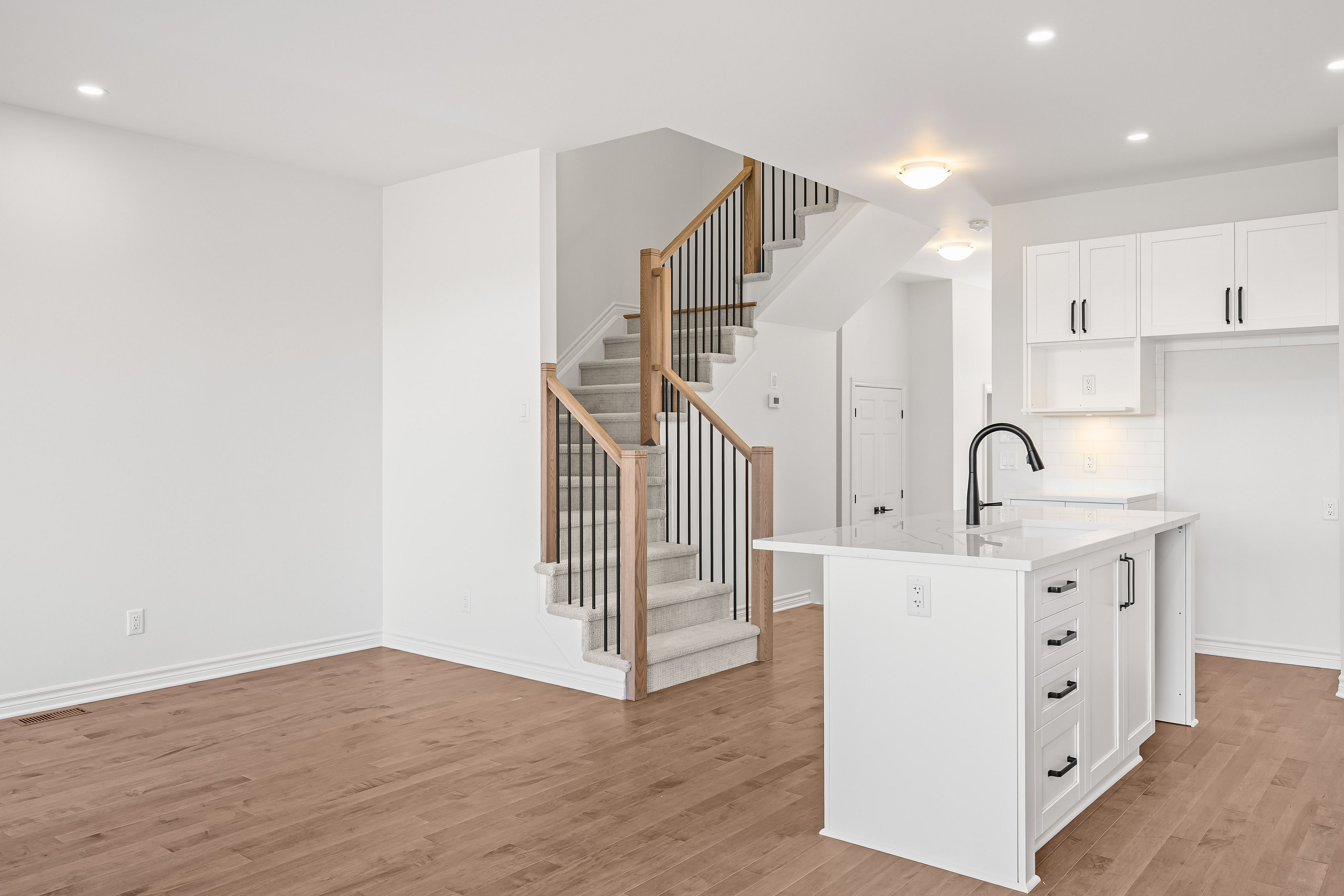 The abbey model offers 1,855 square feet of finished stylish living in kingstons west village community. The main floor showcases maple hardwood, a modern kitchen with quartz counters, white shaker cabinetry, an upgraded sink, and a spacious walk-in pantry. A cozy gas fireplace anchors the living area. Upstairs, the primary suite includes a luxurious 4-piece ensuite with a freestanding tub and a walk-in tile-and-glass shower. The home also features a finished walkout basement with a rough-in for a future bathroom, giving you plenty of extra living space and flexibility. Energy star certified for efficiency, this home is close to the rio can, cataraqui centre, new schools, and parks.