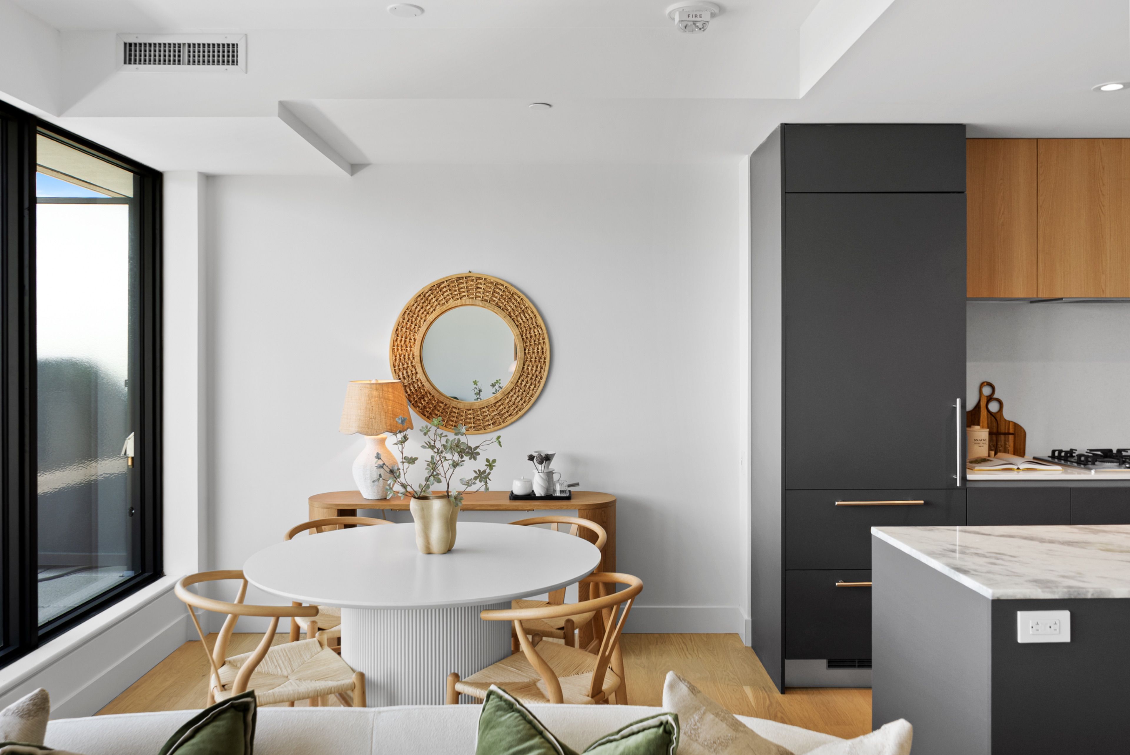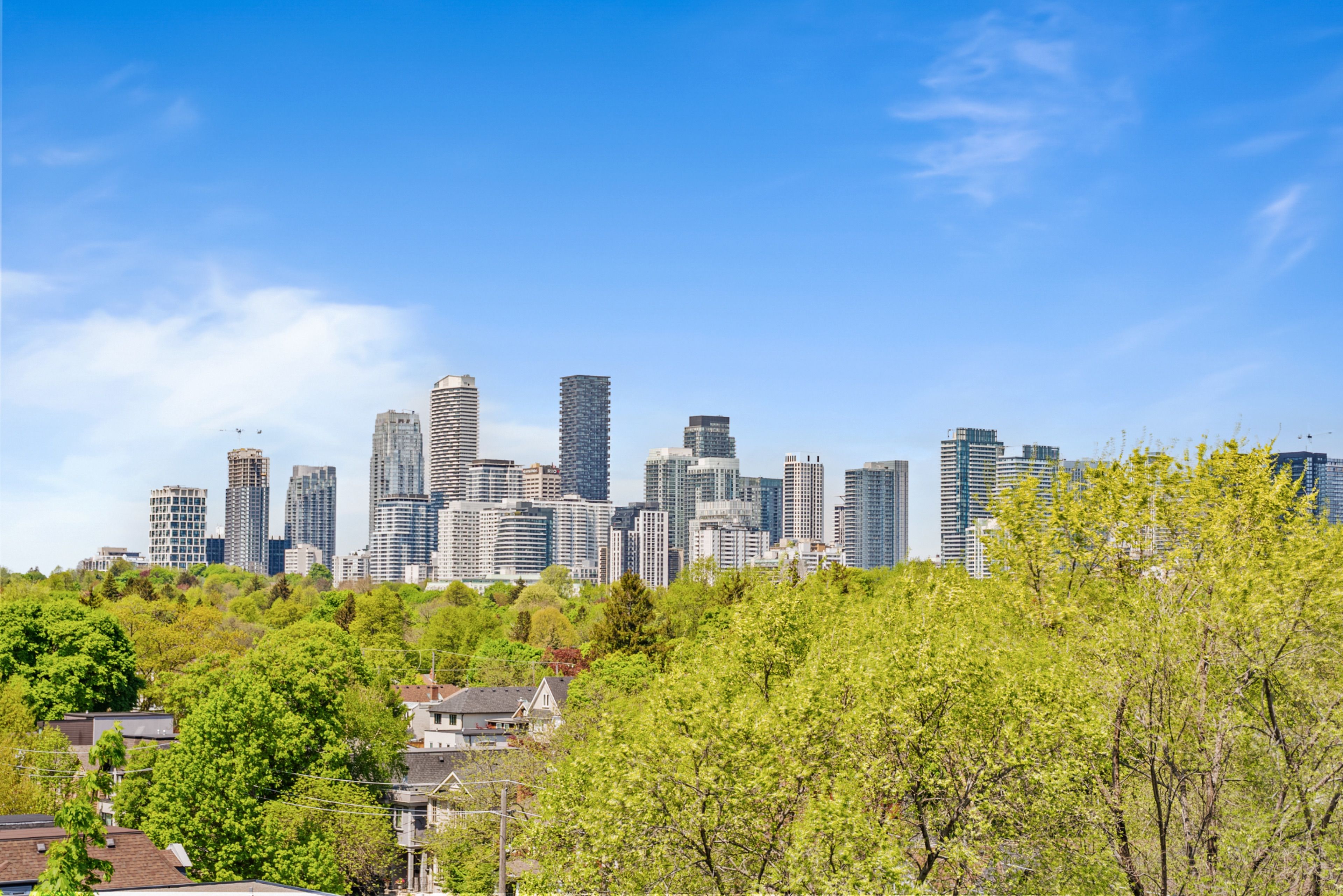 Enjoy the height of luxurious living at this boutique building in leaside. 1414 bayview is a testament to elevated design and functional living, centrally located in one of toronto's most popular neighbourhoods. This two-bedroom, two-bathroom timeless home seamlessly delivers an ideal urban experience, all nestled among the tree-top canopies of leaside. Spanning over 1,300 square feet, the suite offers high-end finishes throughout, with an elevated kitchen with premium miele appliances and an oversized centre island complete with caesarstone countertops. The adjoining open-concept dining room and living room are filled with natural light from a wall of west-facing windows with stunning skyline views to both the southwest and northwest. The enclosed 364 square foot elevated terrace offers space to gather with friends and family, or enjoy some tranquil moments with sweeping views. The primary suite comes with a large custom walk-in closet along with a private 4 piece spa-like ensuite with a floating double sinks, caesarstone counters and a mosaic-tiled wall and walk-in rainfall shower. The second bedroom is equally luxurious with its own double closet with organizers, and adjacent four-piece bath. Ensuite laundry, a parking space and locker round out the many offerings in this boutique residence. Steps from the well-loved bayview strip and the endless ravine networks, along with proximity to major transit arteries, this home is not to be missed.