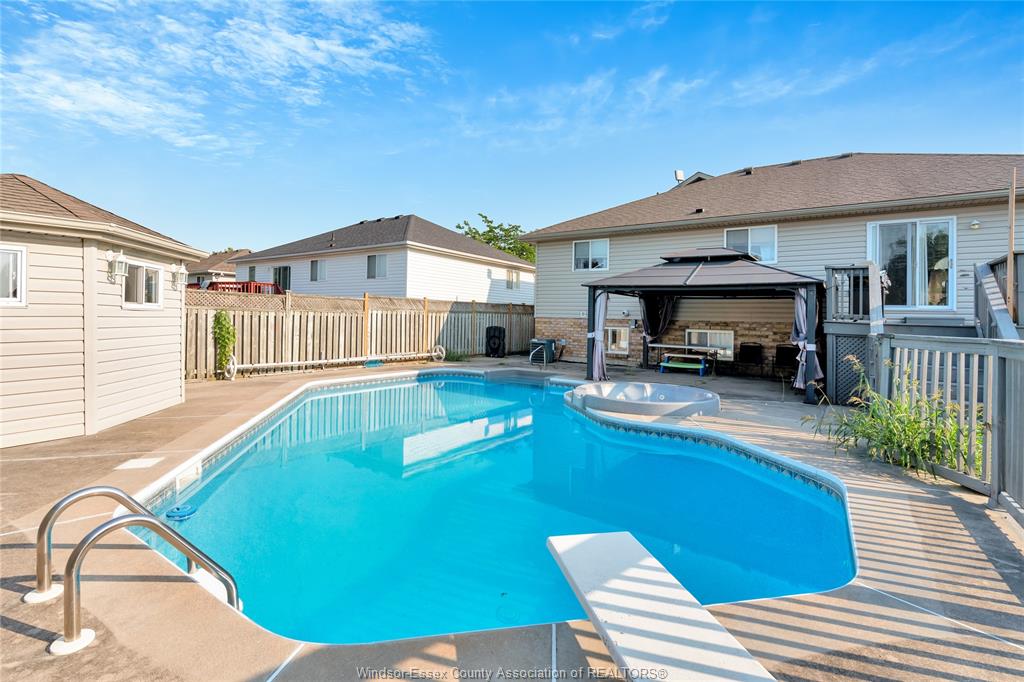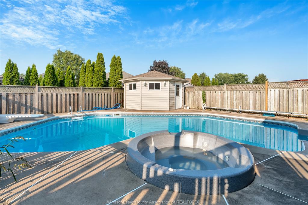 • Backyard features an in-ground pool and hot tub, great for relaxing.