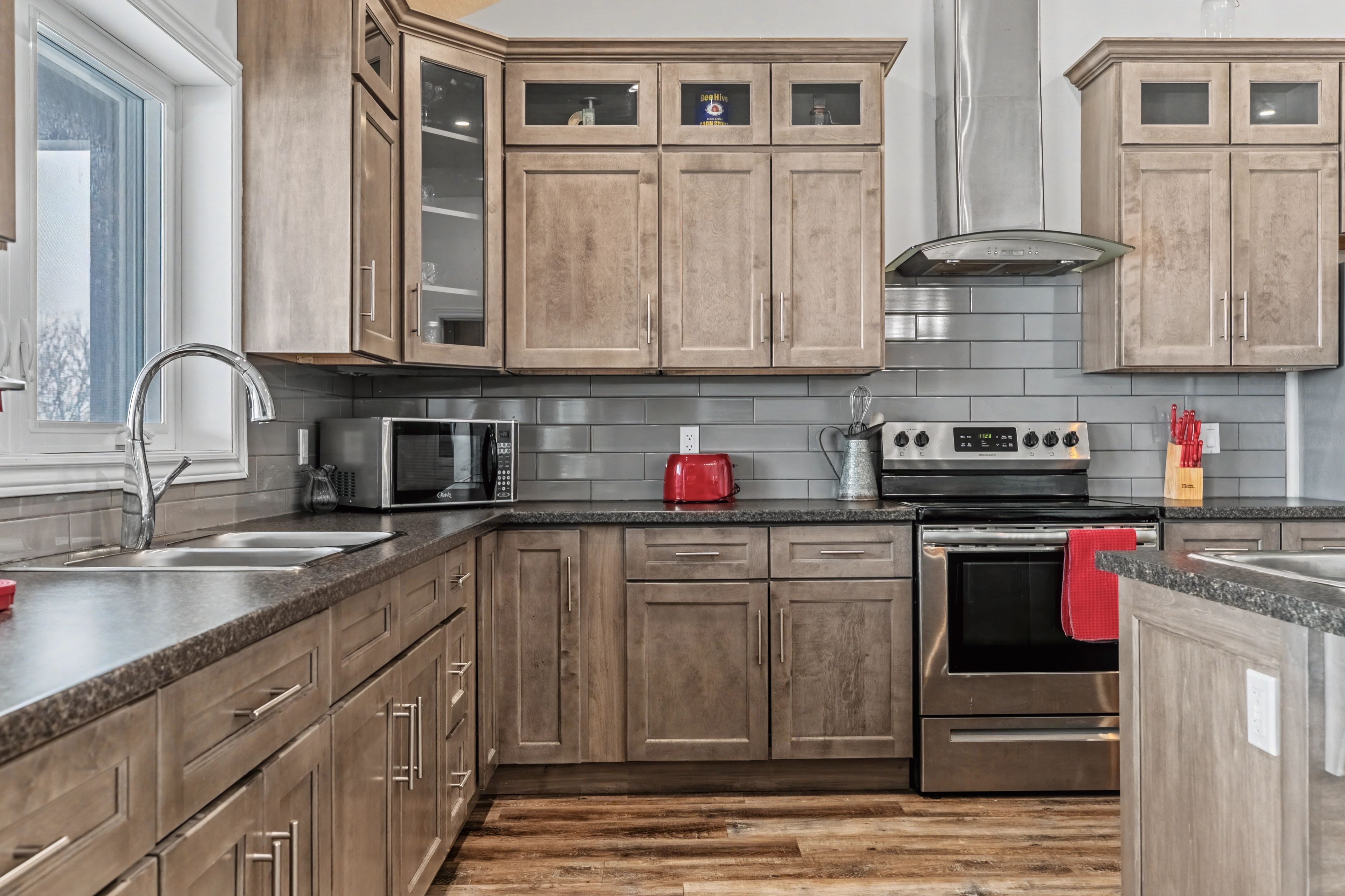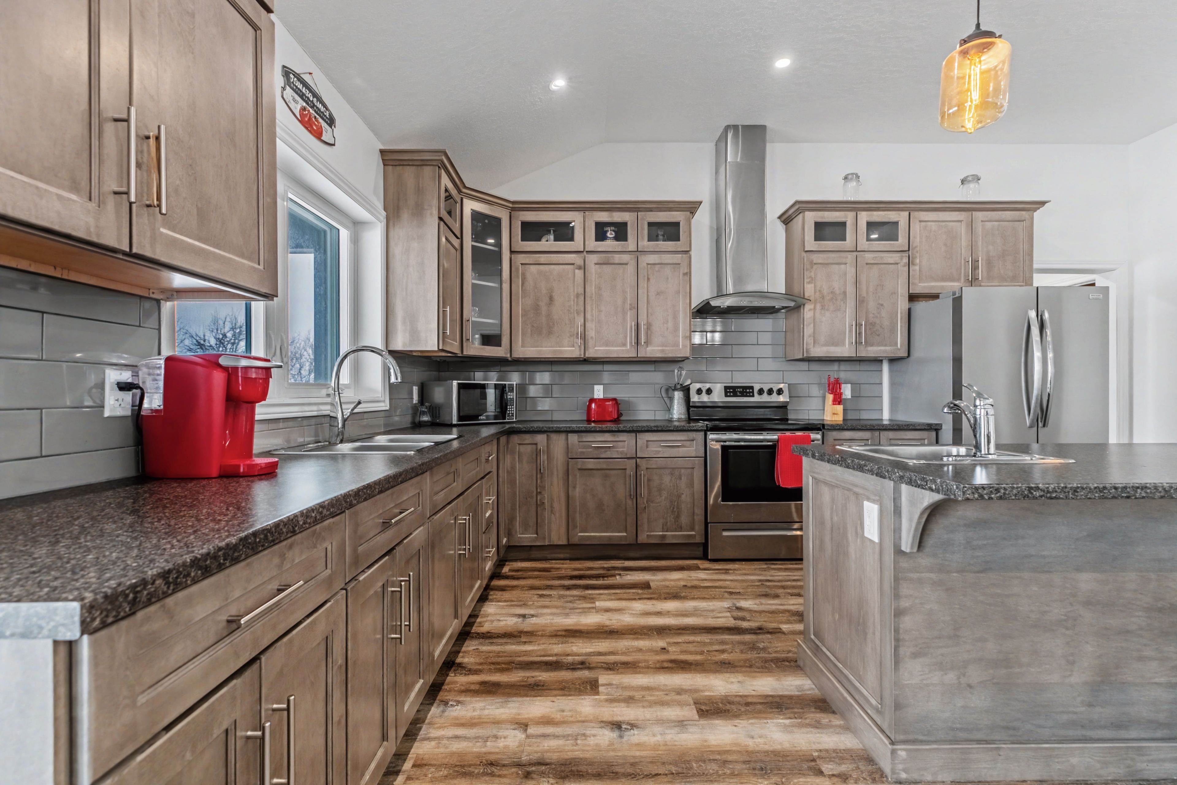 • Radiant in-floor heating ensures warmth and comfort throughout the home.