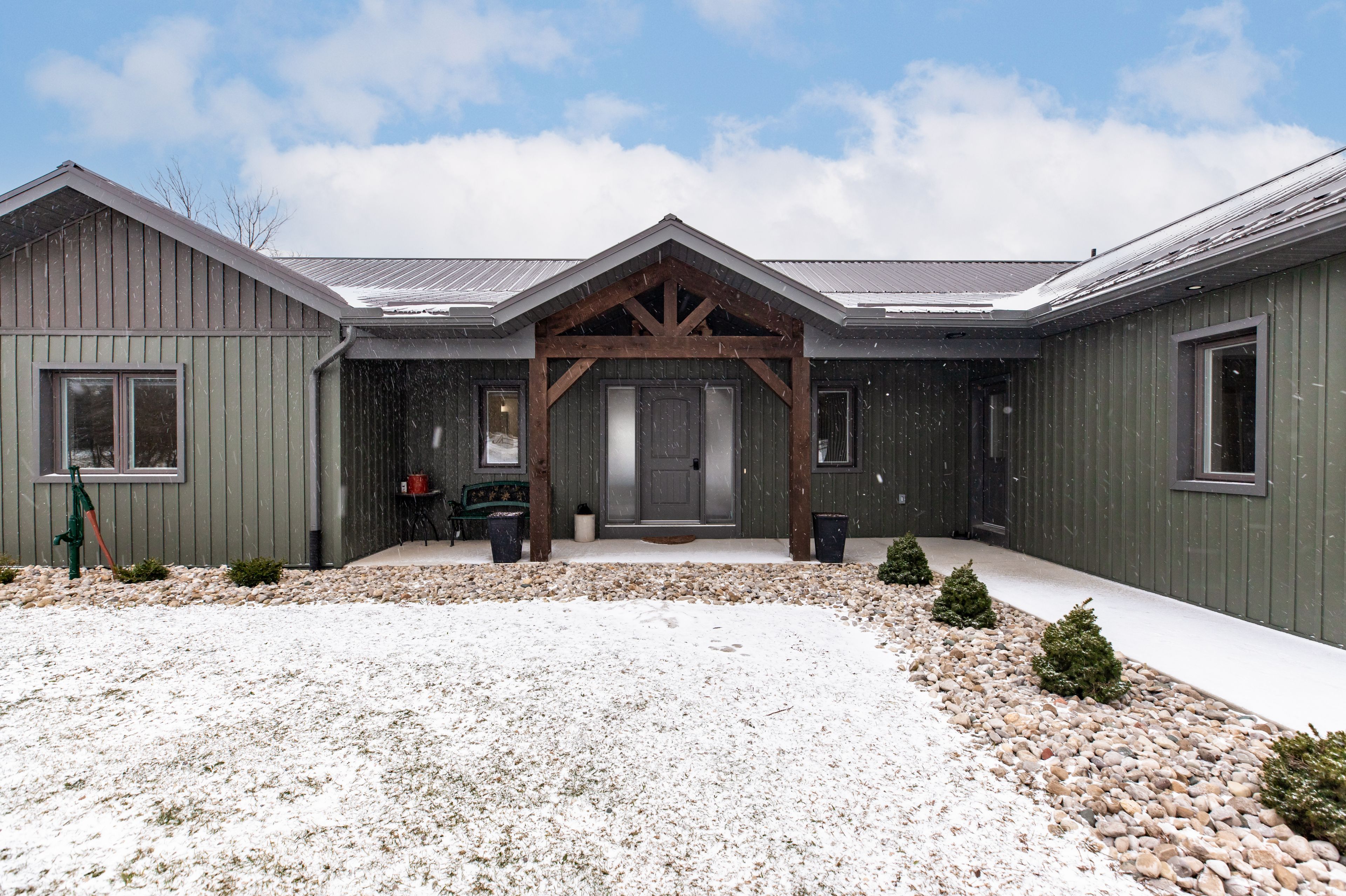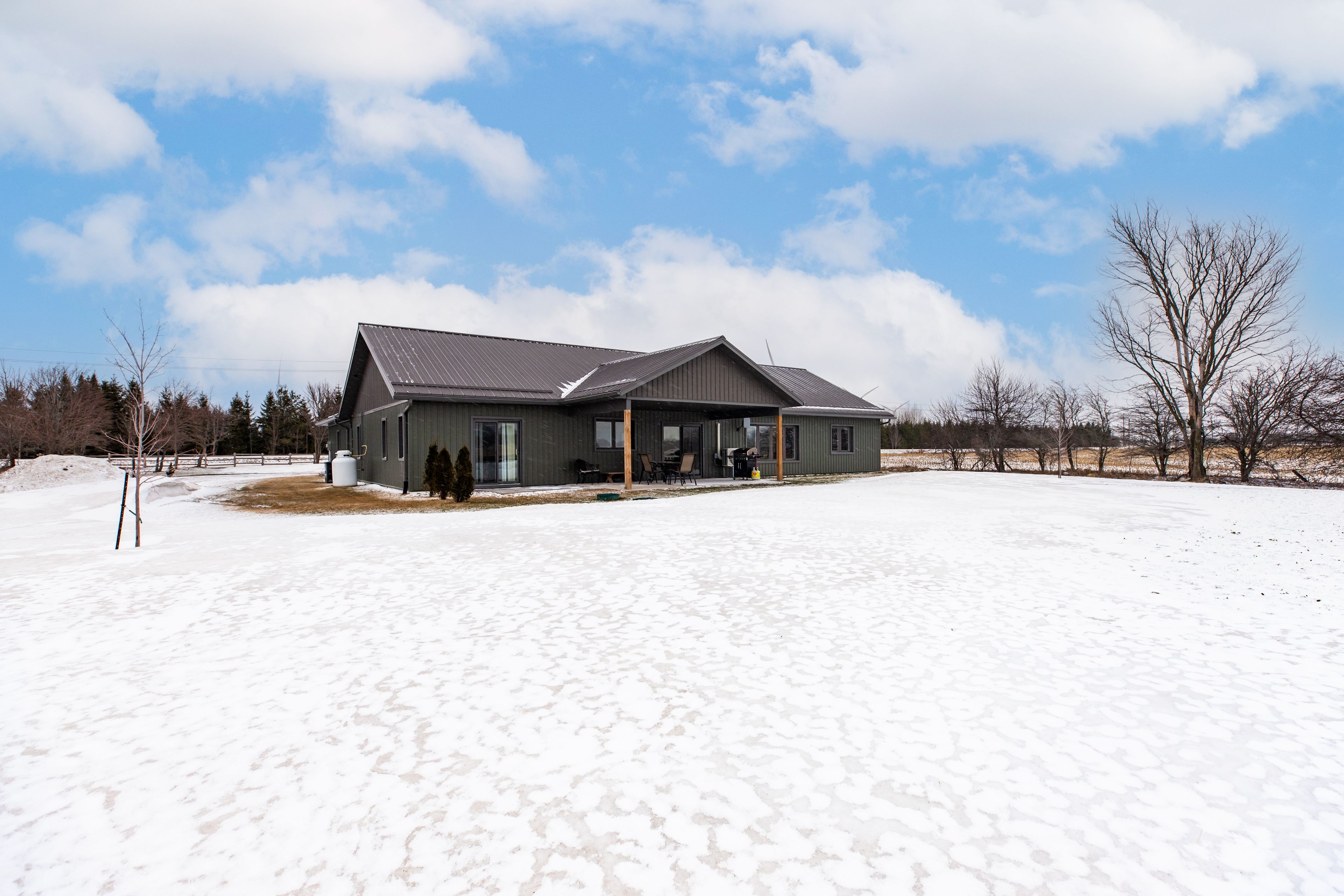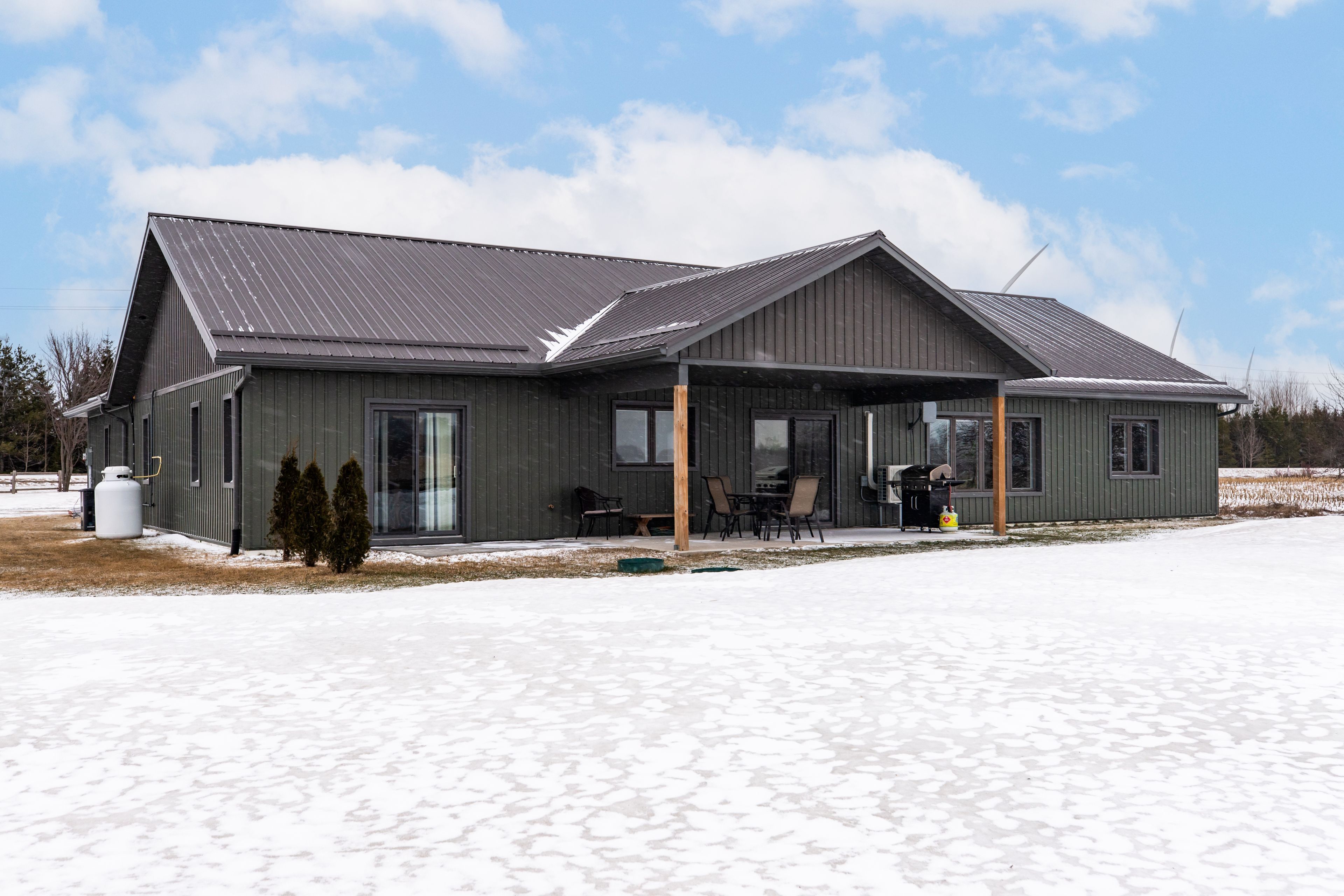Built in 2022, this exceptional icf bungalow sits on an acre just five minutes from the gates of bruce power. Constructed with icf right to the roofline for superior durability, energy efficiency, and quiet comfort, the home welcomes you with a grand entrance, soaring ceilings, and a spacious, thoughtfully designed layout. Offering 4 bedrooms, 2 full bathrooms, and 1 half bath, the interior is enhanced with elegant custom built-ins surrounding the living room fireplace and a stylish built-in desk in the open-concept kitchen and dining area. Matching built-in cabinetry continues through the primary walk-in closet and the kitchen pantry, while additional built-ins in the generous mudroom and laundry area add both style and everyday practicality. Radiant in-floor heating runs throughout the home, complemented by separately controlled in-floor heat in the double car garage, along with on-demand hot water and a whole-home standby generator for effortless comfort and peace of mind. Covered front and rear porches provide inviting outdoor living spaces, completing this refined, modern home in an unbeatable location.