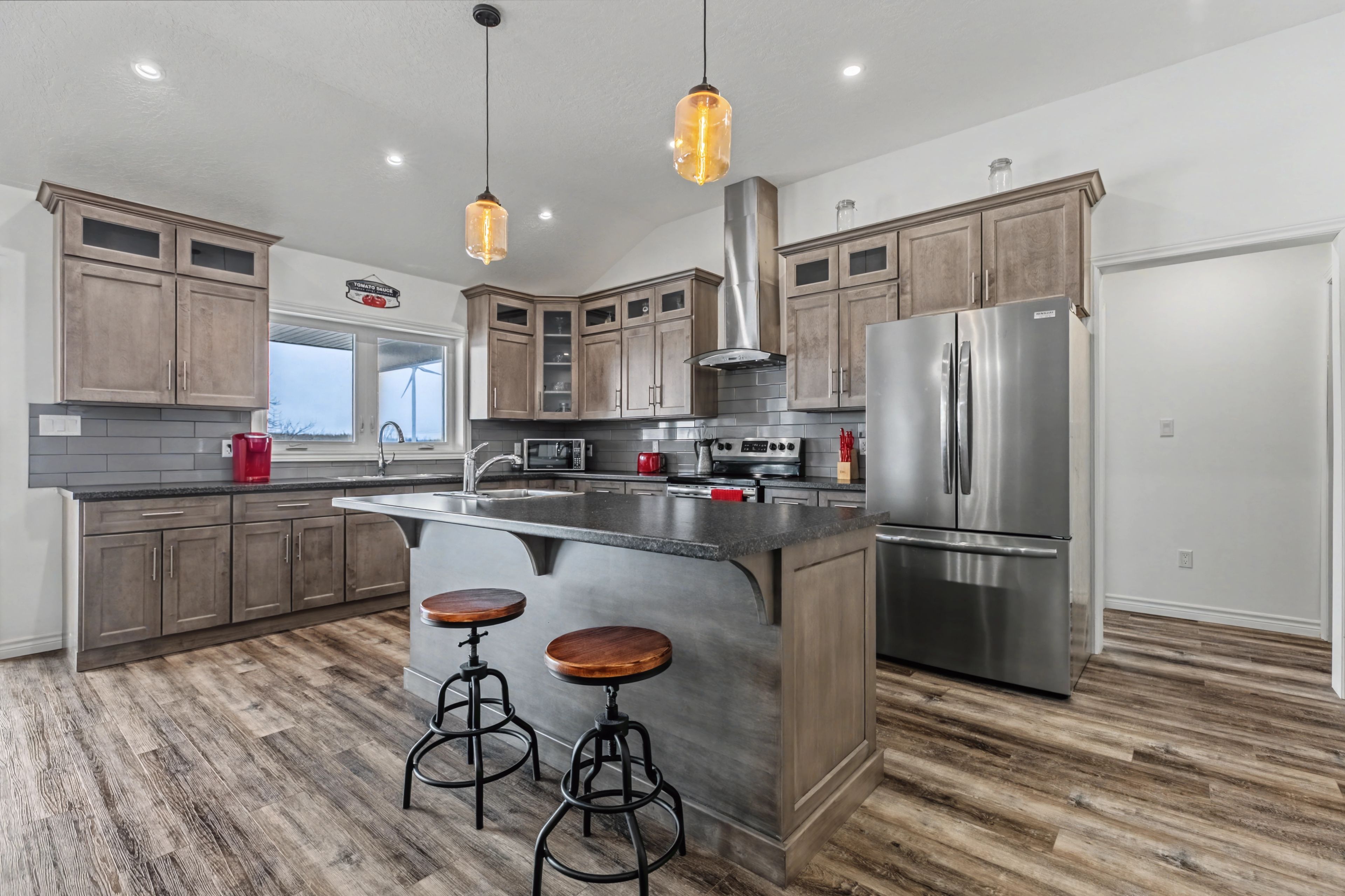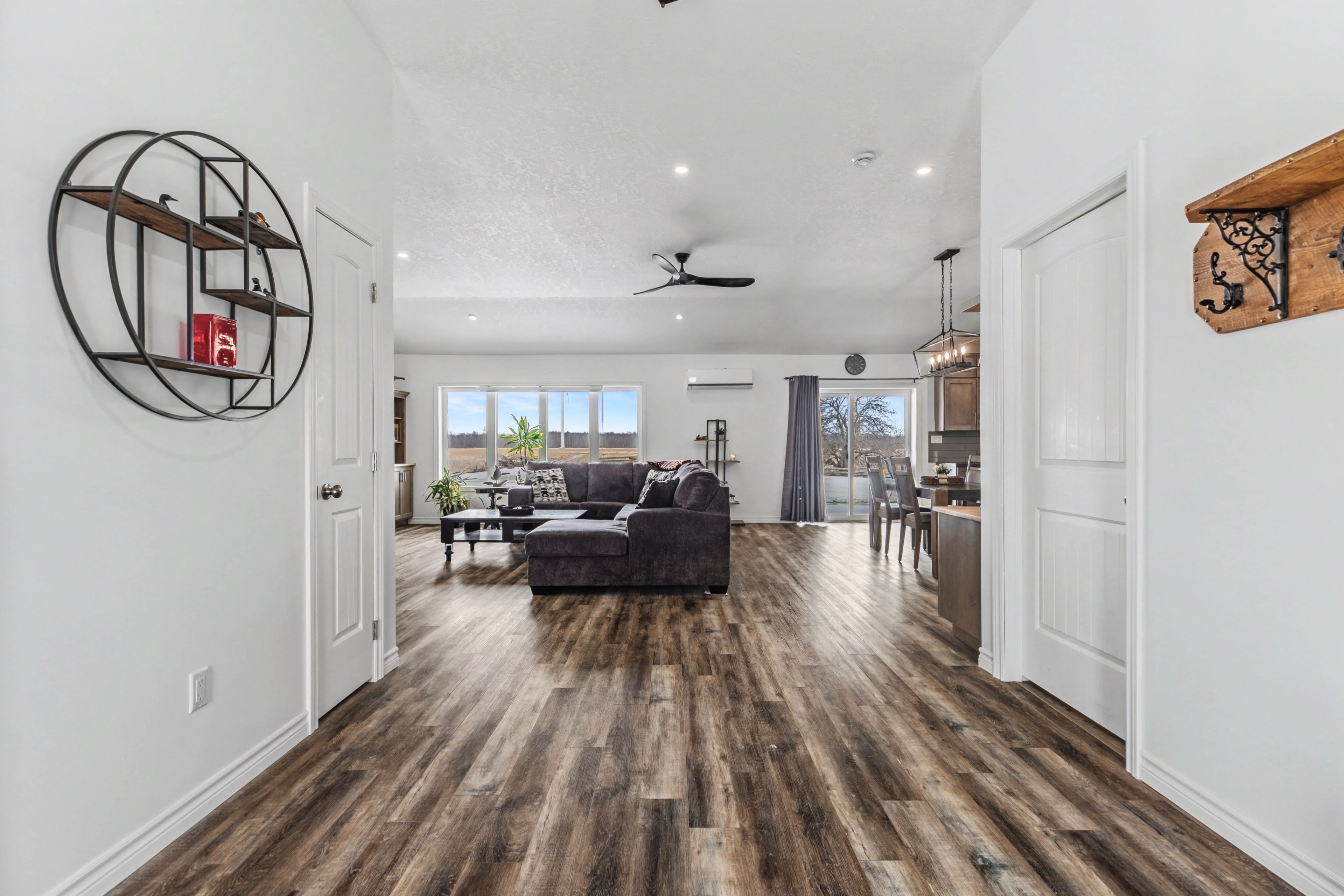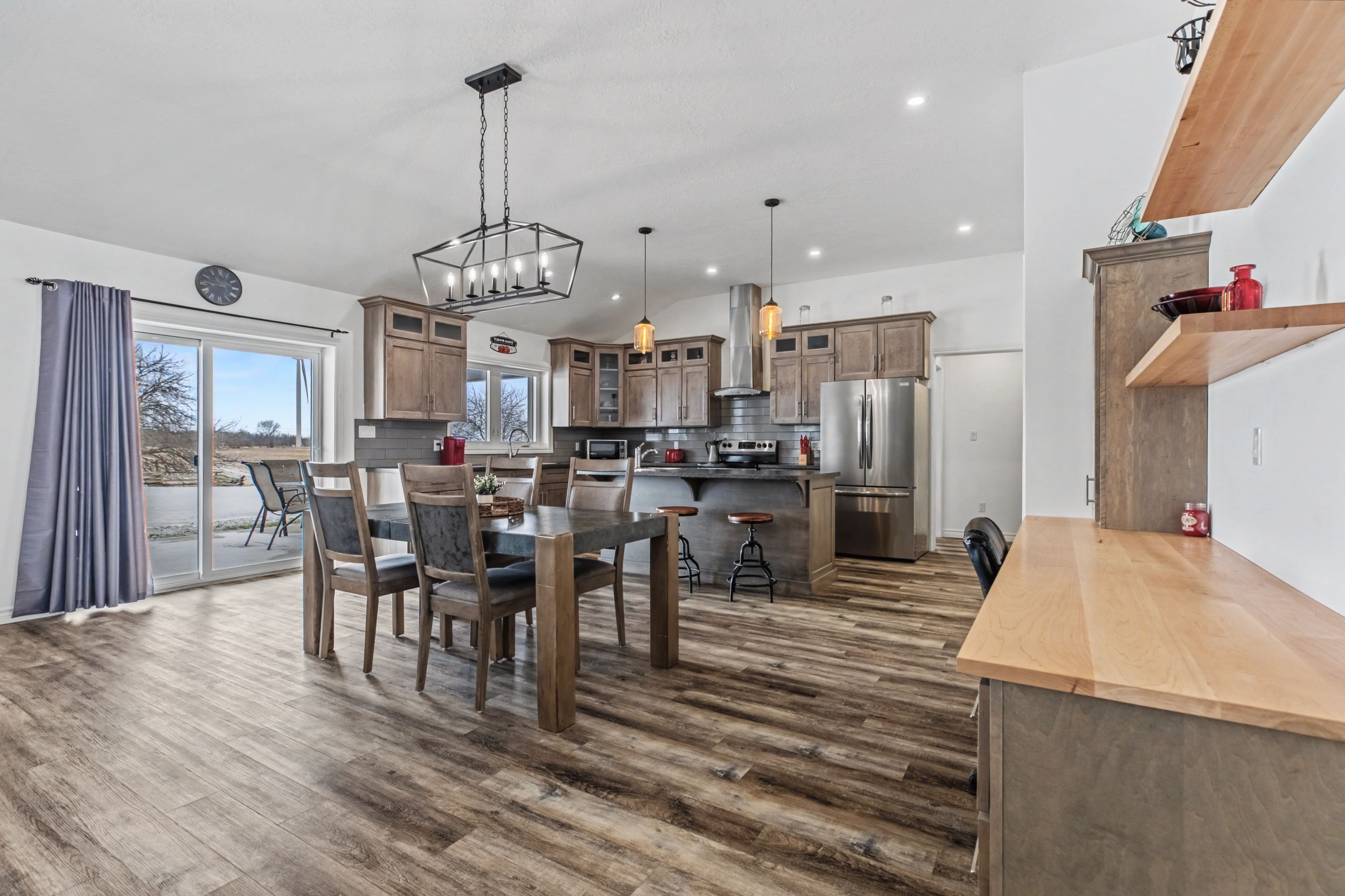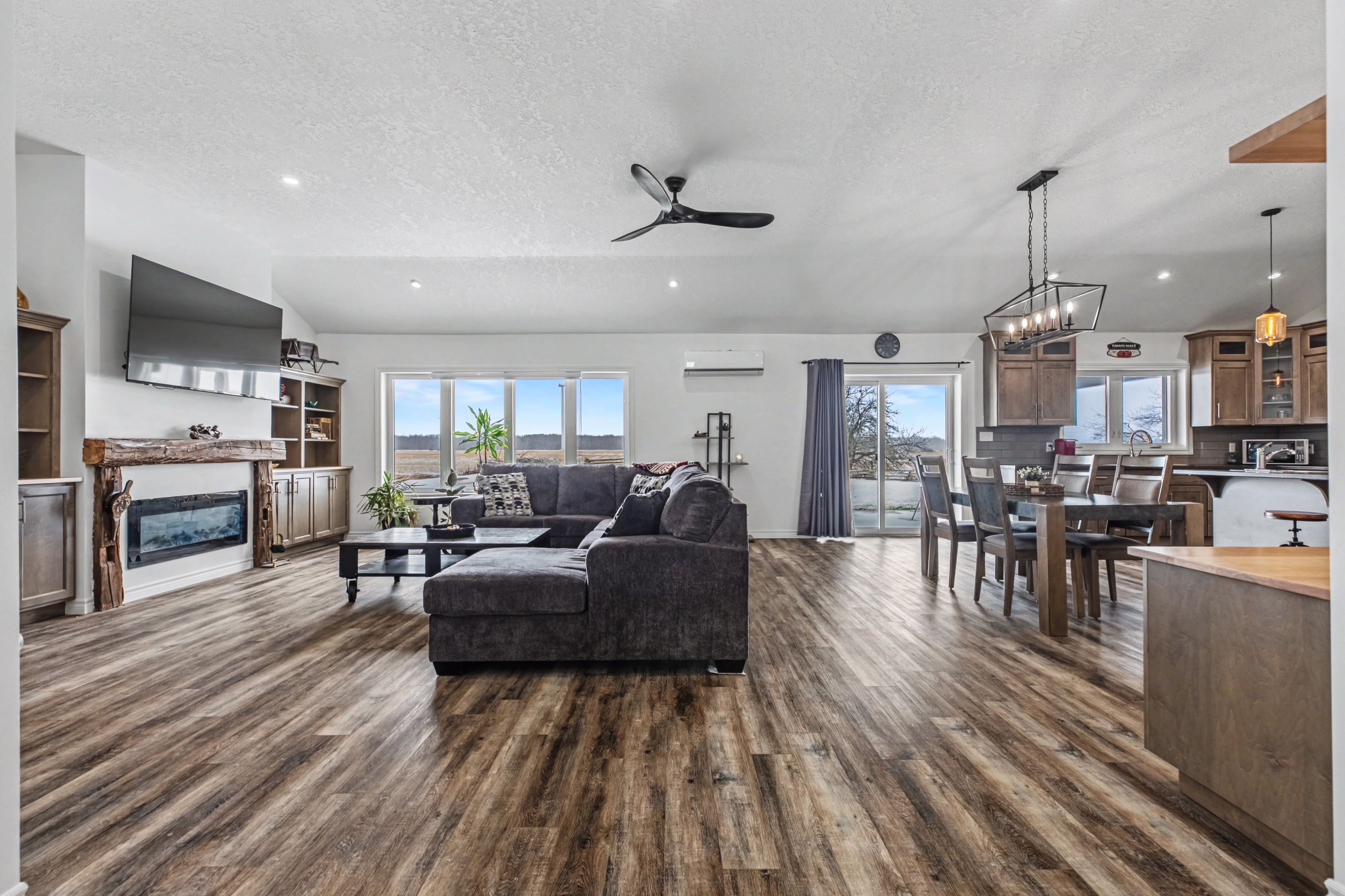 Built in 2022, this exceptional icf bungalow sits on an acre just five minutes from the gates of bruce power. Constructed with icf right to the roofline for superior durability, energy efficiency, and quiet comfort, the home welcomes you with a grand entrance, soaring ceilings, and a spacious, thoughtfully designed layout. Offering 4 bedrooms, 2 full bathrooms, and 1 half bath, the interior is enhanced with elegant custom built-ins surrounding the living room fireplace and a stylish built-in desk in the open-concept kitchen and dining area. Matching built-in cabinetry continues through the primary walk-in closet and the kitchen pantry, while additional built-ins in the generous mudroom and laundry area add both style and everyday practicality. Radiant in-floor heating runs throughout the home, complemented by separately controlled in-floor heat in the double car garage, along with on-demand hot water and a whole-home standby generator for effortless comfort and peace of mind. Covered front and rear porches provide inviting outdoor living spaces, completing this refined, modern home in an unbeatable location.