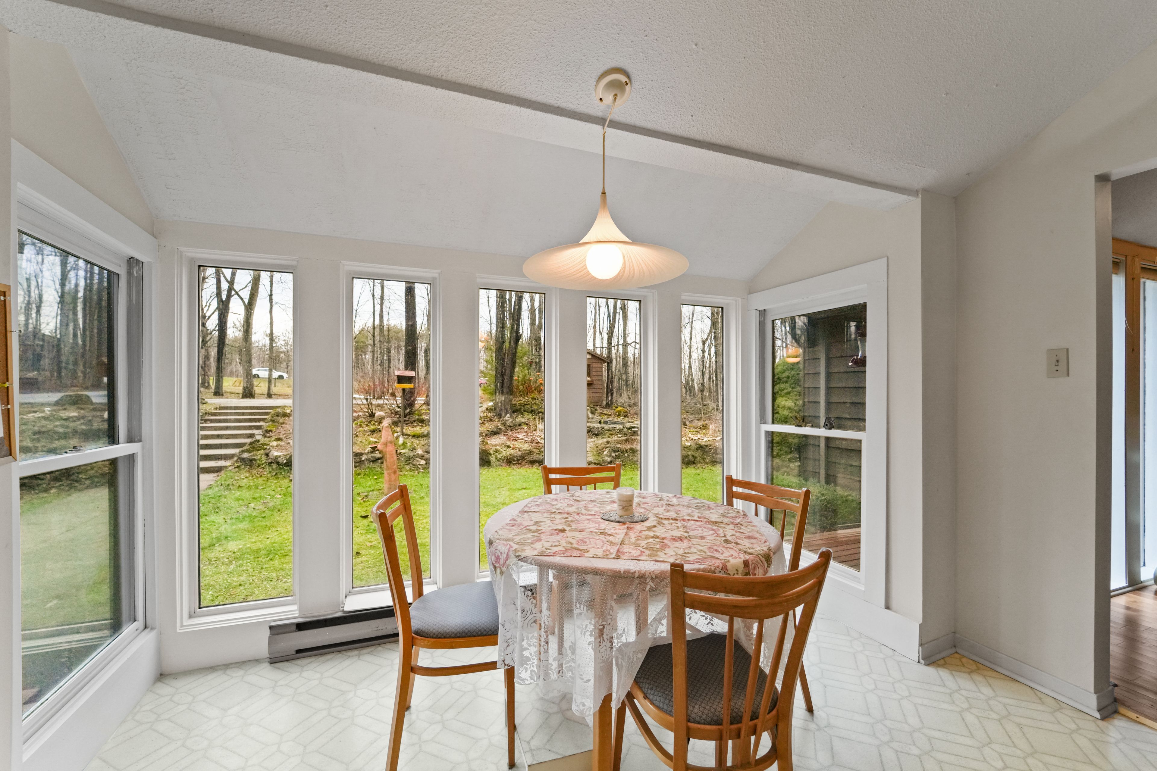Nestled within the stunning niagara escarpment, just a stone's throw from devils glen ski club, "in the woods" offers a delightful 3-bedroom, 2-bathroom residence that embraces both nature and creativity. Set on over 5 acres of lush, wooded land, this property provides a serene escape where you can truly relax. Inside, you'll discover a warm and inviting home filled with unique charm. The abundance of natural light makes every room feel open and welcoming. A key feature is the airy artist's studio, which is an extra space for the homeowner to get creative away from the mix of the house. With its separate entrance, this area could also serve perfectly as a home office. Next to the house, there's a versatile 18 x 30 workshop with power for tackling diy projects, storage and more. "in the woods" feels like a private sanctuary, with the peaceful escarpment as your neighbour. The home is in roughly the middle of the lot so plenty of trees and land on the property at the back and sides!