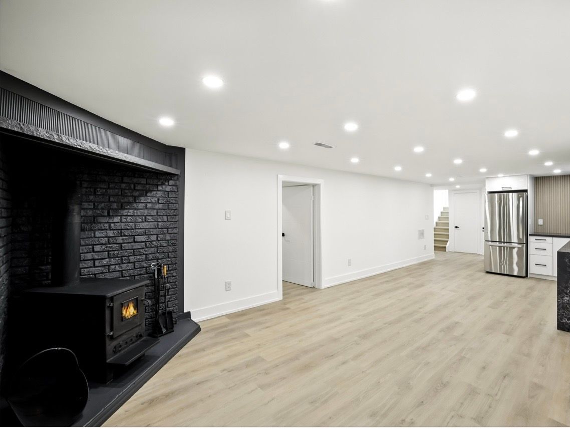 • Spacious basement featuring an inviting living room with a fireplace.