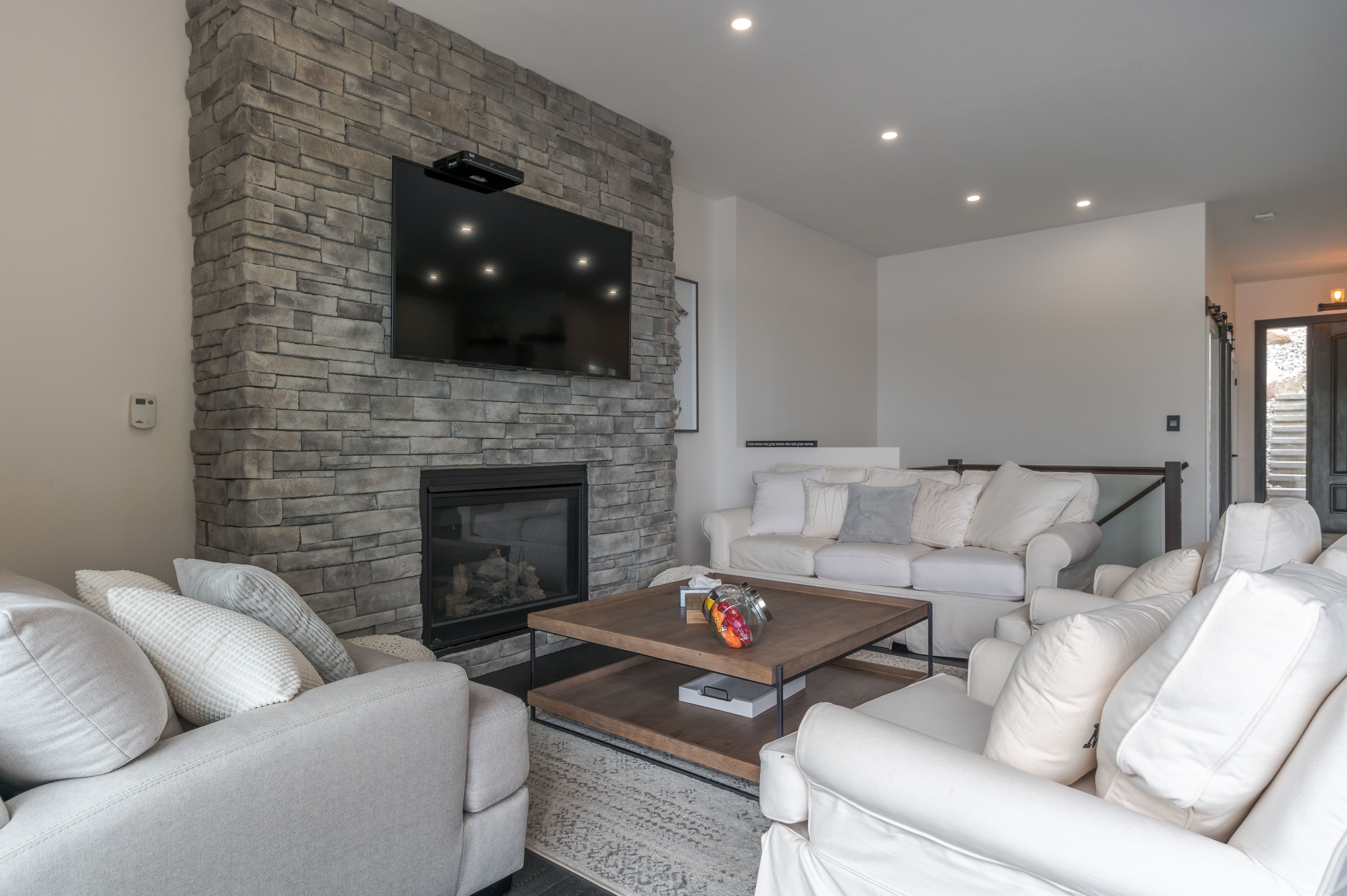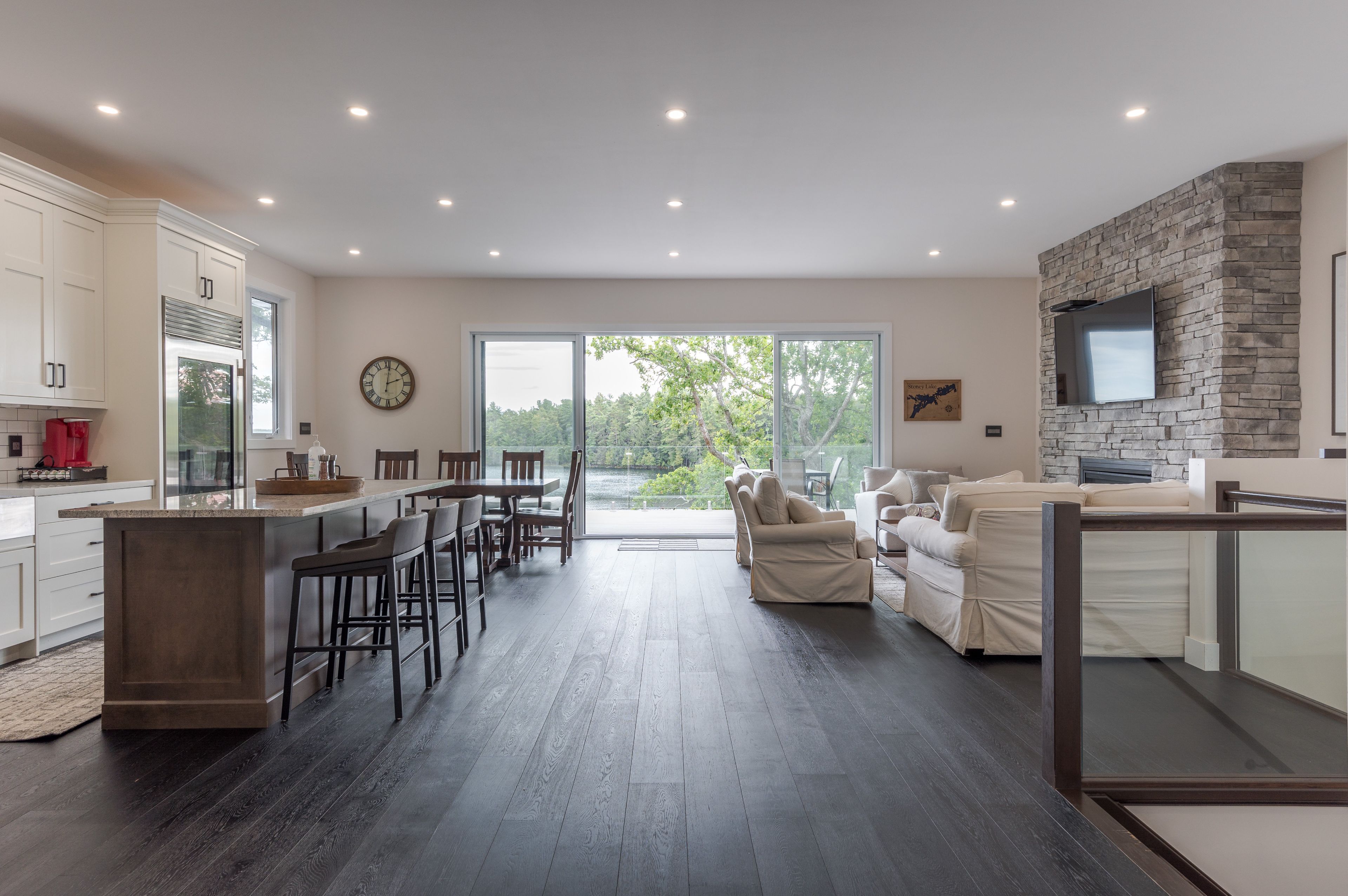 Gorgeous, newly renovated, year-round turnkey multi-level property on prestigious stoney lake with spectacular views. Upper level: open concept, incl. Bedroom, office, 3-pc bath, high-end kitchen with subzero wolf & miele appliances & sitting area with a propane fireplace. 16-ft patio doors to top deck with composite azek decking & frameless glass railing for un-obstructed views. 2nd level has 4 bedrooms including primary suite with a 3-pc ensuite, rain shower, heated floors and private walkout patio with a bay view. 2nd floor also has 3-pc bath with rain shower, body sprays, shower bench, double sinks, heated floors, heated towel bar, laundry, remaining 3 bedrooms and craft engineered white oak floor throughout. 3rd level: rec room & game room, 12-ft ceilings and another 16-foot patio door. 4th level: workout room, stamped concrete floors, access to screened-in porch & stairs to docks. 14' clean, deep water for swimming.