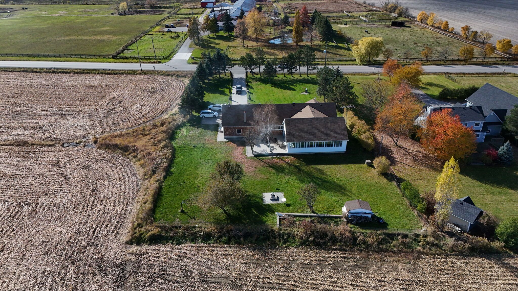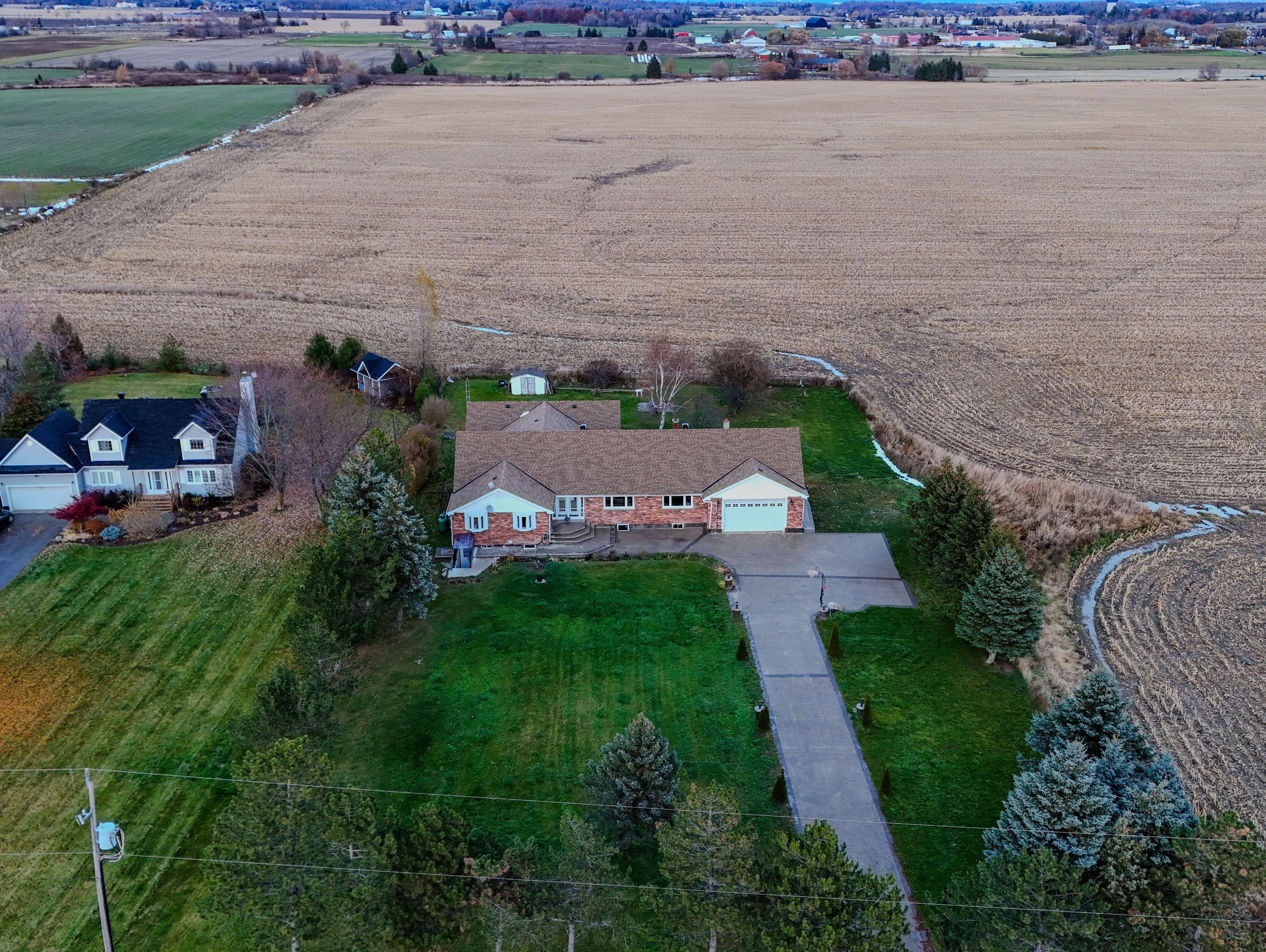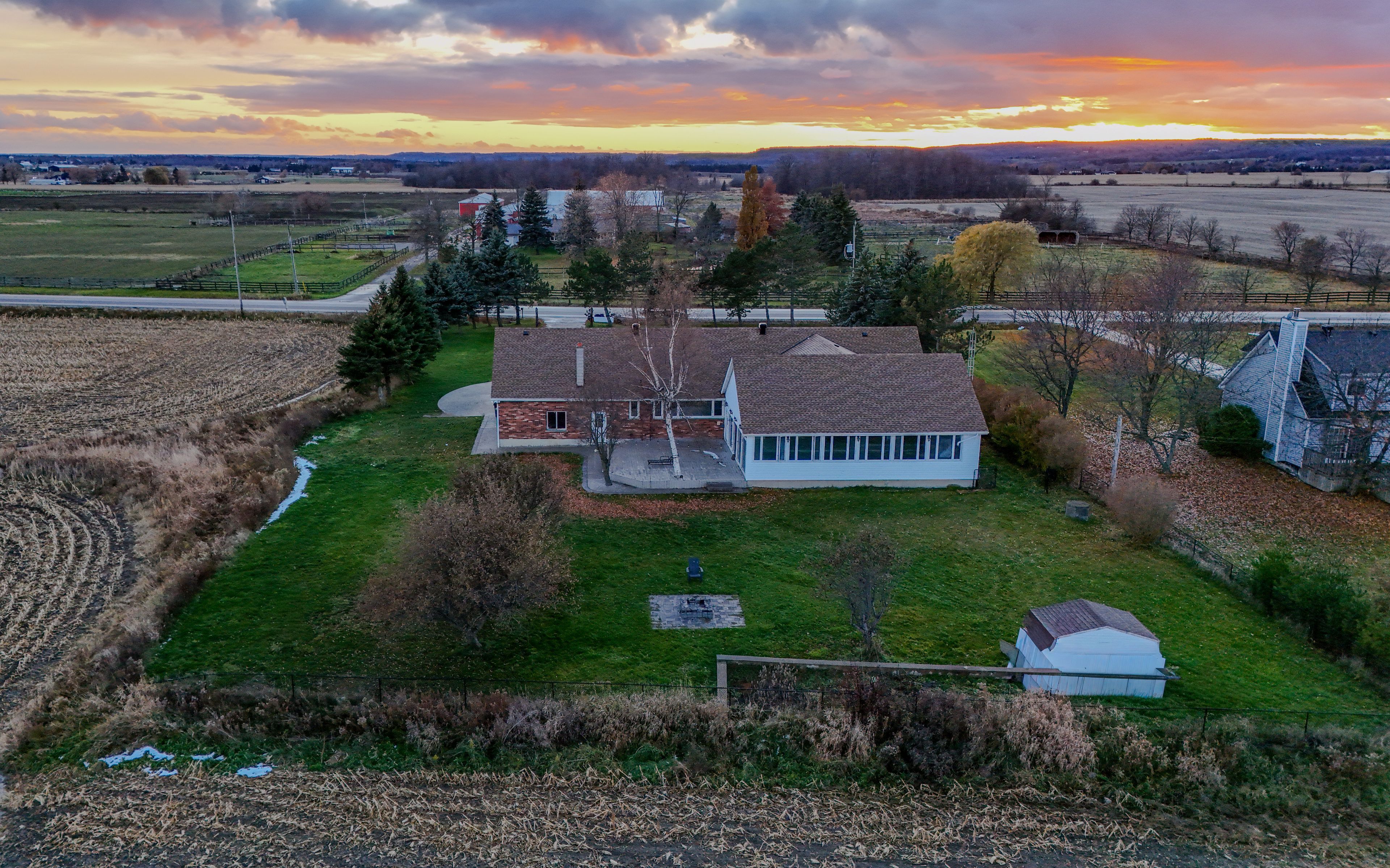 • Updated all-brick bungalow on an acre with scenic farmland views.