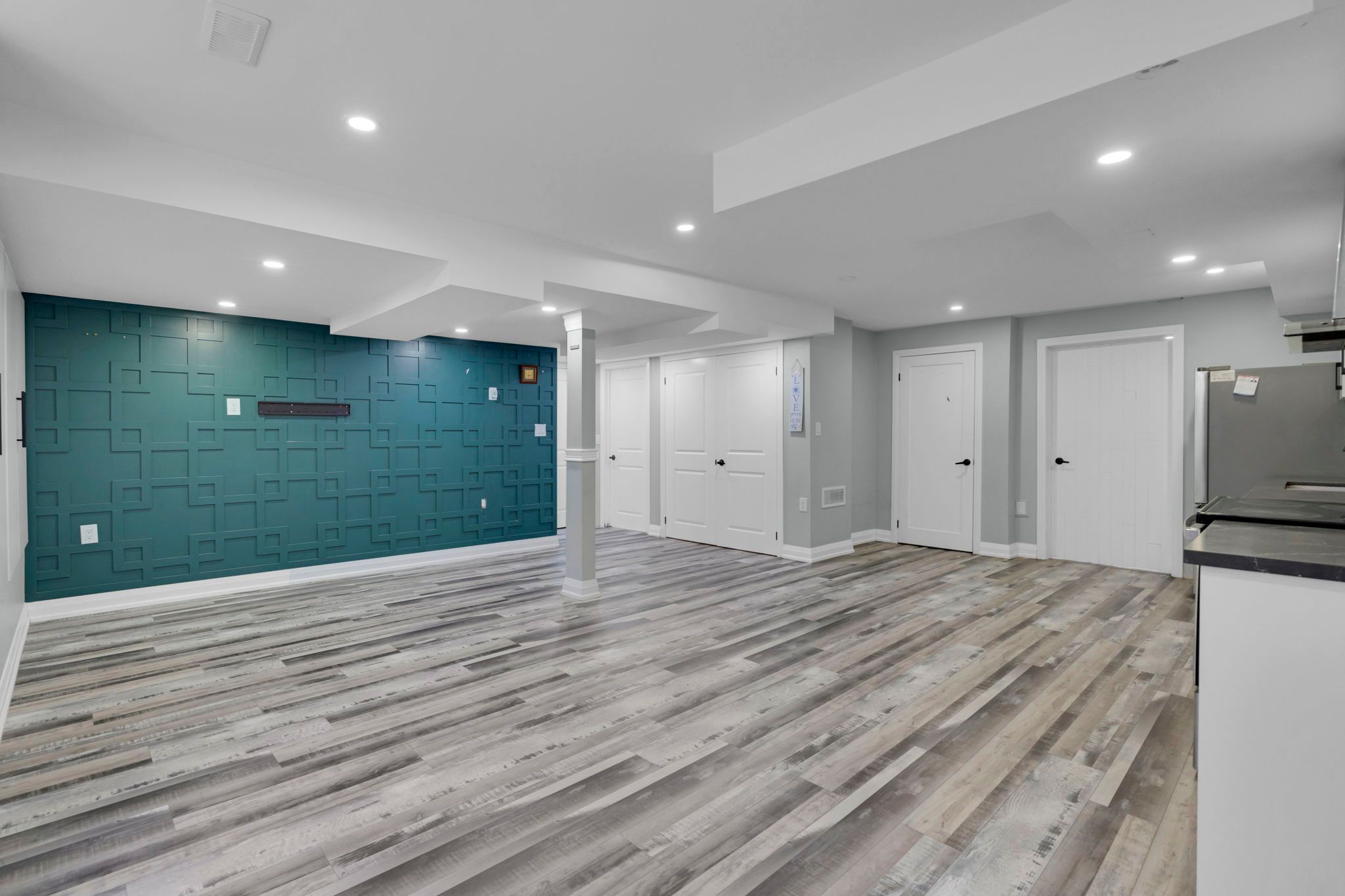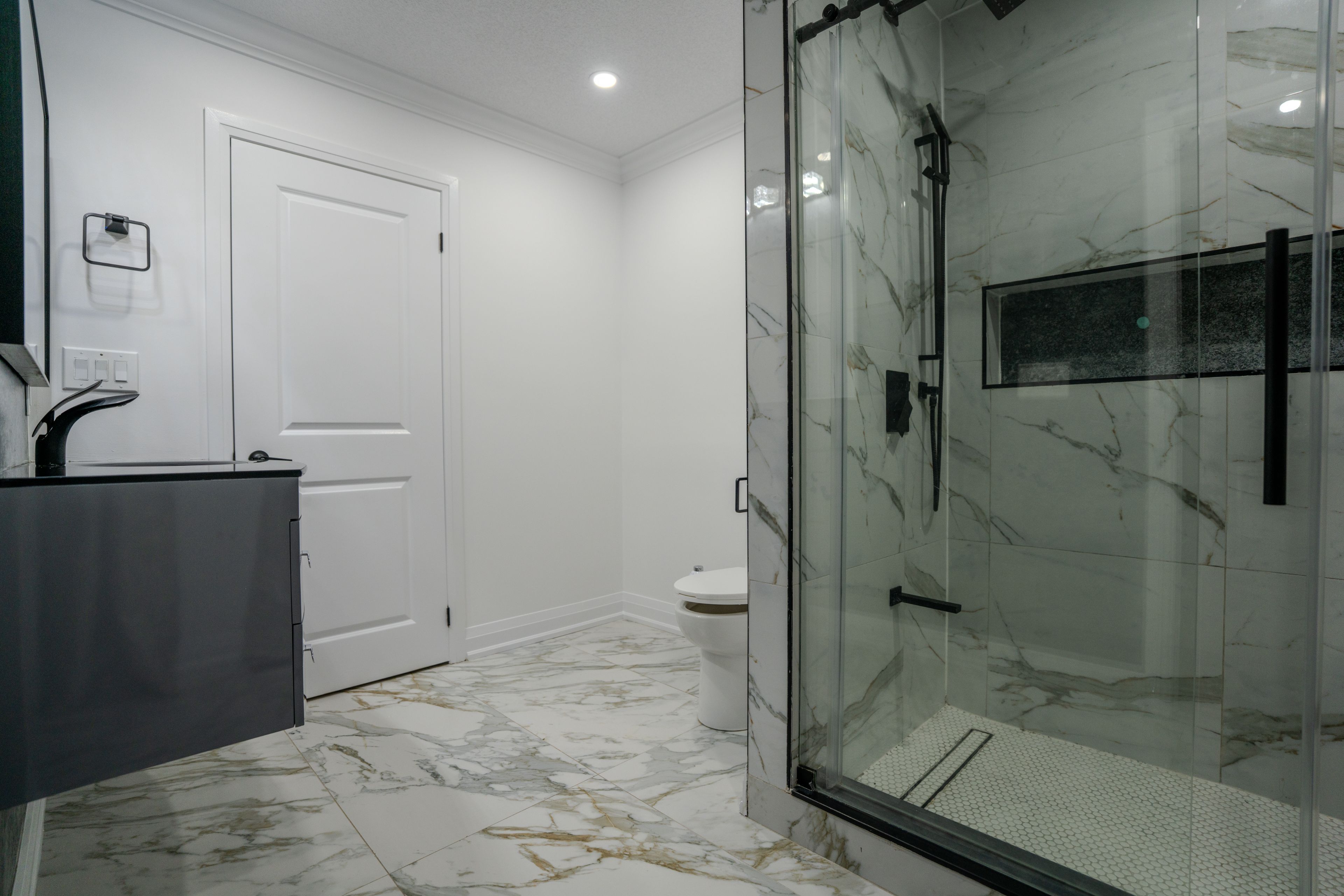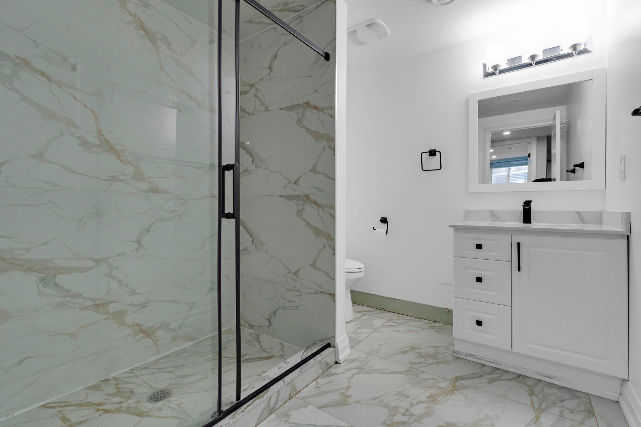 • Elegant main level with three large bedrooms and luxurious bath.