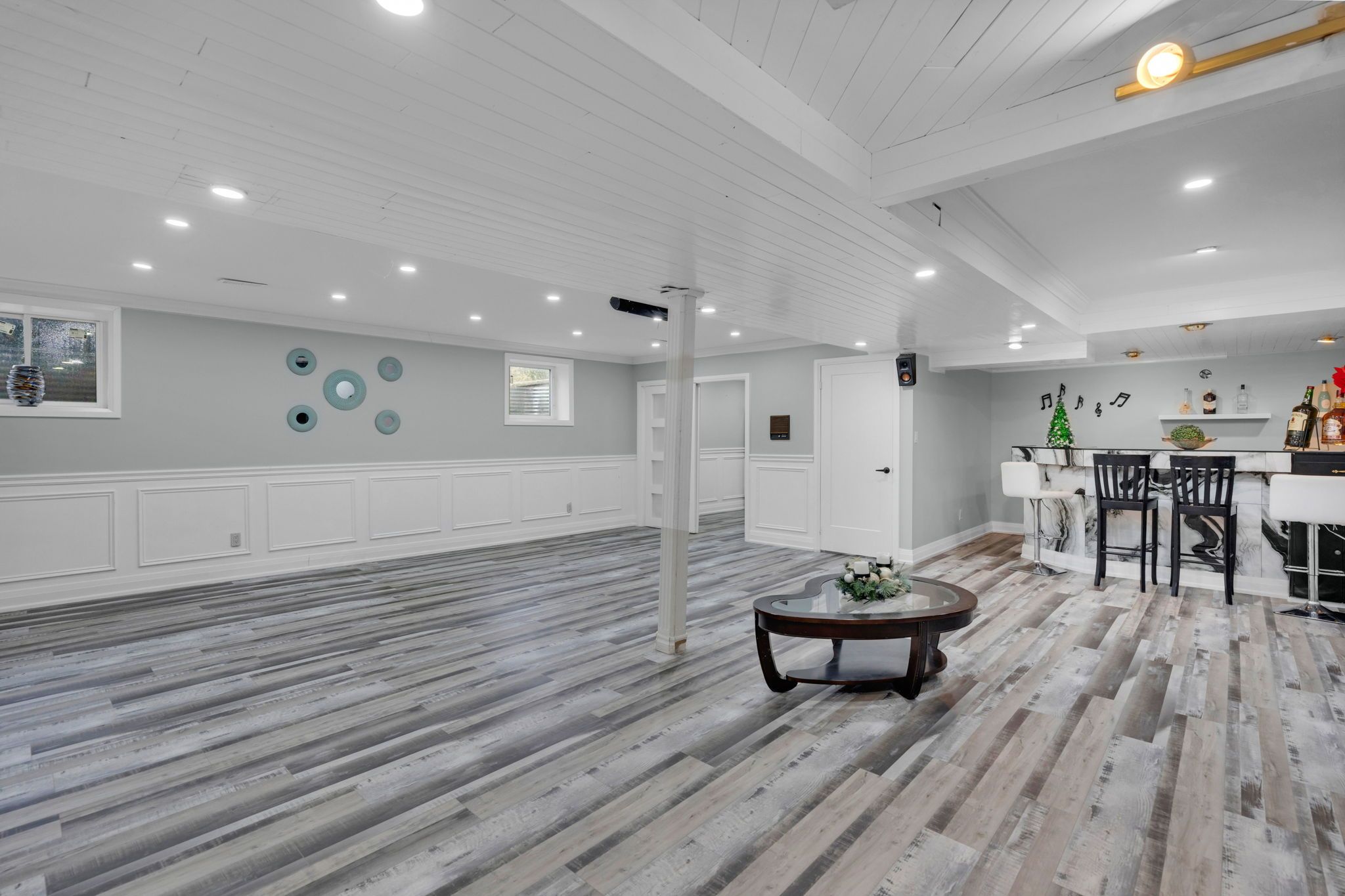 • Lower level features home theater, bar, sauna, and additional living space.