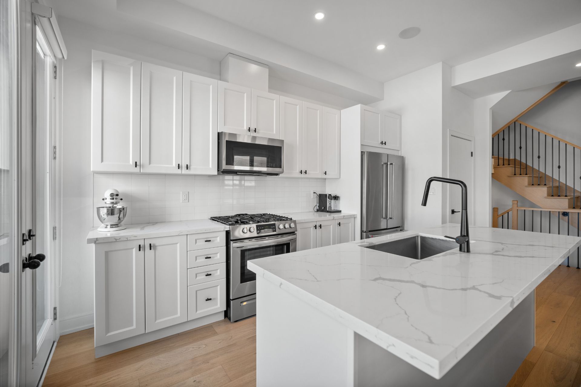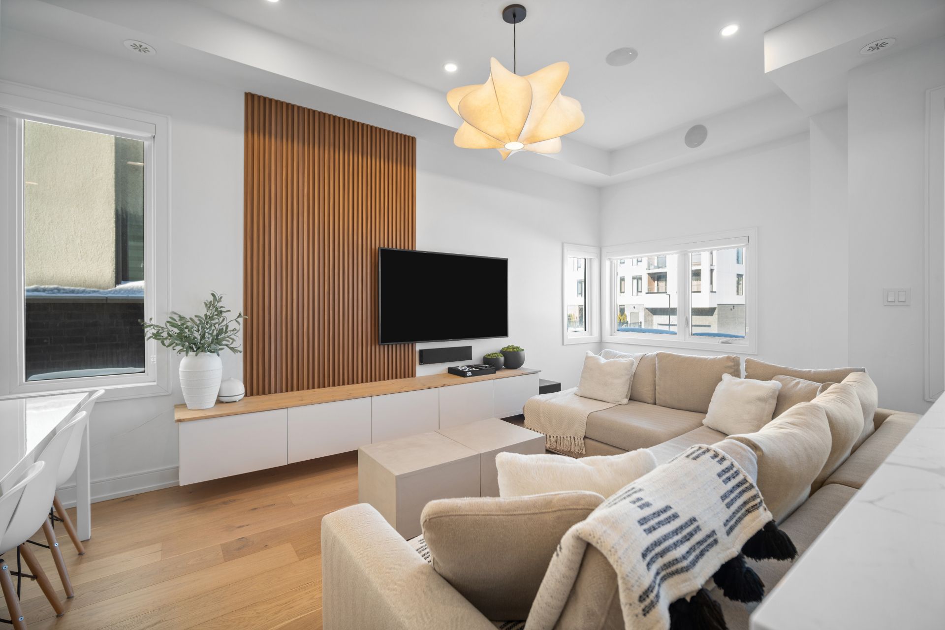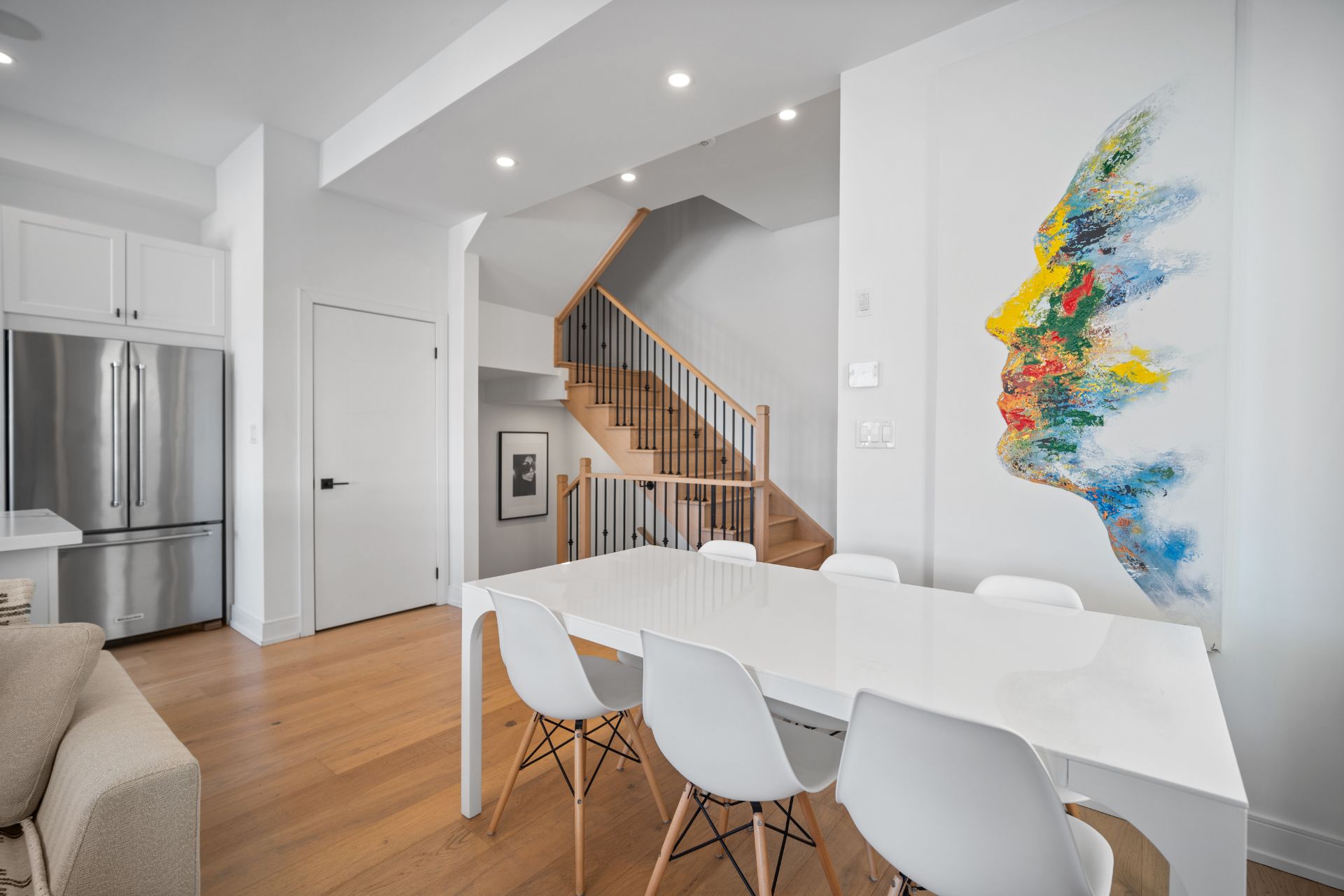 • Stylish end-unit townhouse with wide-plank hardwood flooring throughout.