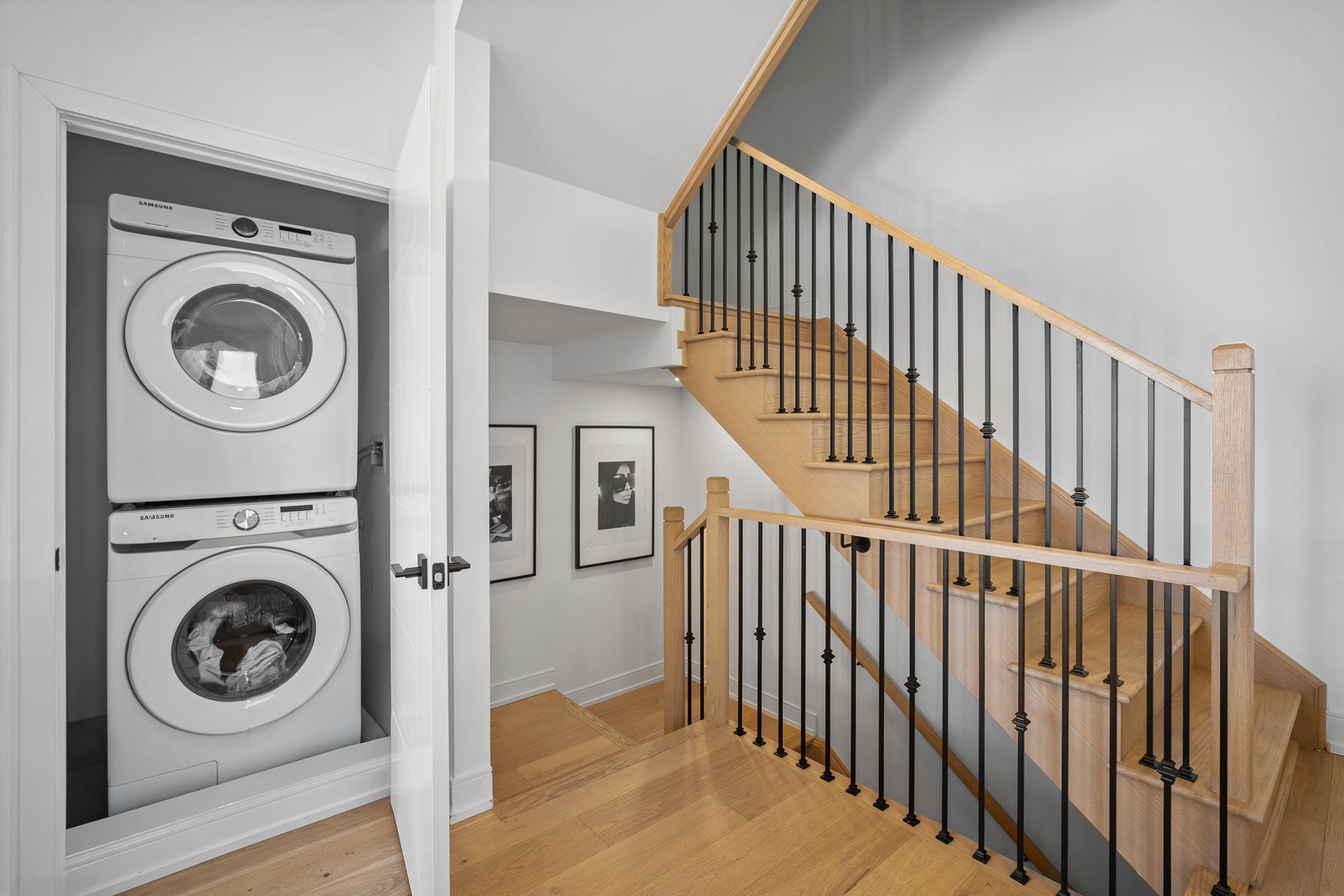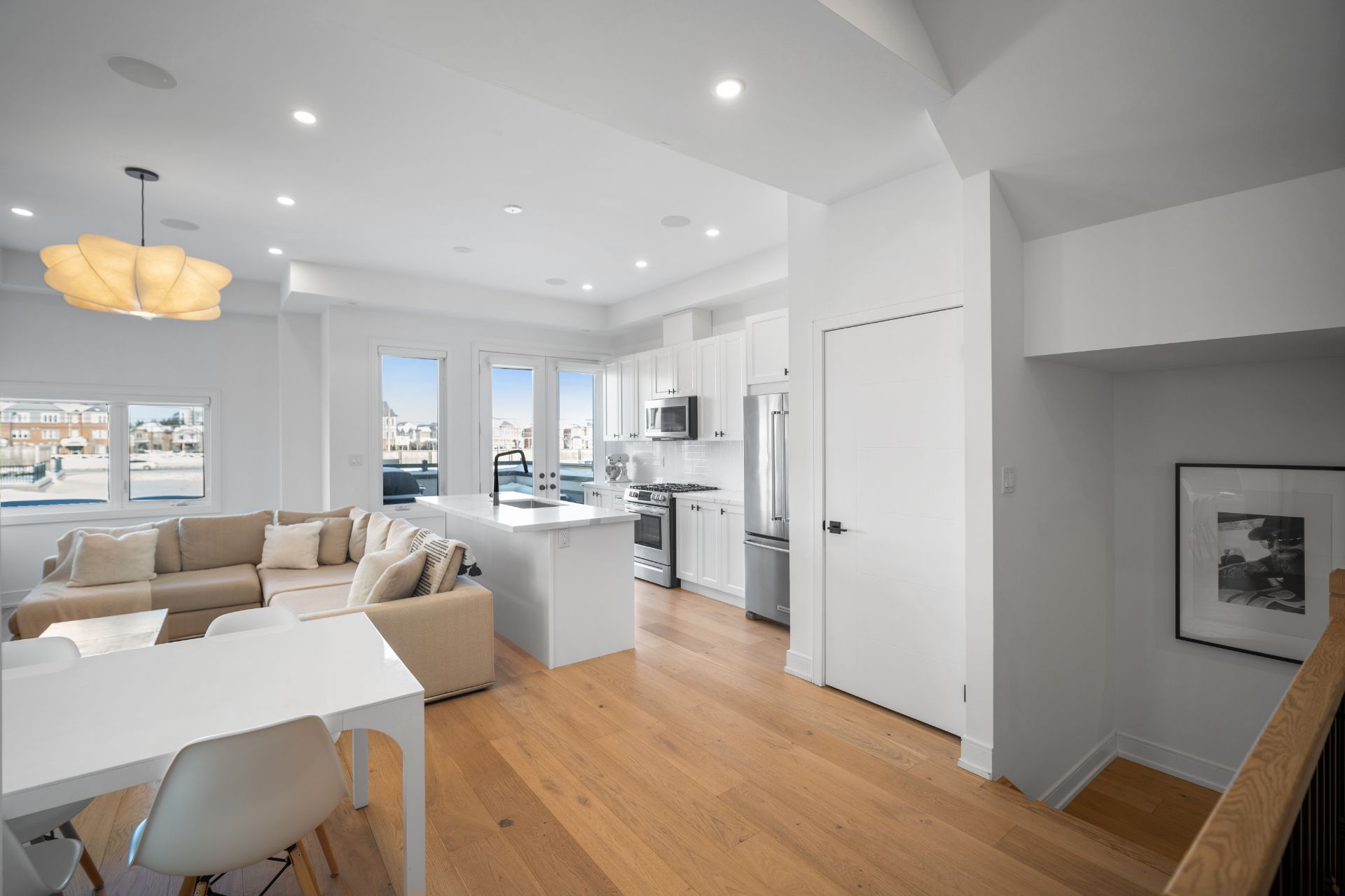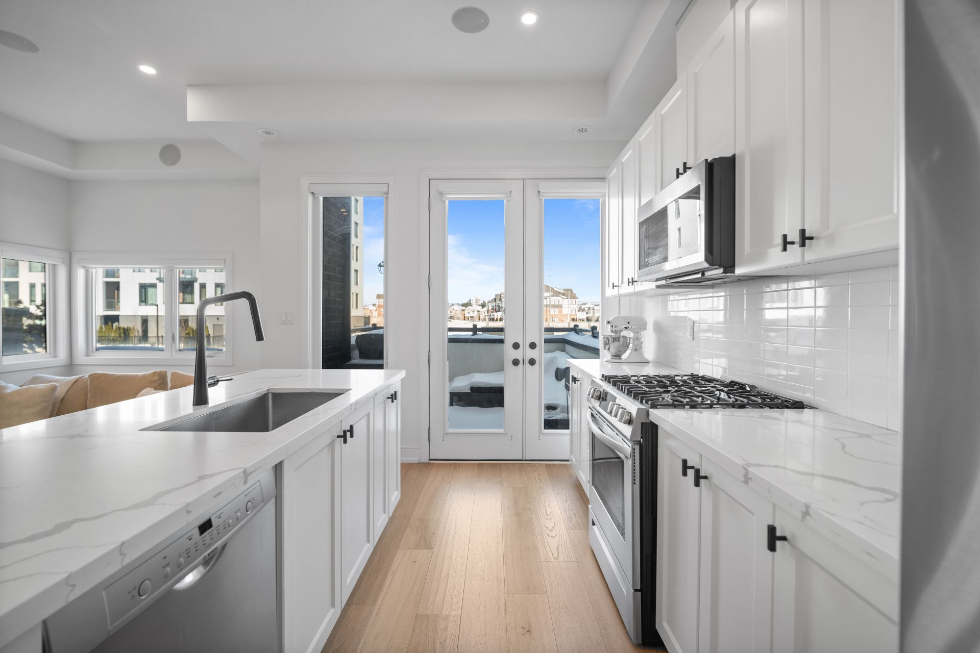 • Stylish end-unit townhouse with wide-plank hardwood flooring throughout.