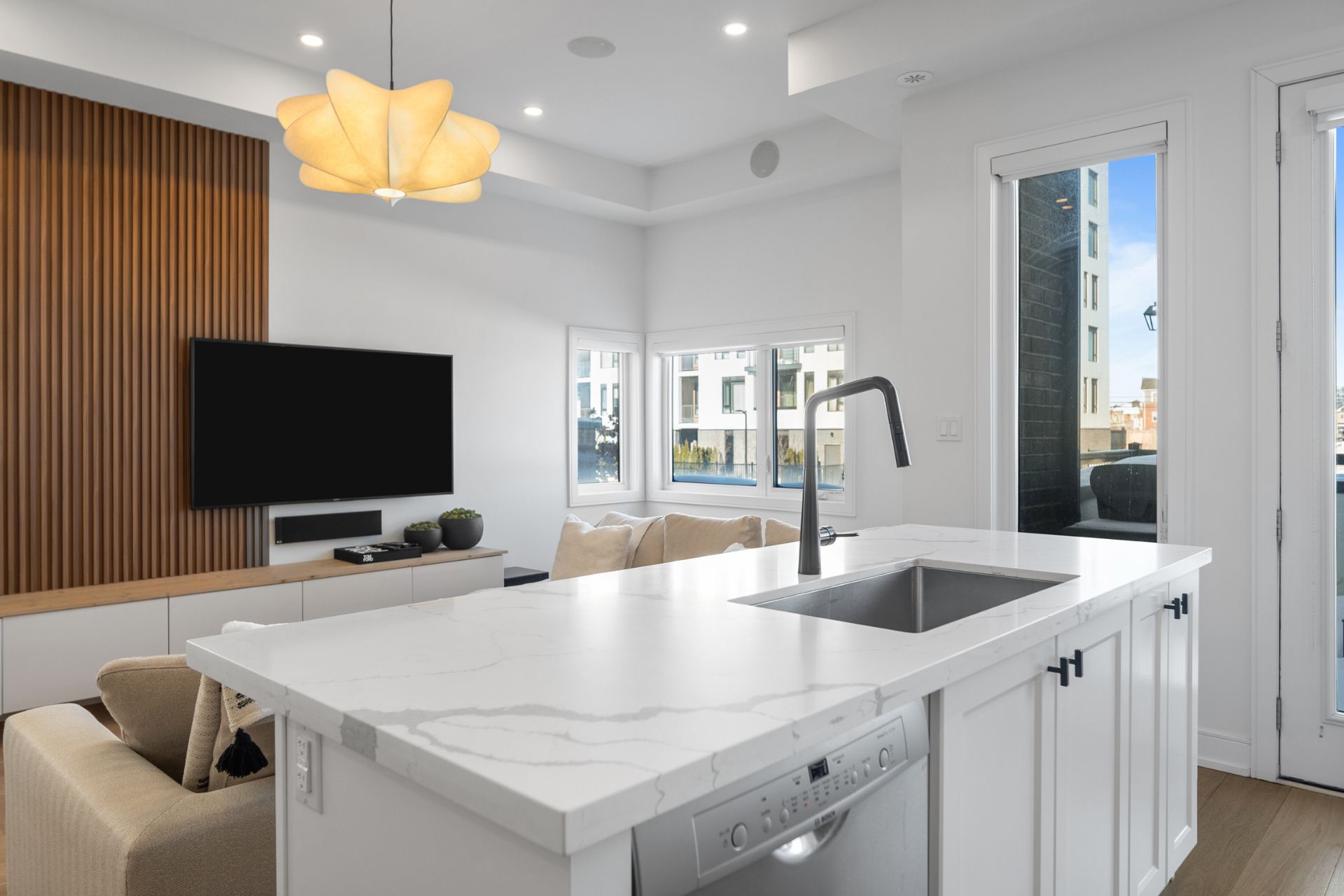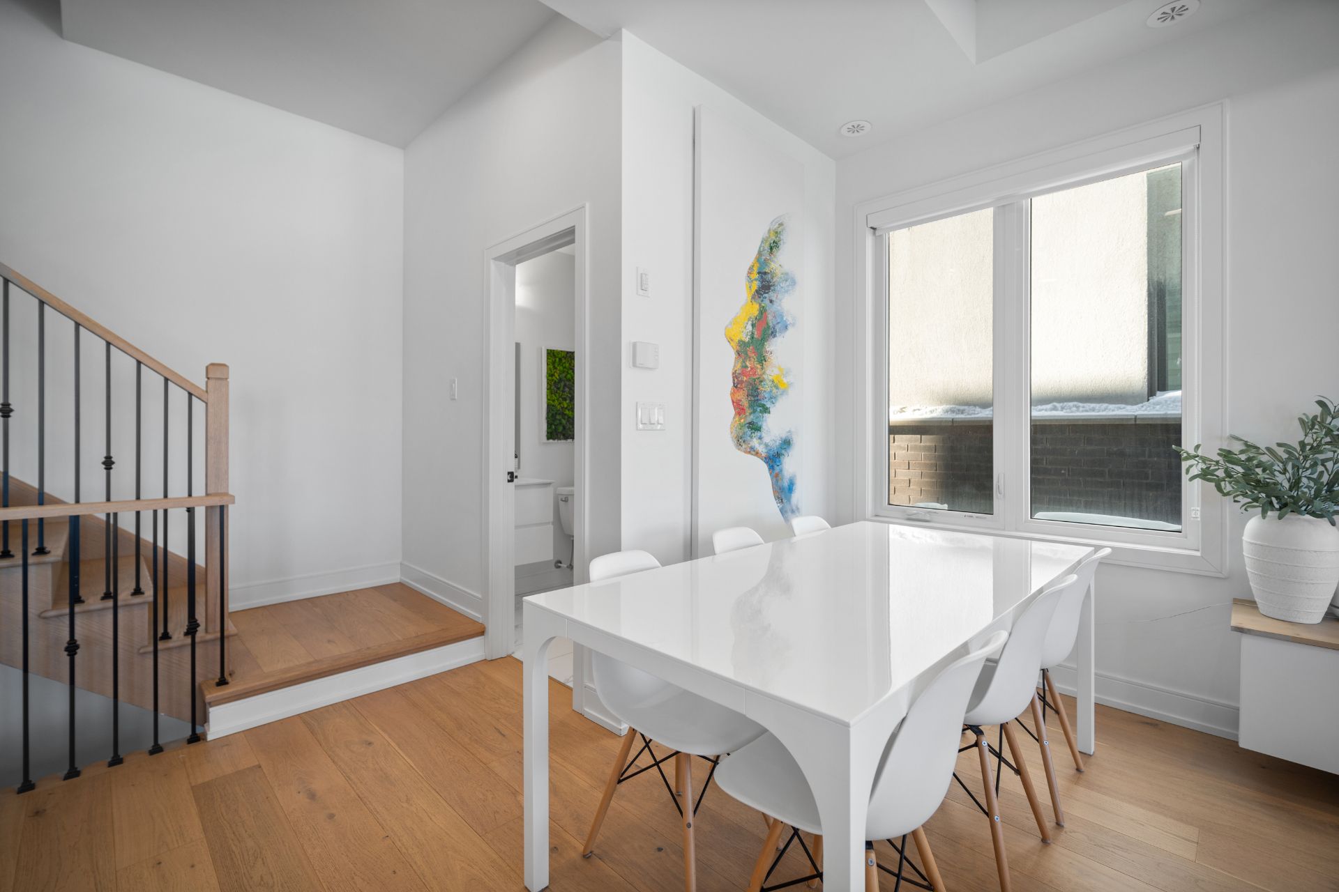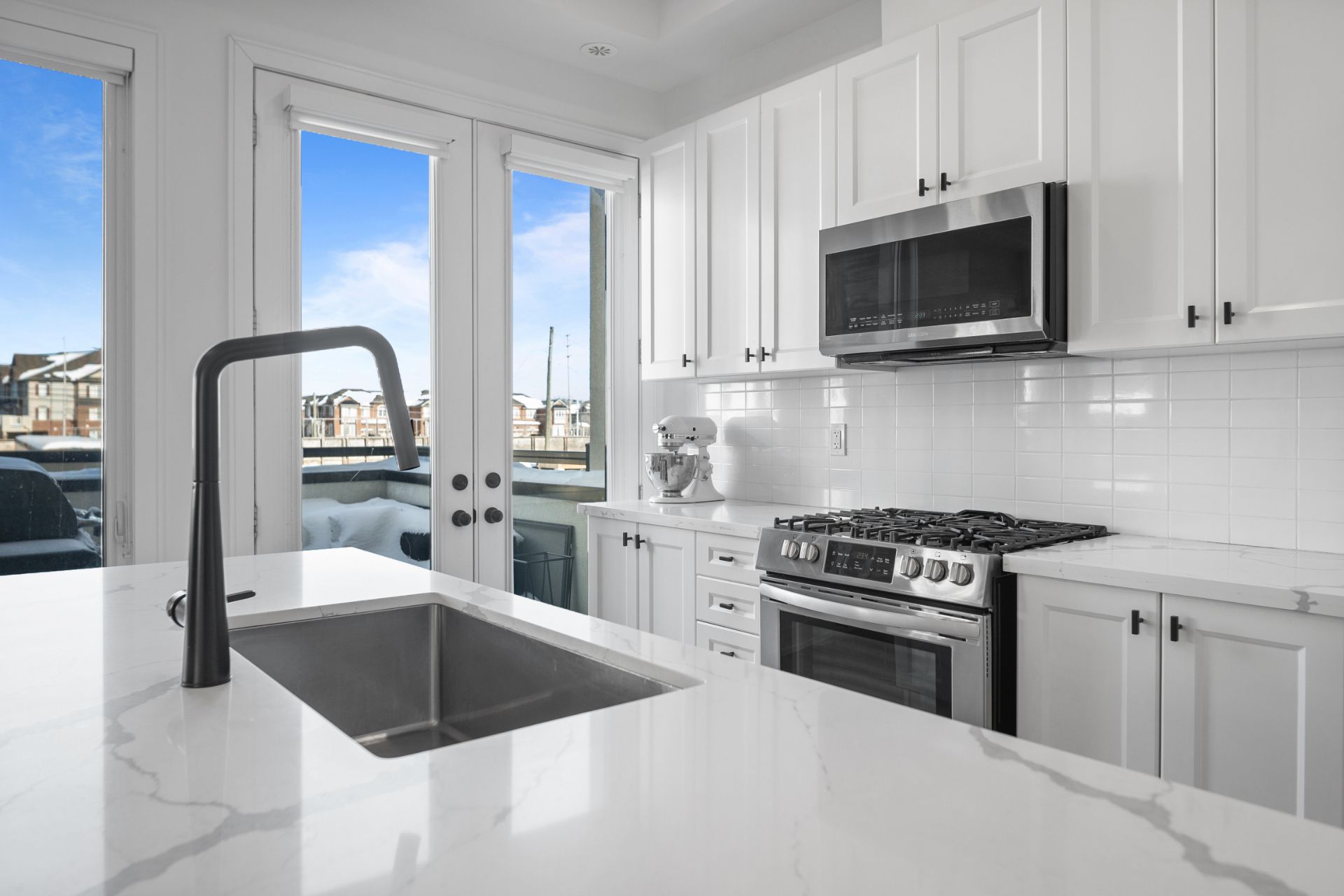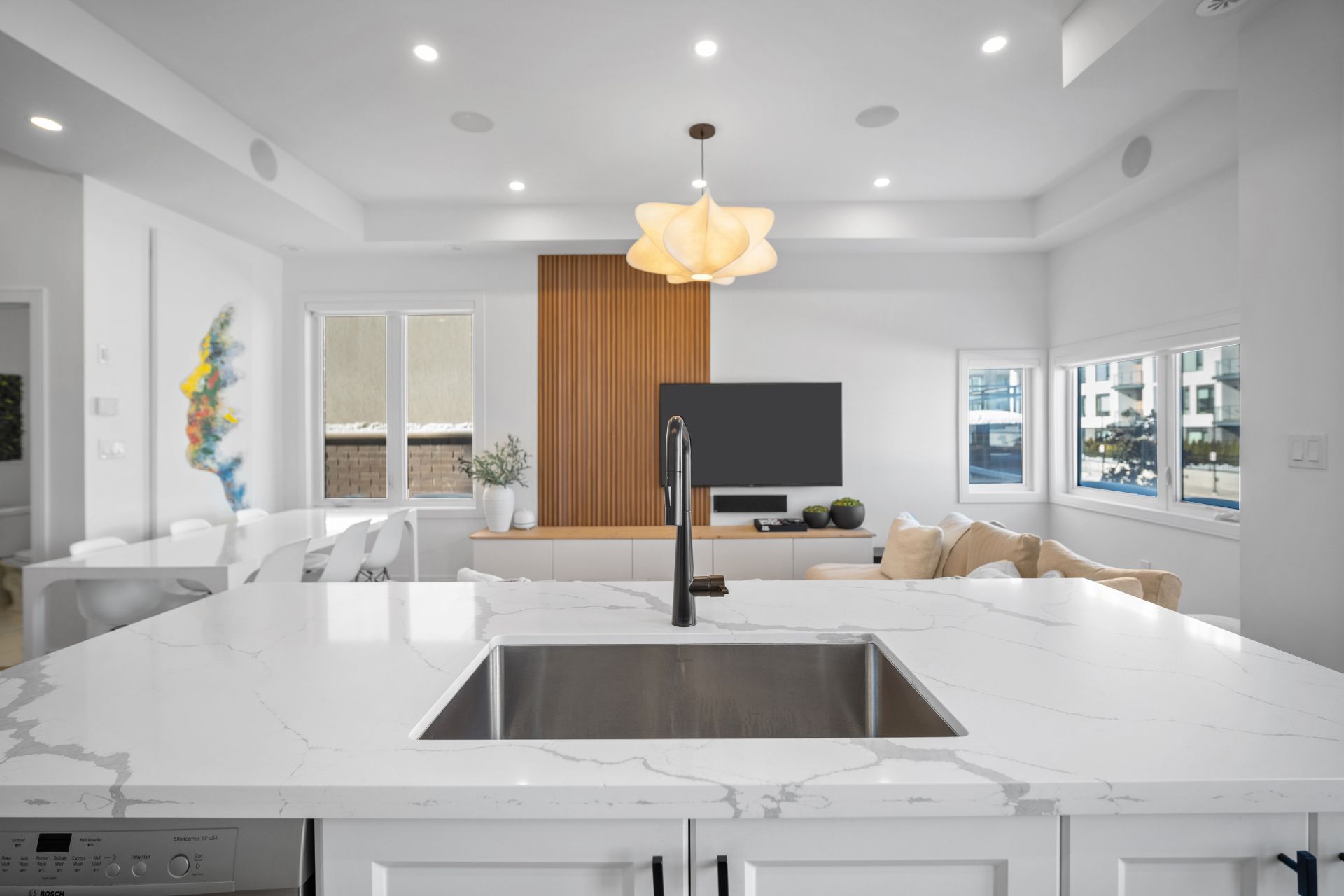 Freehold end-unit townhouse that feels like a 5 star resort as soon as you walk in! This sun-drenched home features wide-plank hardwood flooring throughout and an open-concept layout designed for both comfort and style. Soaring 10-ft ceilings on the main level enhance the sense of space, while thoughtful details include custom built-in closets in every bedroom, main floor built in speakers and designer lighting throughout. This home offers three spacious bedrooms and three well-appointed bathrooms. Enjoy seamless indoor-outdoor living with a large private balcony, complete with a gas line for summer bbqs and entertaining. A truly move-in-ready residence that blends simplicity, function, and beauty in one exceptional package.