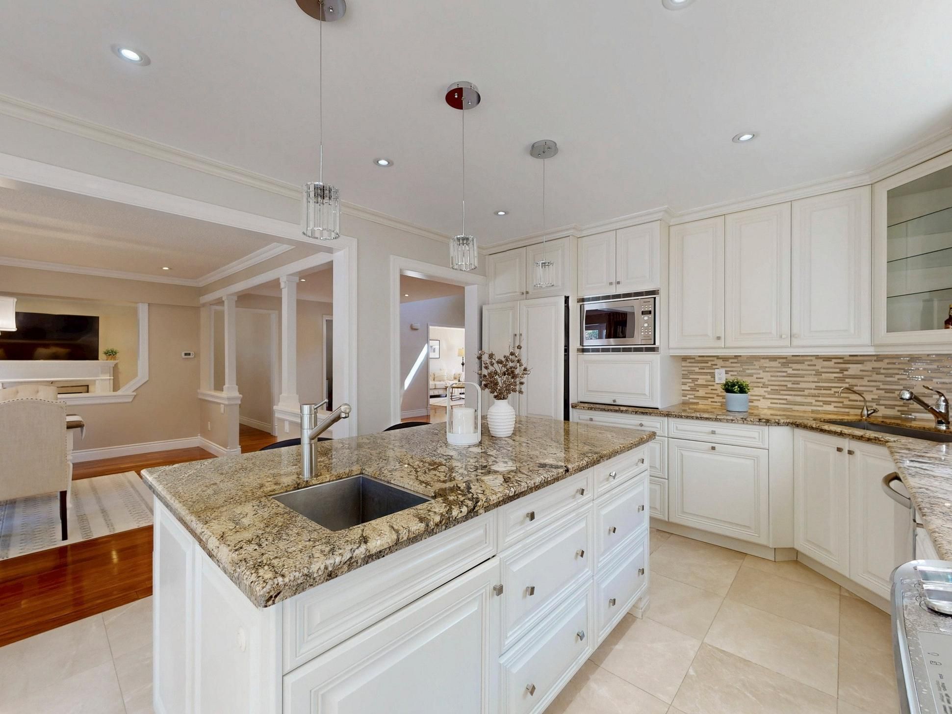 Stunning custom renovations throughout this luxurious glen abbey home! Nestled on a huge, private pie-shaped lot backing onto a true ravine, this 4-bedroom, 3,115 sq. Ft. Executive residence offers the perfect blend of comfort, elegance, and outdoor living. Host intimate dinners in the formal dining room overlooking the backyard oasis, or unwind in the main floor family room with a cozy gas fireplace. The main floor office is ideal for working from home. The custom kitchen features granite counters, a massive centre island, and high-end appliances, all overlooking your backyard retreat. The inground saltwater pool with a stone waterfall provides the ultimate entertainment space for the whole family, while the expansive ravine lot gives you a cottage-like feel right in the city. The primary suite boasts an updated ensuite with heated floor, walk-in closet, and inviting sitting area, while three additional bedrooms offer flexibility for family or guests. Enjoy easy access to top-ranked abbey park high school and pilgrim wood elementary, muskoka-like trails, monastery bakery, parks, shopping, public transit, and highways. Additional highlights include underground sprinklers and excellent feng shui. Nothing to do but move in and enjoy! See list of upgrades.