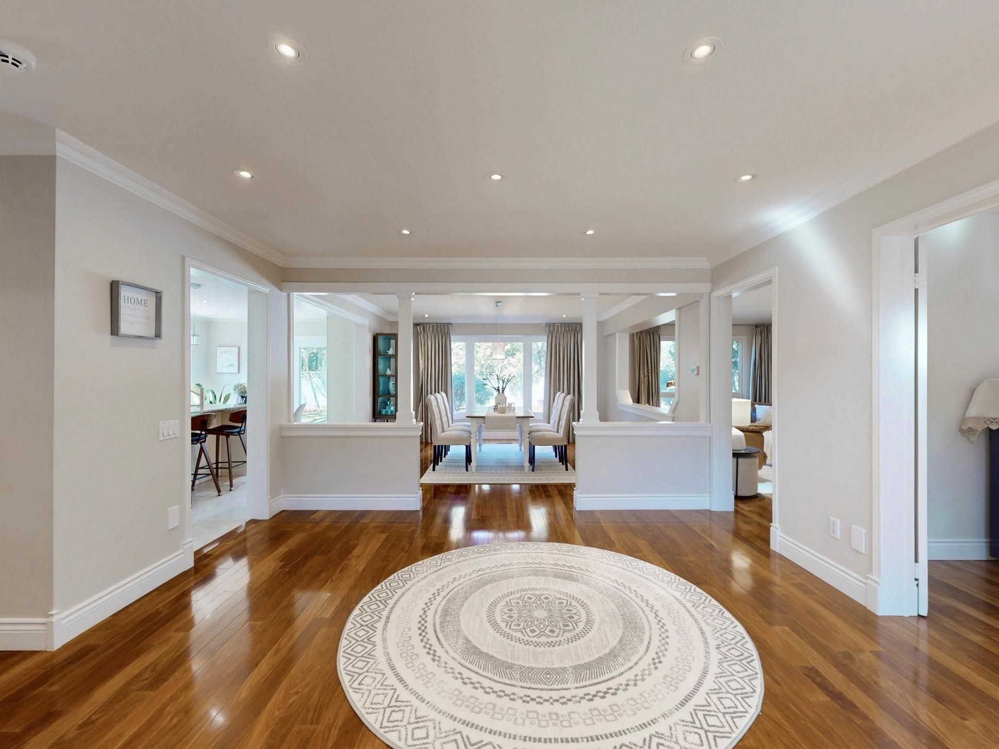 • Luxurious home with custom renovations on a private pie-shaped lot.