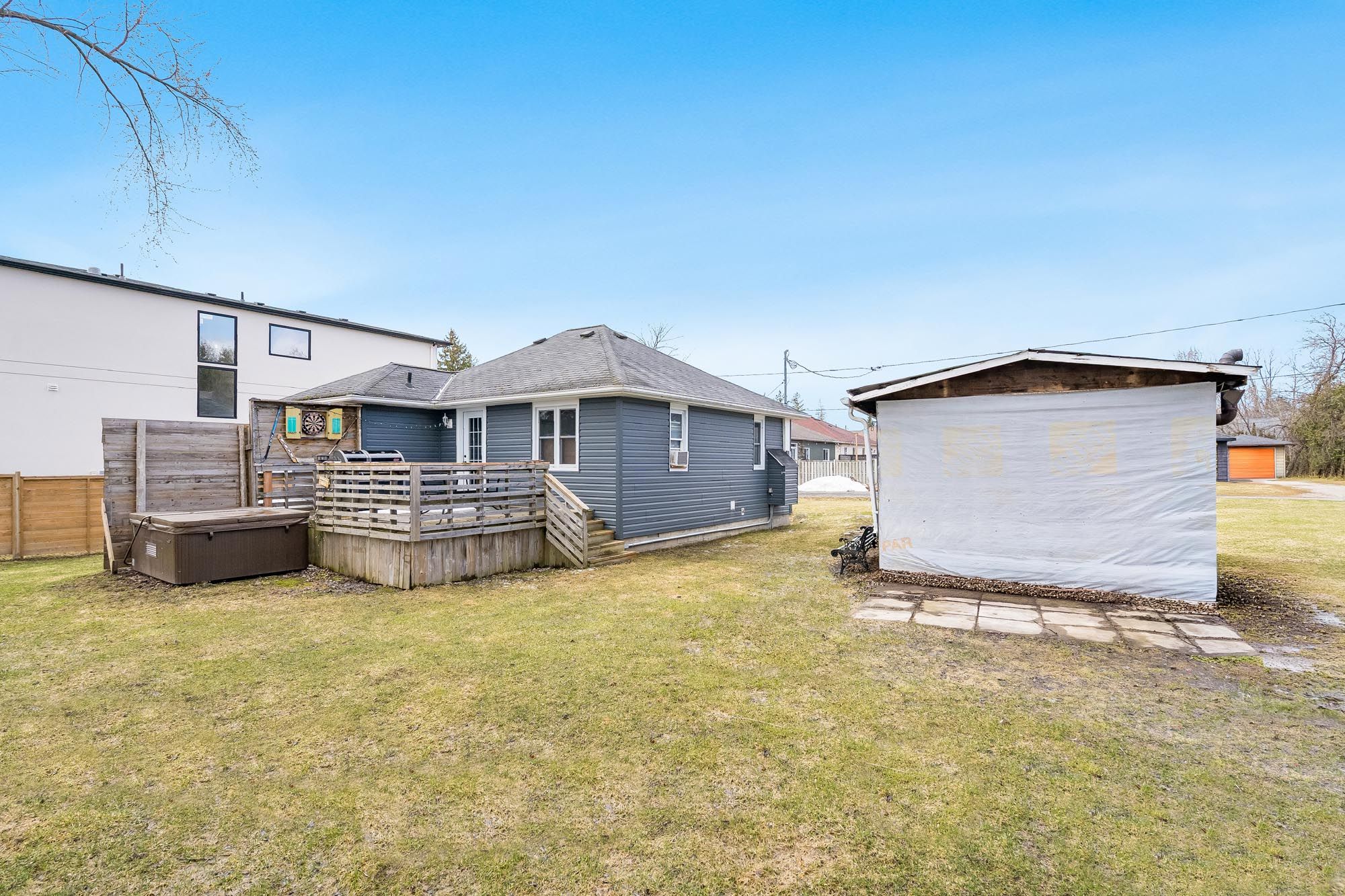 Top 5 reasons you will love this home: 1) a charming home full of character, highlighted by beautiful exposed beams that add warmth, texture, and timeless appeal throughout the space 2) ideally located just moments from the shores of lake simcoe, this property offers the convenience of being only steps away from the water, enhanced by access to beaches, perfect for enjoying peaceful lakeside living, swimming, and sunset strolls 3) detached workshop and a well-sized storage building provide exceptional versatility, offering ample space for hobbies, projects, equipment, or all your storage needs 4) private hot tub just steps from the house creating an inviting space to unwind, soak, and enjoy peaceful evenings under the stars 5) large double lot offering incredible potential for builders and investors, with ample space to expand or create your ideal outdoor retreat. 779 fin. Sq. Ft.