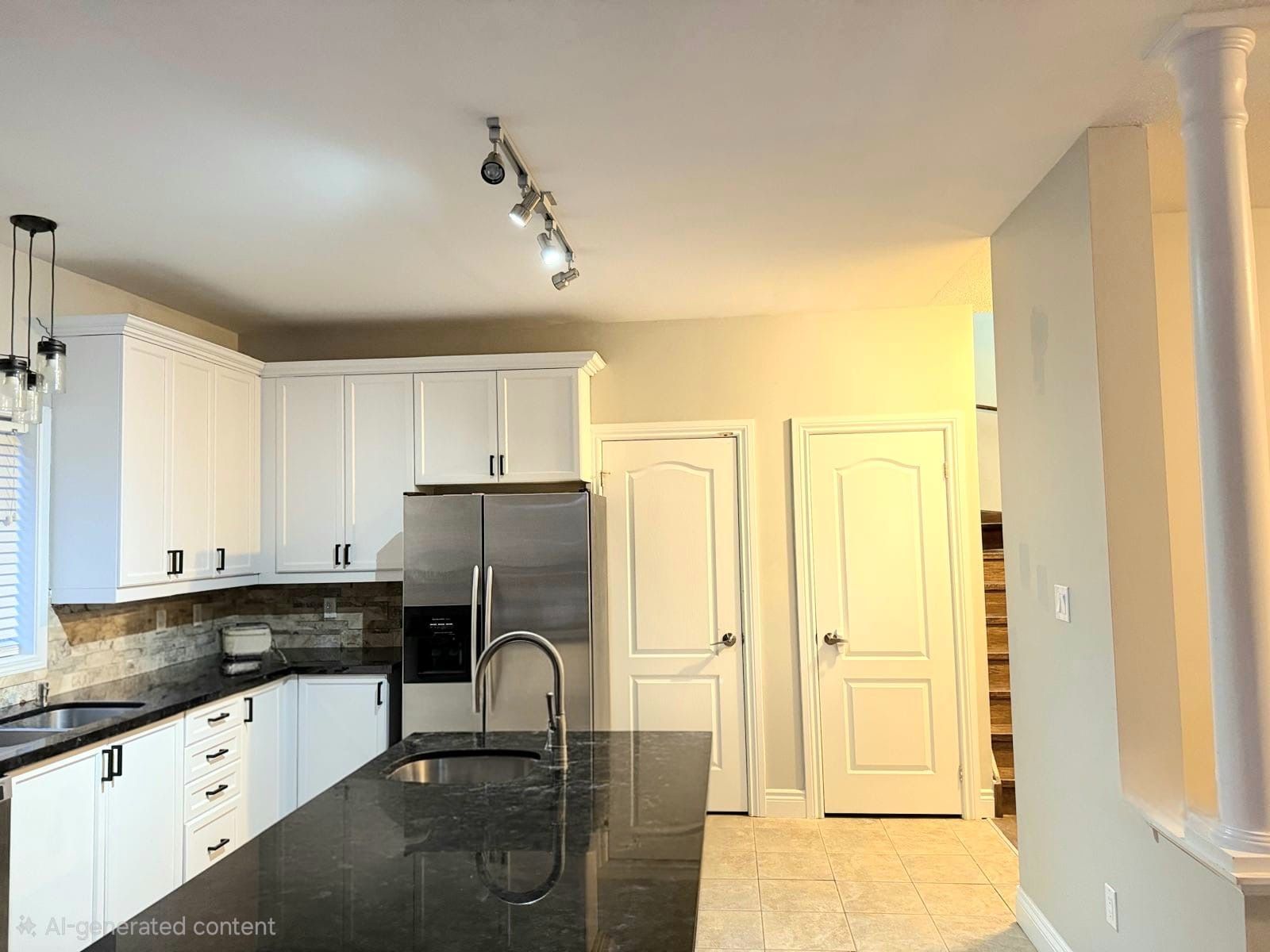 • Open-concept kitchen with premium appliances and backyard access.