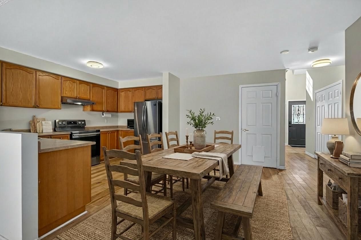 Tucked away on a quiet cul-de-sac on peterborough's west side, this two storey brick and vinyl garden home offers a great mix of space, comfort, and commuter-friendly convenience. Convenient access to peterborough regional health centre, schools, highway 115 and costco. Well maintained and thoughtfully updated, the home feels larger than it looks. Upstairs, you'll find a huge primary bedroom, a full four-piece ensuite bathroom, and plenty of storage. The main floor is laid out for everyday living, with a u-shaped kitchen, dining area, main-floor laundry tucked into a closet, a second bedroom, 4-piece bath and a bright living room with patio doors leading to a fully fenced yard. There's also direct access to the oversized garage-no running through the rain with groceries. The finished lower level adds even more flexibility, featuring a large rec room with a wet bar that could easily work as a third bedroom, plus a three-piece bathroom and lots of finished storage for seasonal gear. Newer furnace, a/c, and shingles round out the updates. A solid option for first-time buyers looking for space to grow, or a retiree seeking a low-maintenance property in a desirable area.