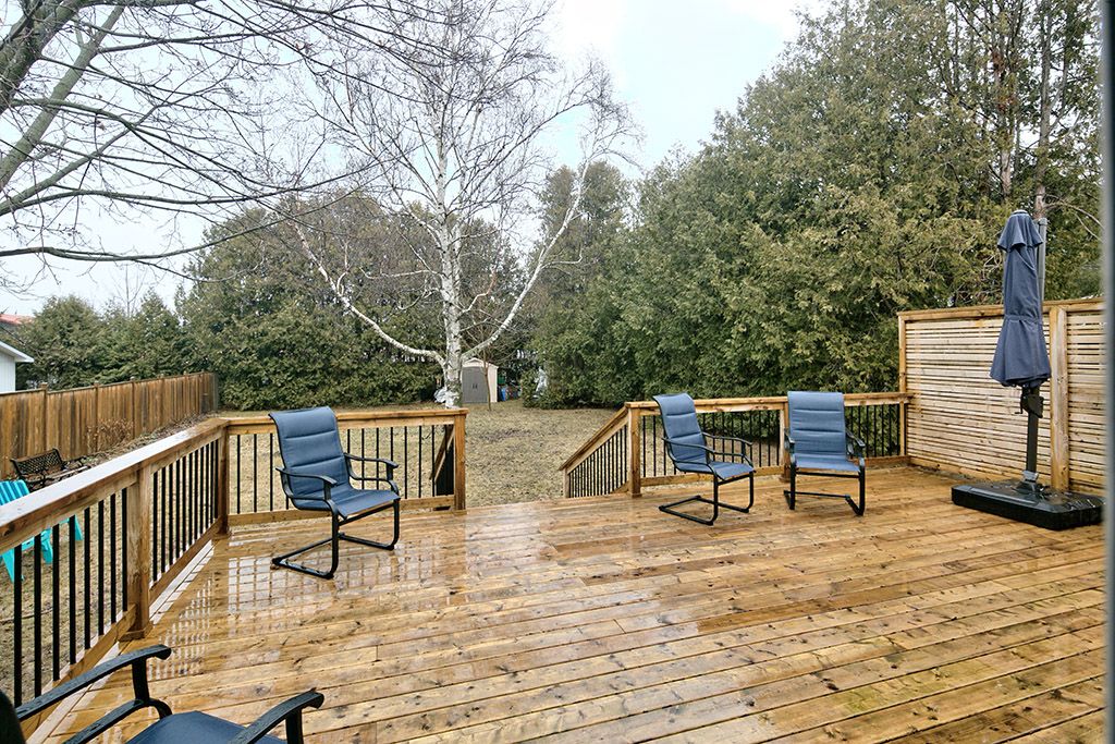 • Expansive deck overlooking a peaceful backyard for relaxation.