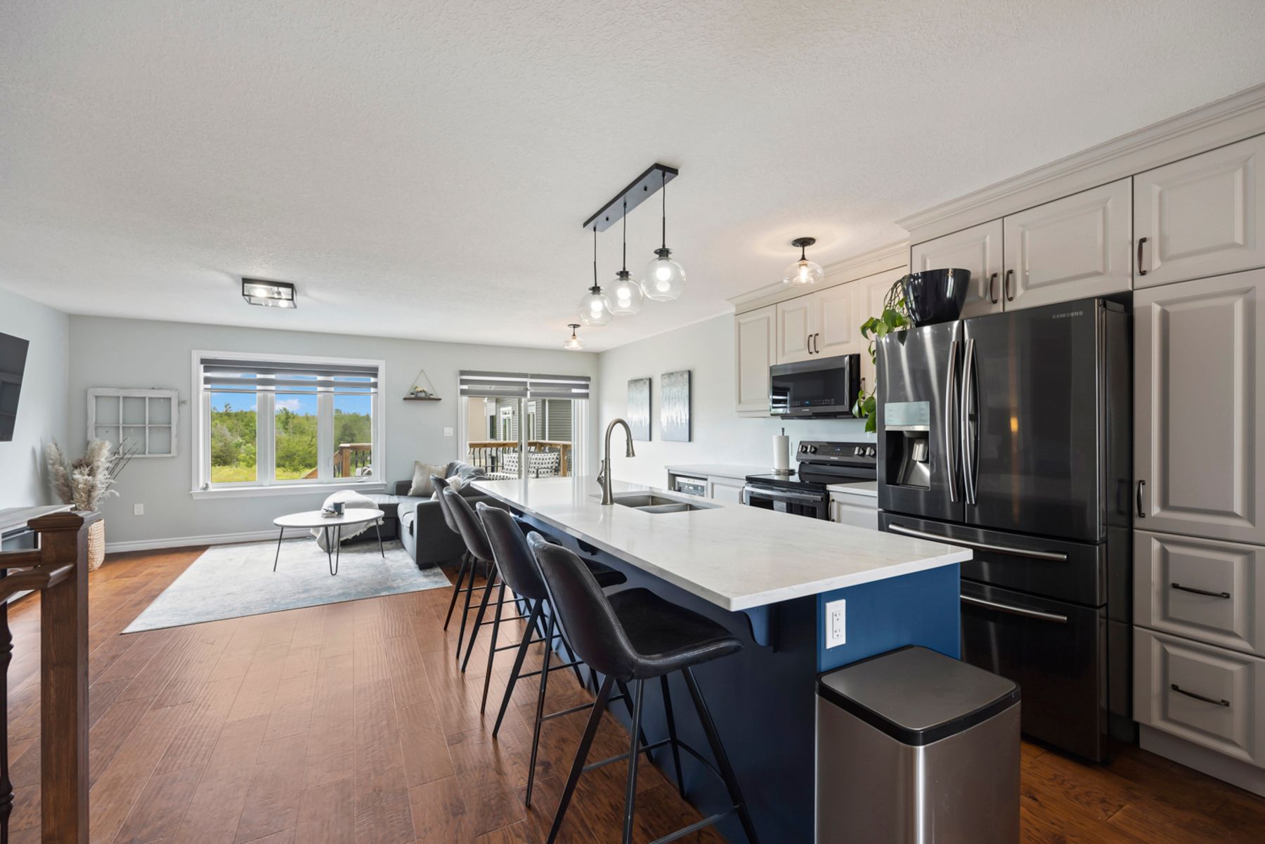 Welcome to 142 brennan crescent - a beautifully designed bungalow that blends modern style with effortless, everyday living. From the moment you step inside, the thoughtfully designed open-concept layout stands out, anchored by a stunning kitchen with a large island, quartz countertops, and seamless flow into the dining and livingspaces - perfect for entertaining or simply enjoying life at home. The main level offers a bright and spacious primary bedroom complete with a 4-piece ensuite, along with a second bedroom and full bathroom, ideal for guests, a home office, or growing families. Downstairs, the fully finished walkout basement adds incredible versatility, featuring a large rec room, an additional bedroom, and a newly completed, beautifully finished 3-piece bathroom - creating the perfect space for hosting, relaxing, or extended living. Step outside to your private backyard retreat, where a patio space invites morning coffee and summer evenings, allbacking onto a peaceful natural setting with no rear neighbours - offering both privacy and a connection to nature that's hard to find. Recent updates include a new concrete walkway, fresh paint accents, updated lighting, and the addition of the lower-level bathroom, making this home truly move-in ready. Located in the growing community of odessa, just minutes to kingston with quick access to the 401, and within walking distance to schools, parks, and local amenities, this home offers the perfect balance of convenience, comfort, and lifestyle. With 2+1 bedrooms, 2+1 bathrooms, and a functional layout that lives larger than expected, this is a home thatstands out for all the right reasons.
