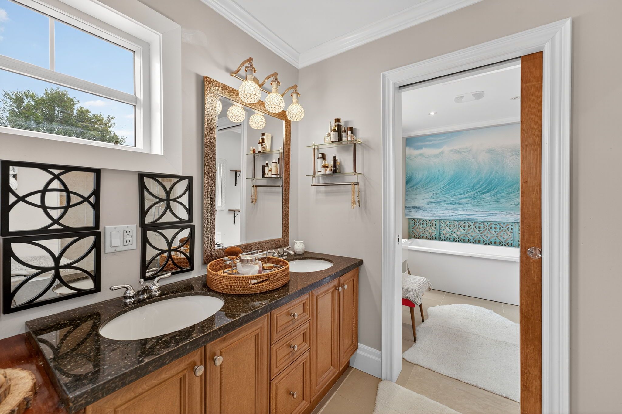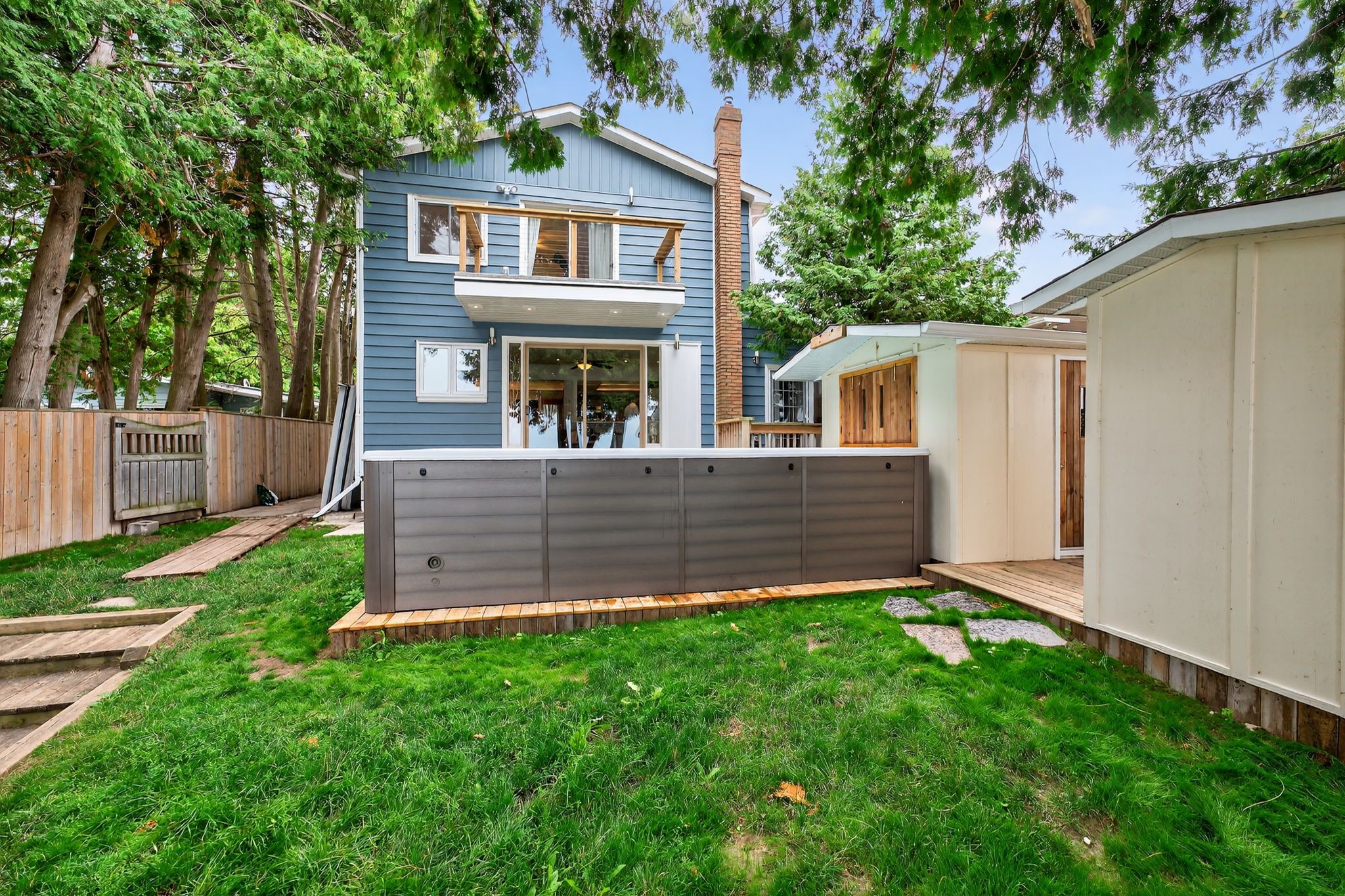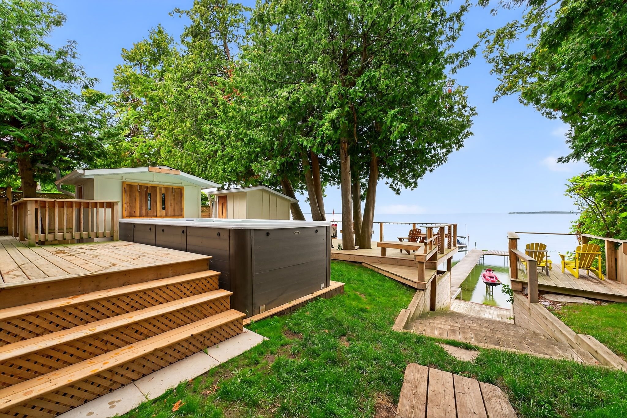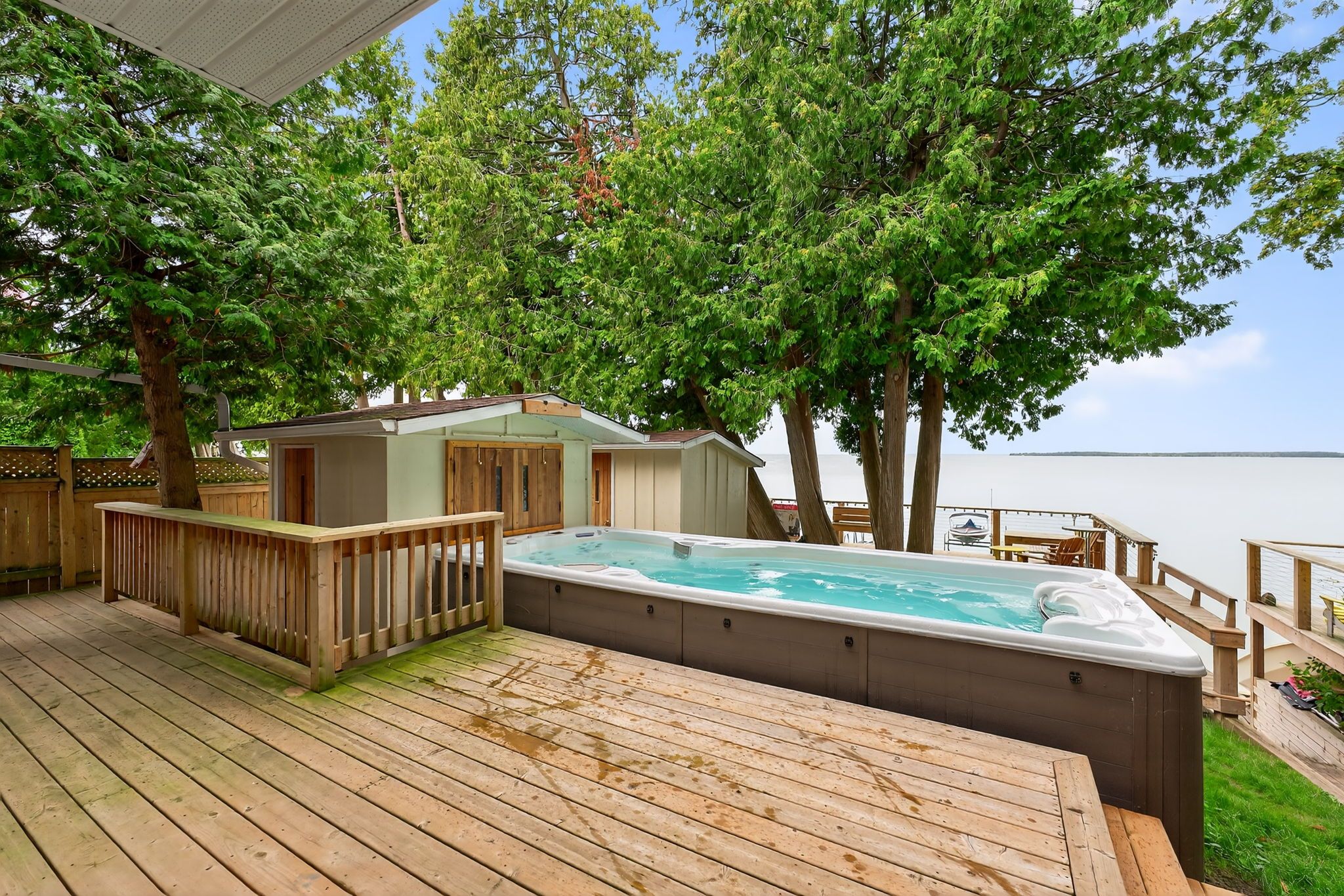 • Backyard includes a swim spa, sauna, and direct access to the beach.