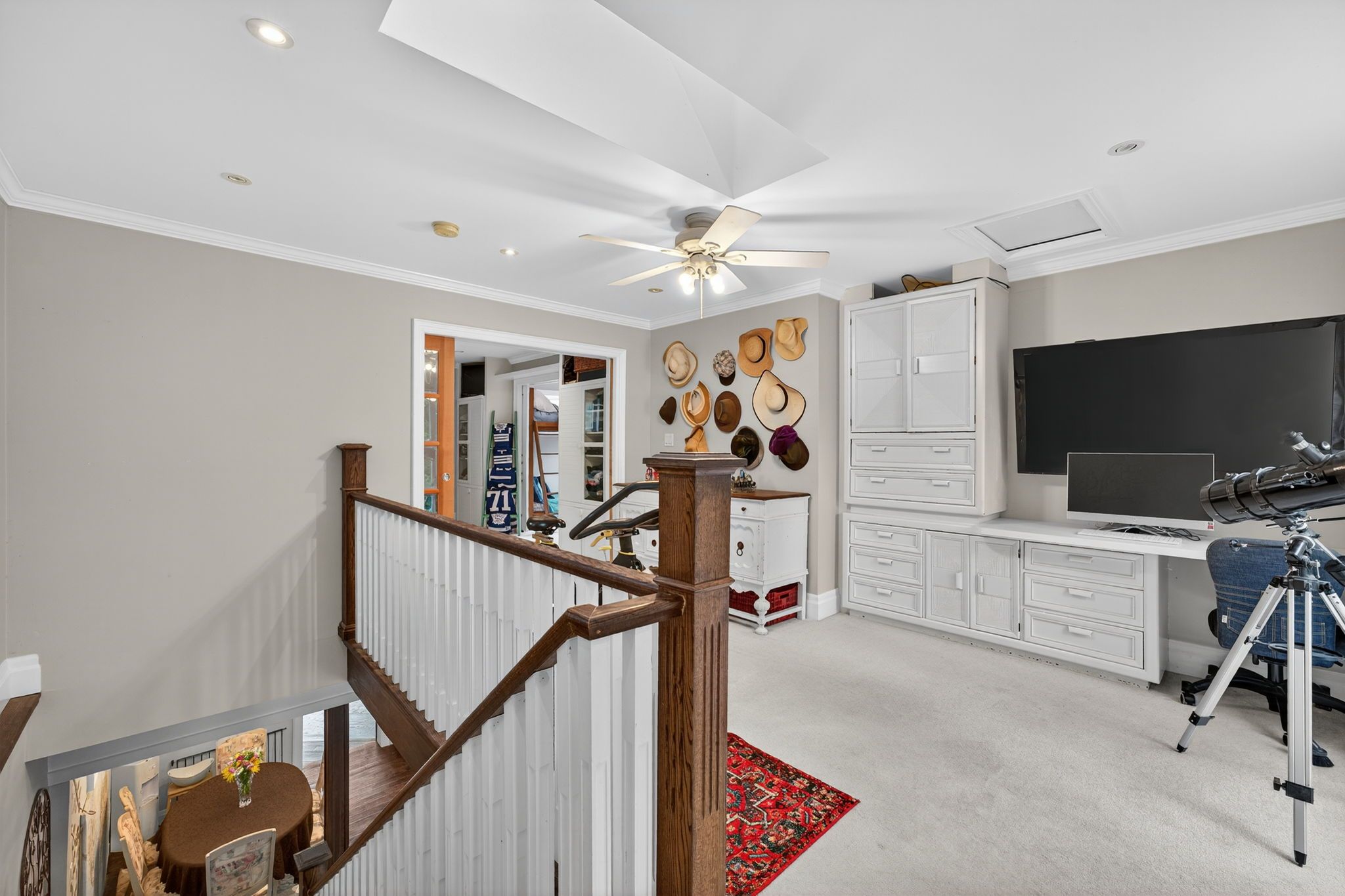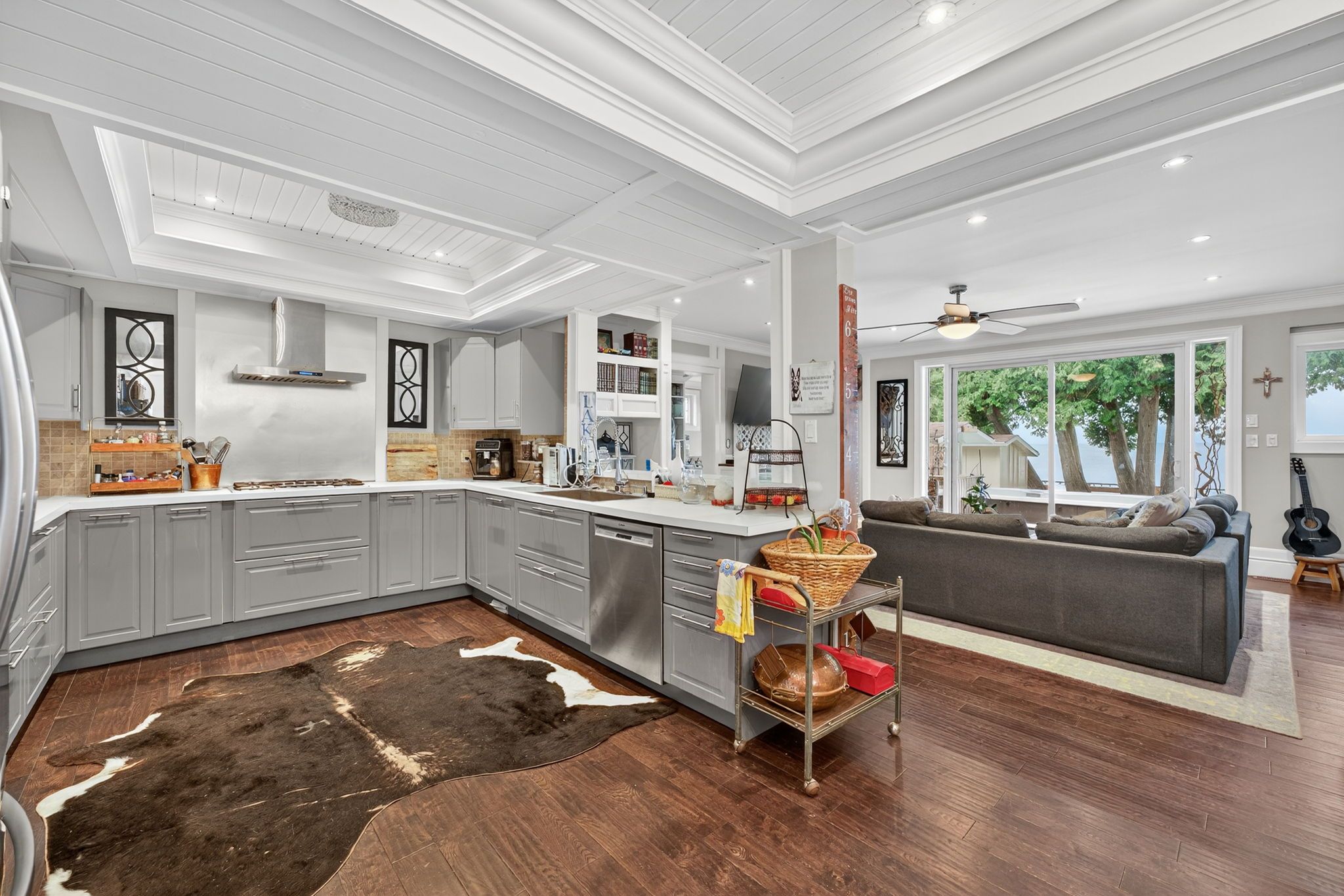 • Chef's kitchen features modern appliances and overlooks the beautiful lake.