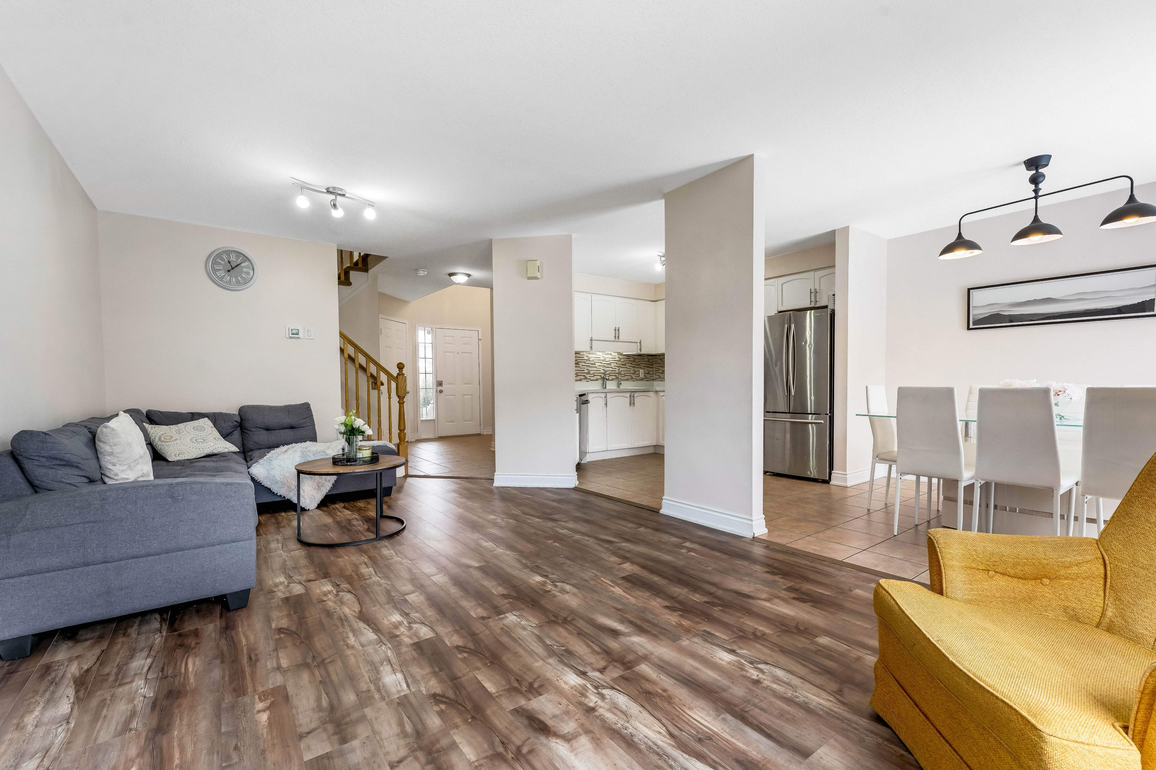 Welcome to 142 dubrick street, kitchener, a beautifully updated end-unit freehold townhome in one of the city's most desirable communities. Situated on a 30 x 114 ft lot, this move-in ready home offers 3 parking spaces: 1-car garage plus 2-car driveway, making it an ideal choice for families, first-time buyers or professionals seeking a well-maintained property in a prime location. Step inside and be greeted by a bright and inviting interior freshly painted in 2025, complemented by brand-new flooring (2025) and stylish pot lights that create a warm and modern atmosphere in the home. The spacious open-concept main floor is designed for both everyday living and entertaining, featuring a well-appointed kitchen with new quartz countertops, quality appliances and a tasteful backsplash. The adjoining dinette area is perfect to enjoy meals. Upstairs, the home continues to impress with 3 generously sized bedrooms and 2. 5 bathrooms. The primary bedroom provides a comfortable retreat, while 2 additional bedrooms offer flexibility for family members or guests. A convenient loft office space adds extra functionality, ideal for remote work or study. The bathrooms have been tastefully refreshed with modern vanities installed in 2024. The fully finished basement expands the living space significantly, featuring a huge recreation room perfect for a home theatre, games area or family lounge along with a full bathroom. Outside the fully fenced and beautifully landscaped backyard offers privacy and space to unwind, making it a perfect setting for children, pets and outdoor gatherings. Additional upgrades include new roof with shingles (2025). Located in the highly sought-after laurentian west community, this home is just few steps from williamsburg town centre, close proximity to excellent schools, parks and walking trails and easy access to highway 8 and highway 401. This fully upgraded, move-in ready home has it all. Schedule your showing today and make it yours!