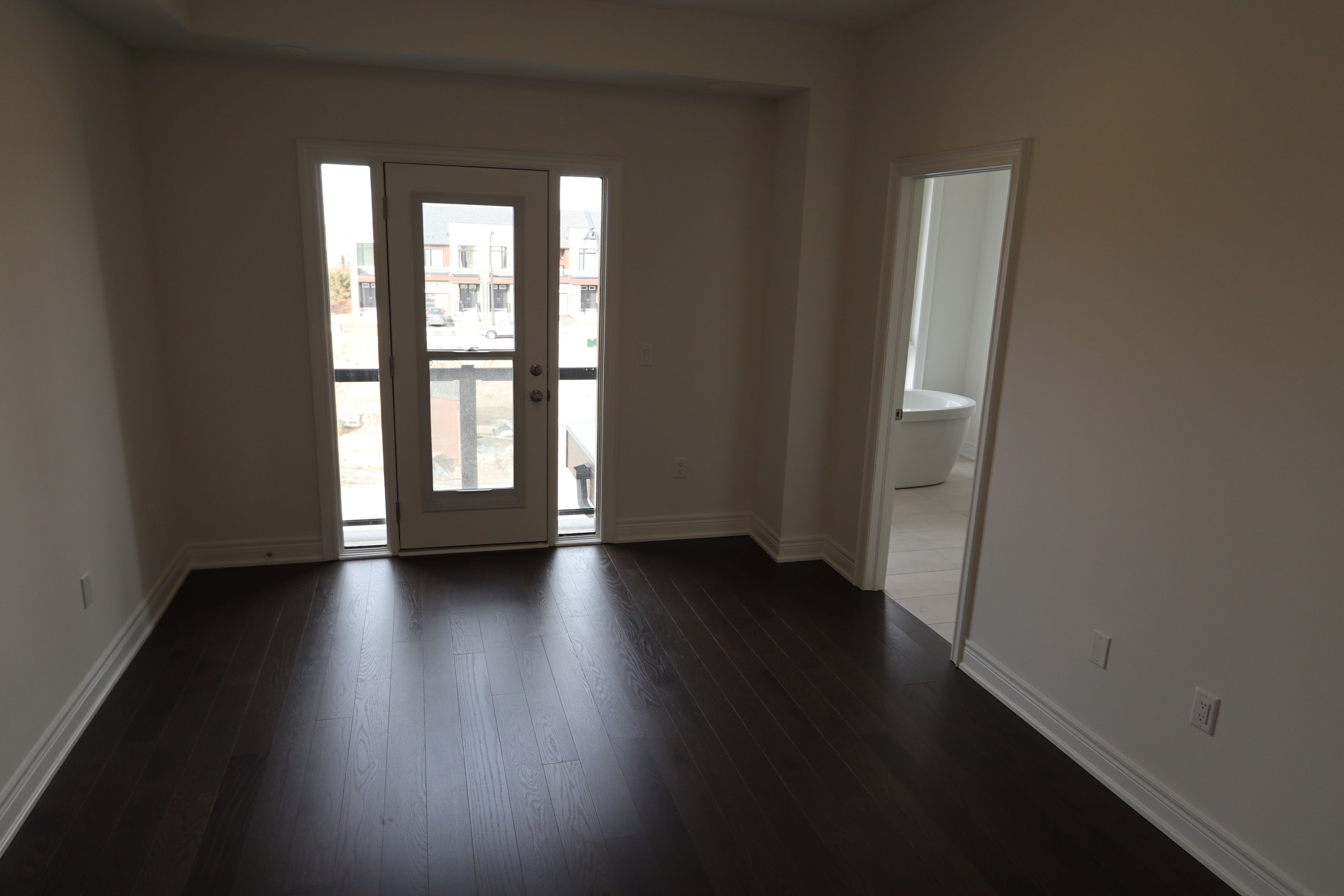 Stunning new, never-occupied modern townhouse featuring 3 spacious bedrooms, 3 washrooms. Thoughtfully designed with contemporary finishes throughout and a bright open-concept layout, this home offers both style and functionality. The inviting living room showcases french doors that open to a large private balcony. Modern kitchen with quartz countertop and plenty of storage space. Lots of natural light. No pets allowed. The primary bedroom retreat includes its own private balcony, walk in closet and 5 piece ensuite complete with a freestanding soaker tub. Convenient second floor laundry. Located in a prime location minutes from hwy 427 & 407, providing seamless connectivity across the gta. Close to shopping, costco, schools and public transit. The perfect opportunity for tenants seeking a brand new modern home in unbeatable location..