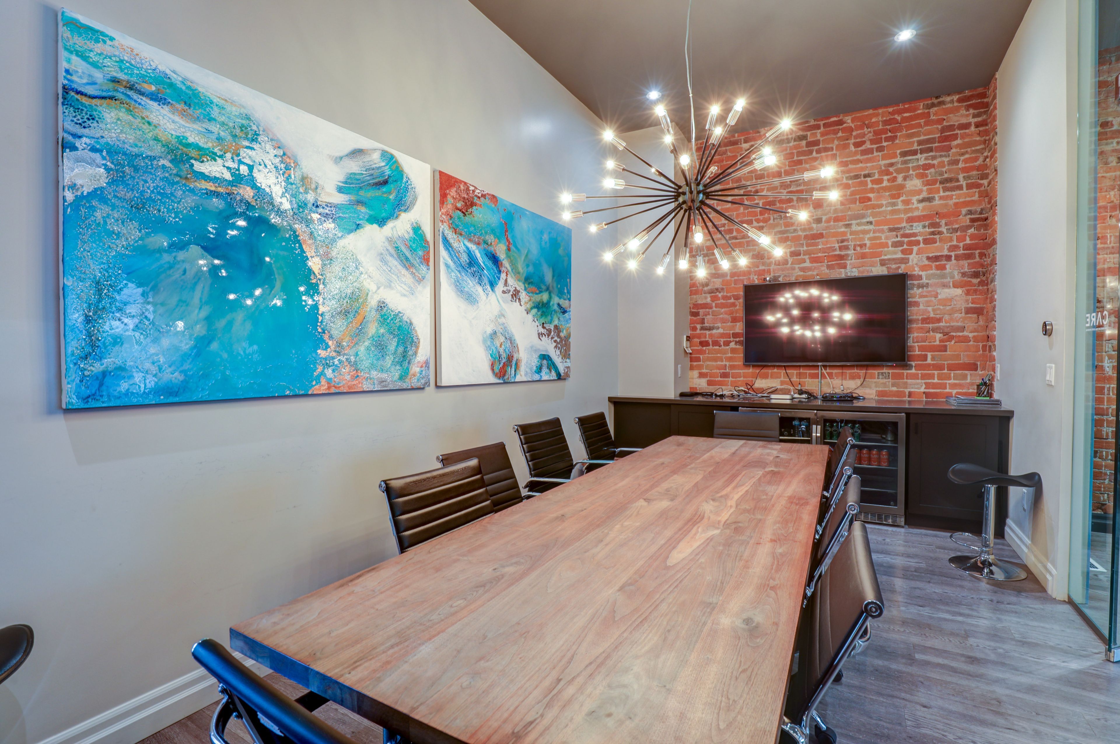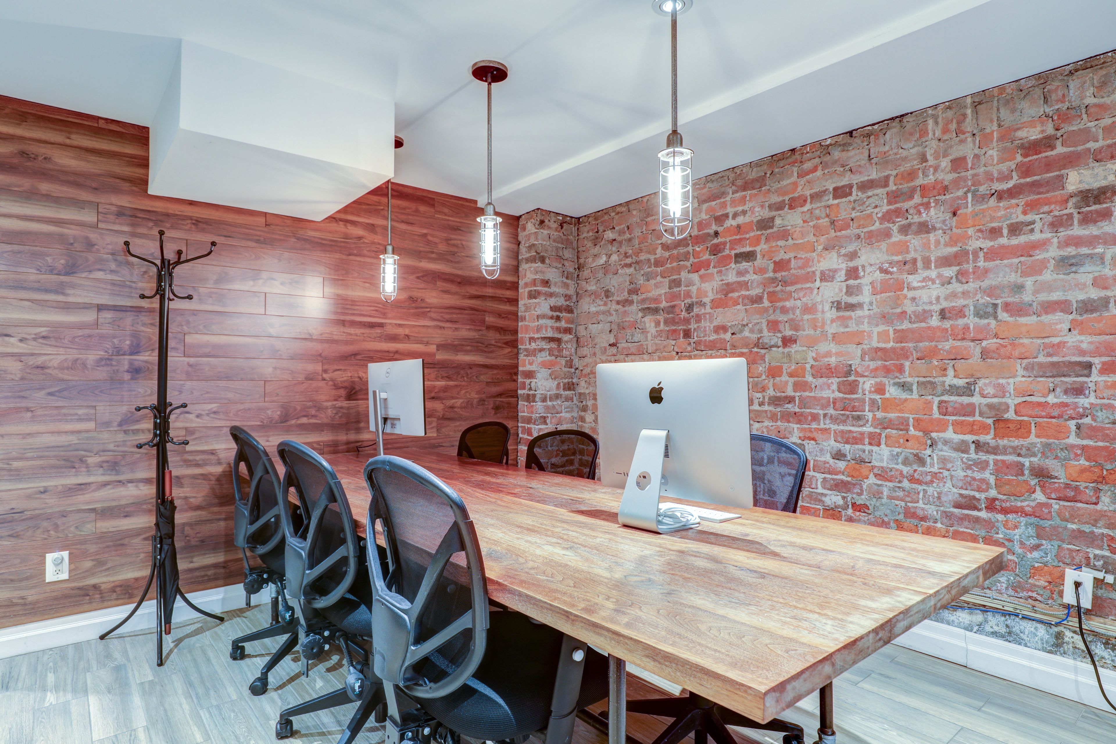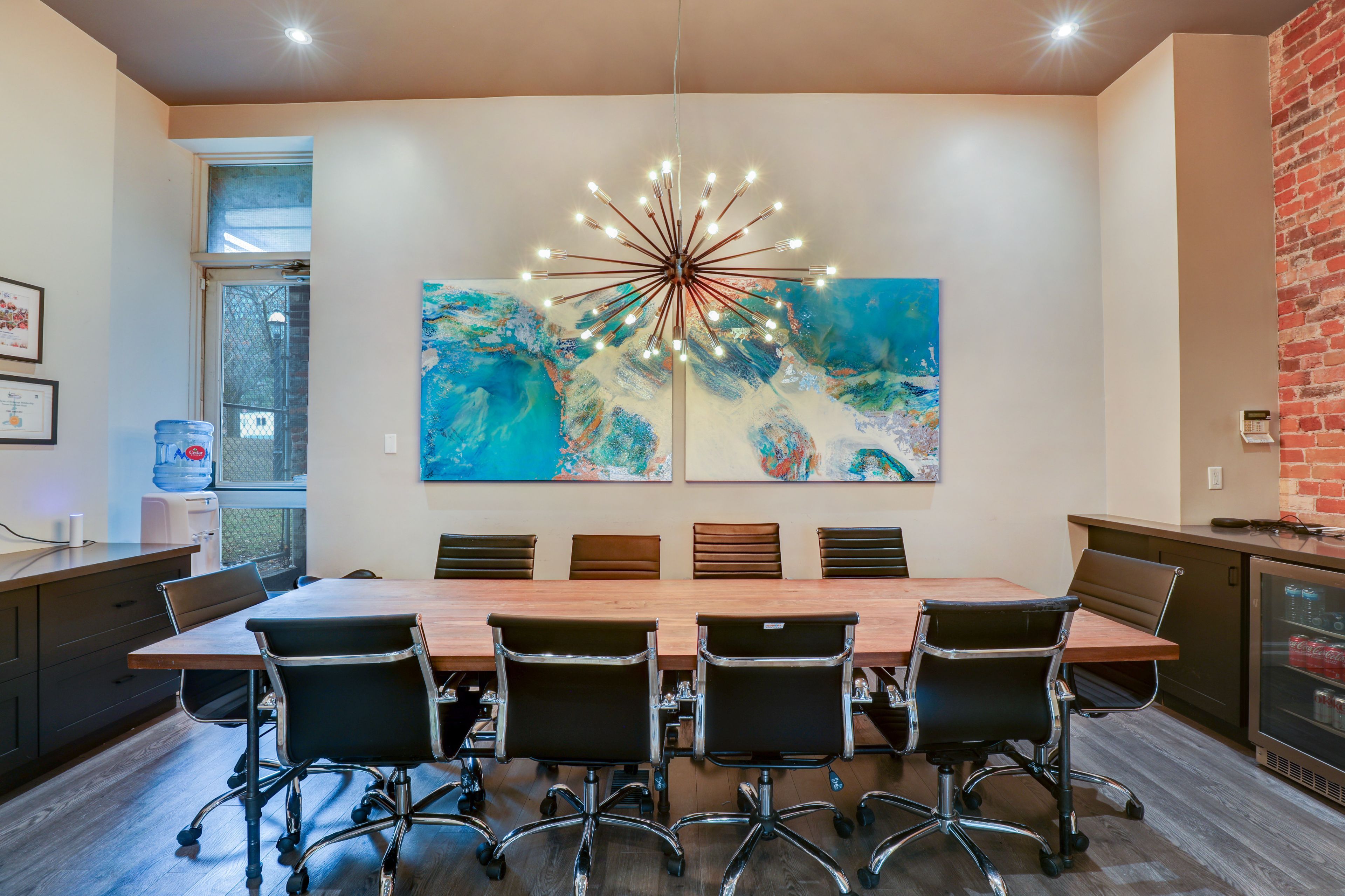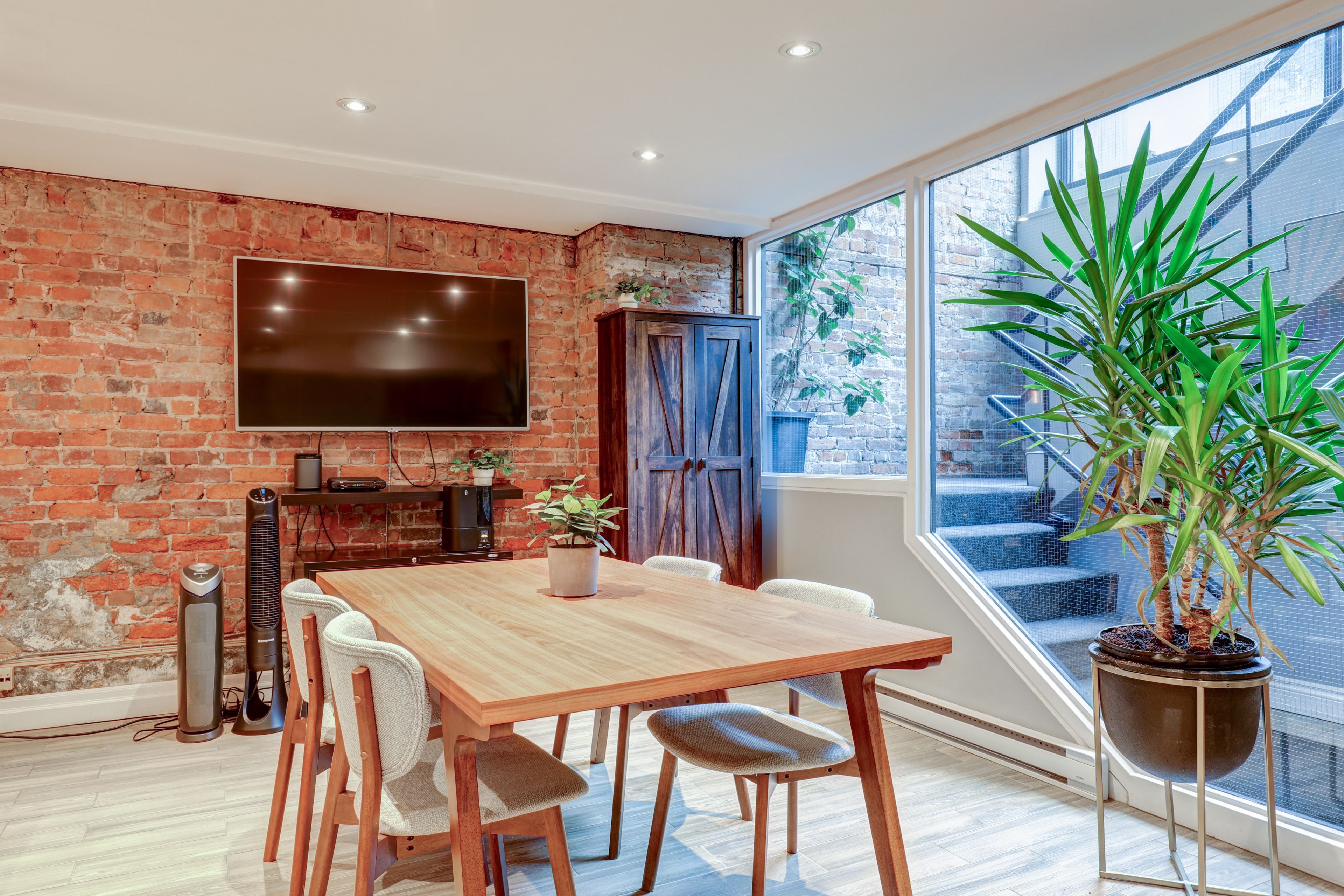 • Main floor boasts loft-style ceilings, exposed brick, and large windows.