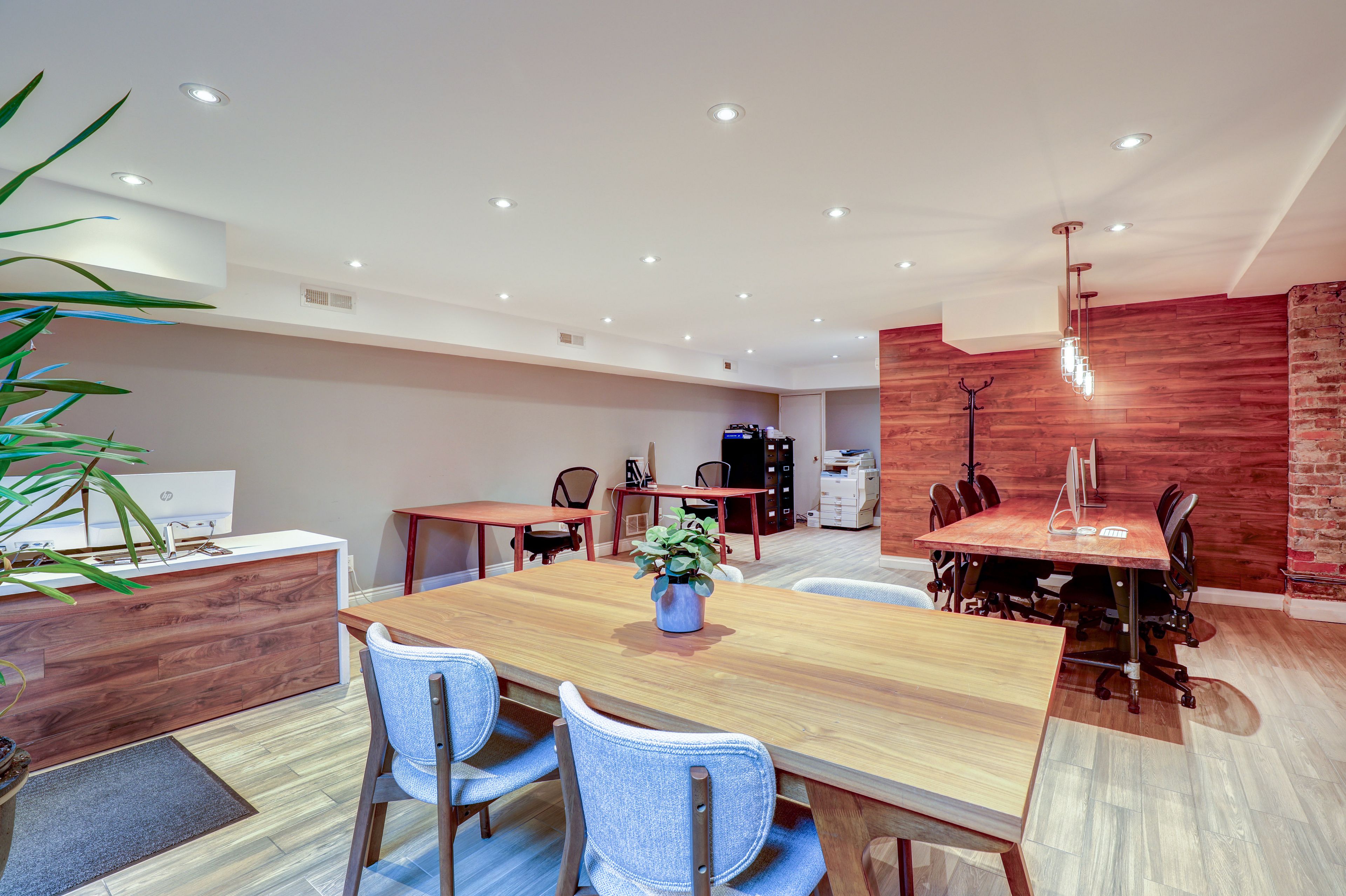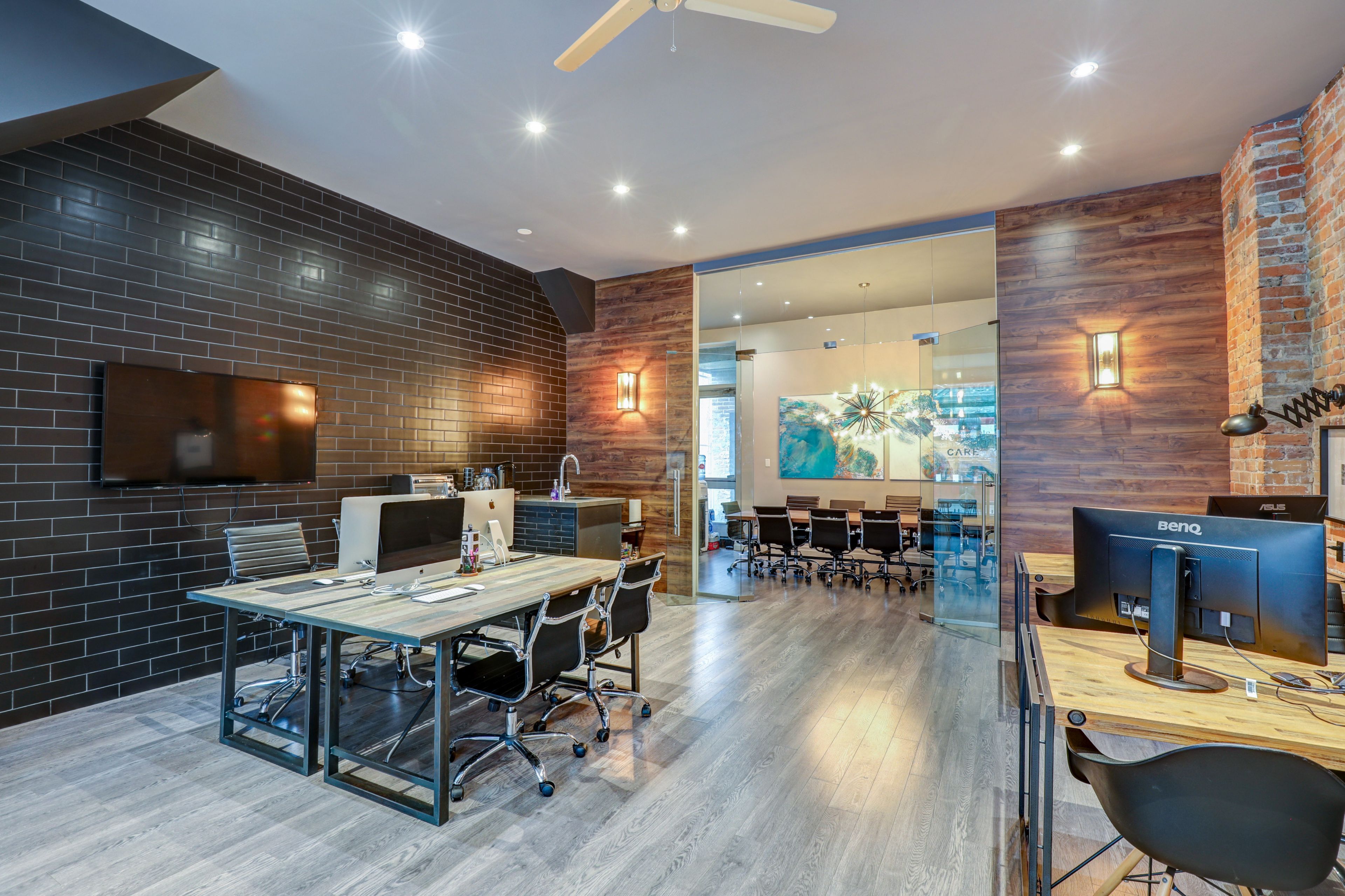 Prime ground floor office space in heart of vibrant king east! Beautifully appointed main and lower floor of historic building at the corner of king st east and jarvis - a rare opportunity to lease professional office space with high visibility and foot traffic, just steps from st lawrence market and ttc at your doorstep. Main floor features soaring loft-style ceilings and exposed brick, floor to ceiling windows, separate boardroom with glass doors, and kitchenette space. Large lower level open concept space with generous natural light leads to a separate main floor loft space with additional kitchenette and upper loft office space. Bonus area at rear of property for additional storage space at no additional charge. Two surface level parking spaces at rear of property included in the cost of the lease, and brand new paid green p garage just steps away on jarvis. Furniture / fixtures can be negotiated with previous tenant to be able to walk into a fully functional office!