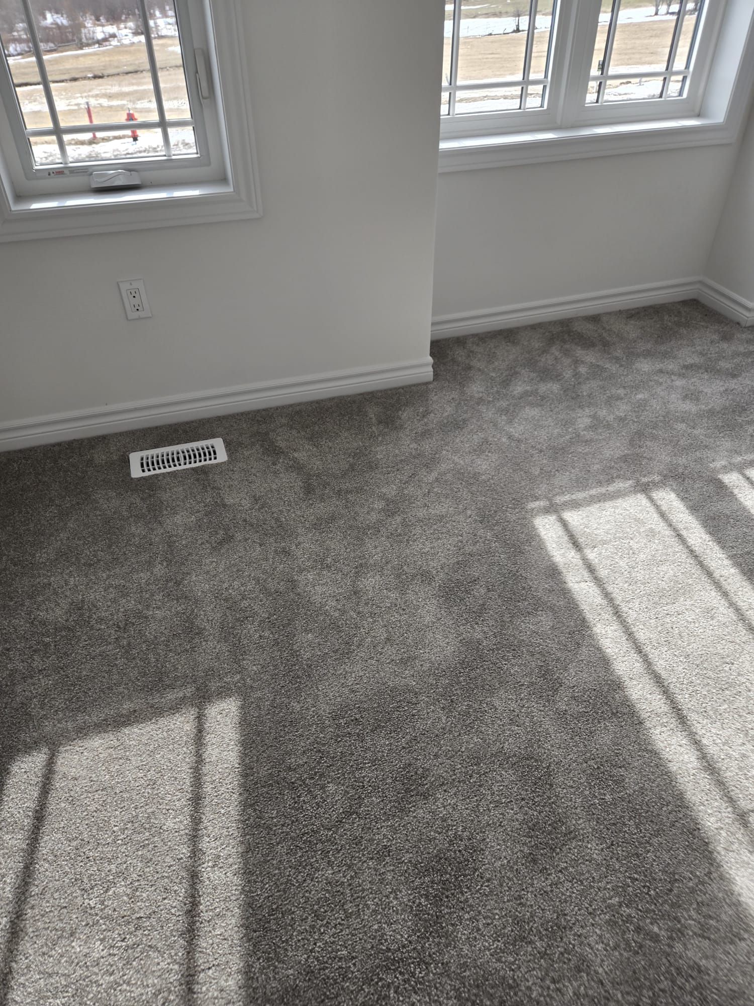 • Bright open-concept living and dining area with large windows.