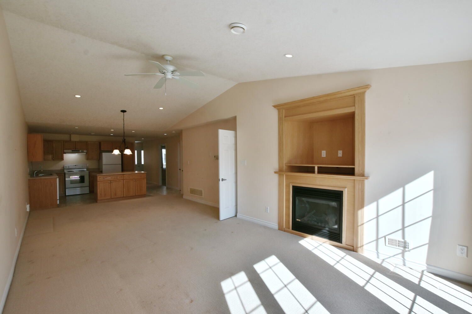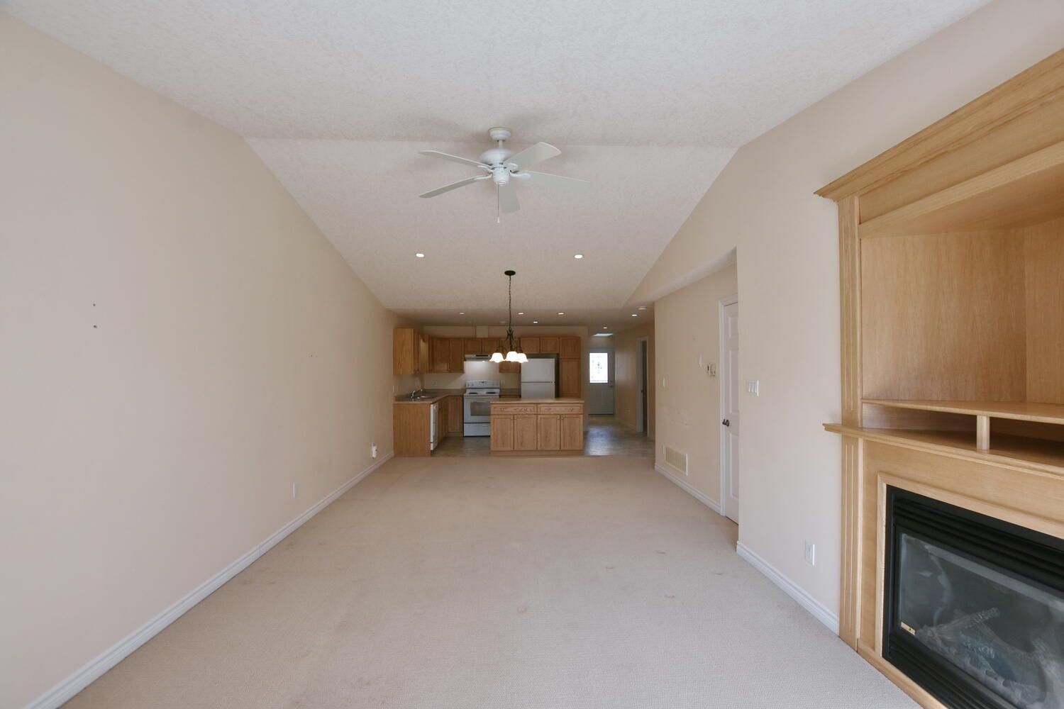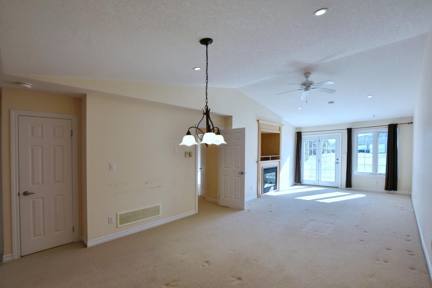 • Bright open-concept main floor with vaulted ceilings and gas fireplace.