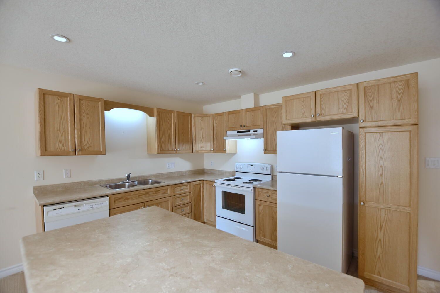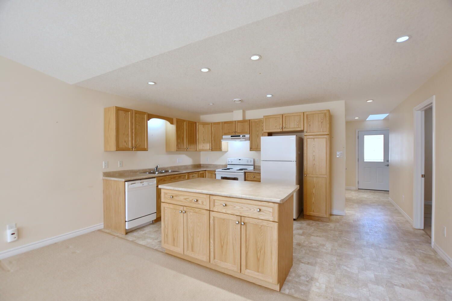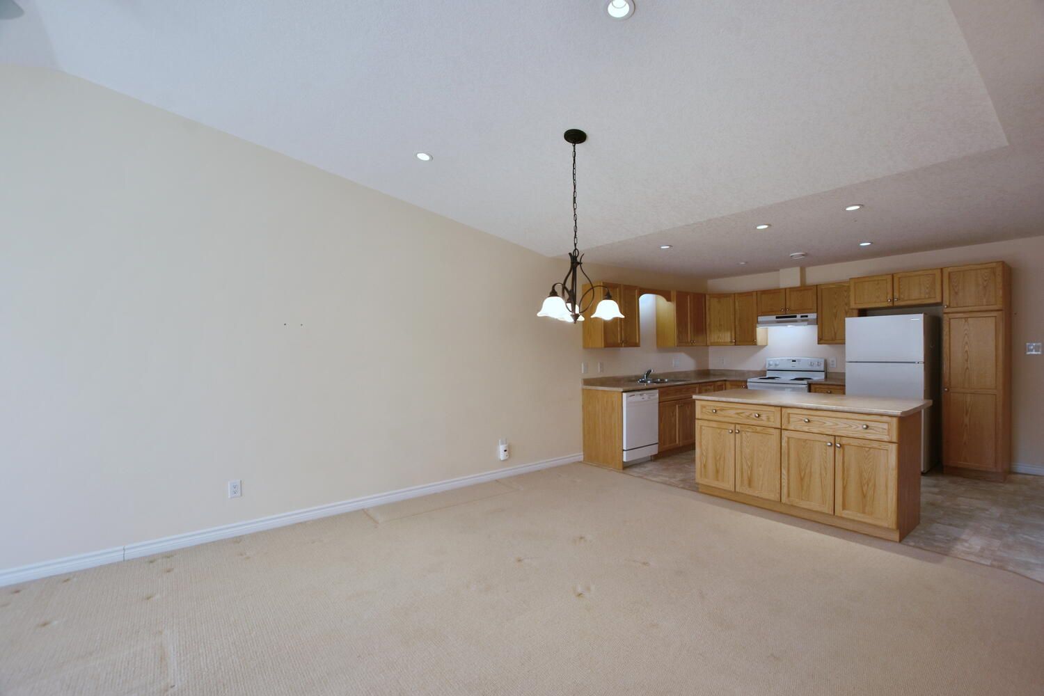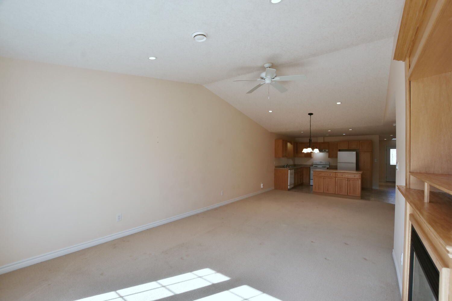 • Bright open-concept main floor with vaulted ceilings and gas fireplace.
